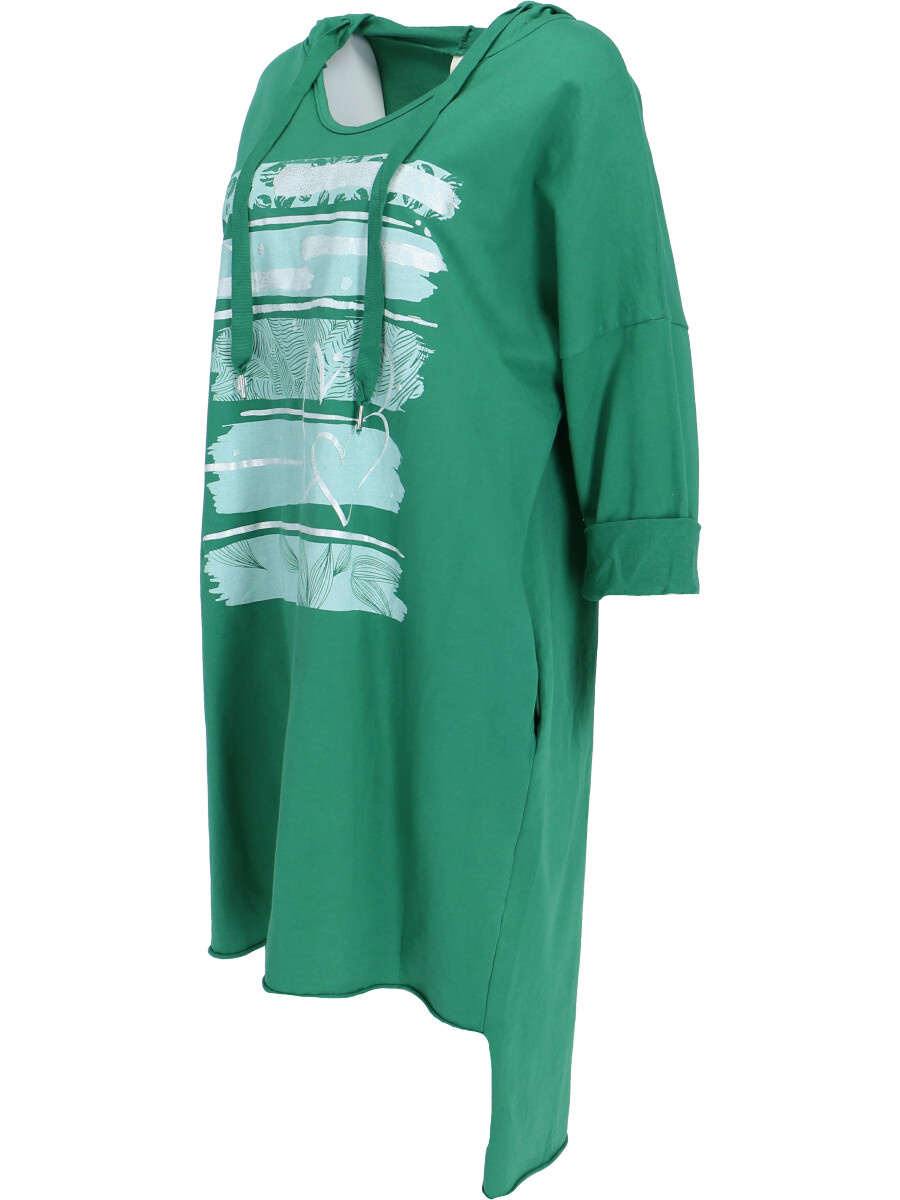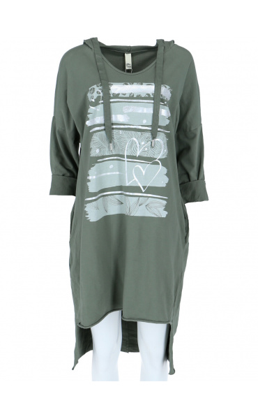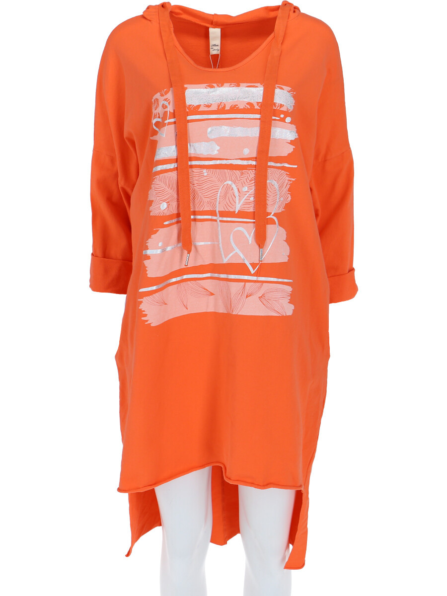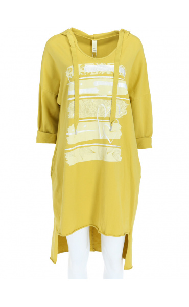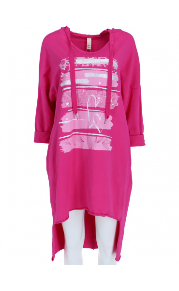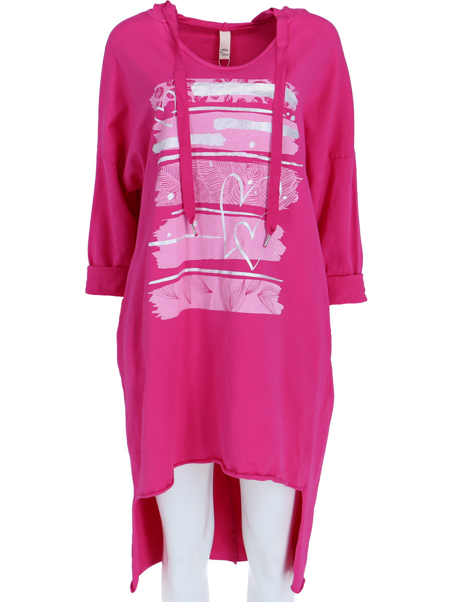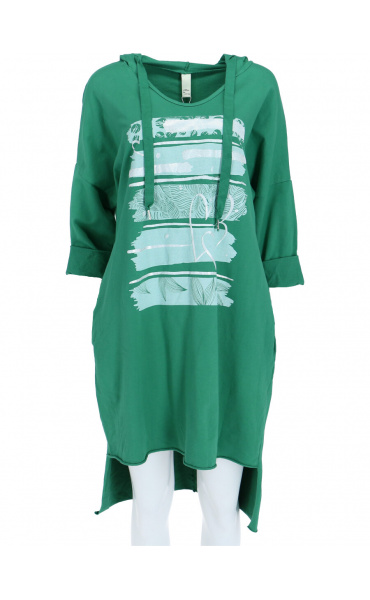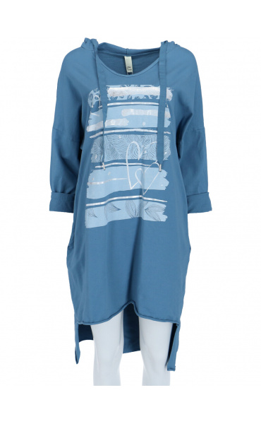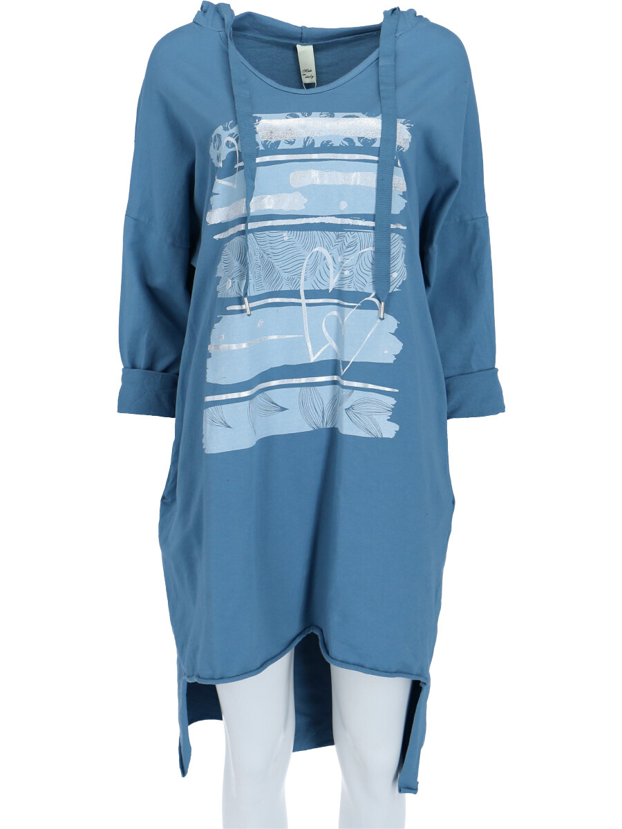 Dámské mikinové šaty s kapucí a potiskem v atraktivních barvách.