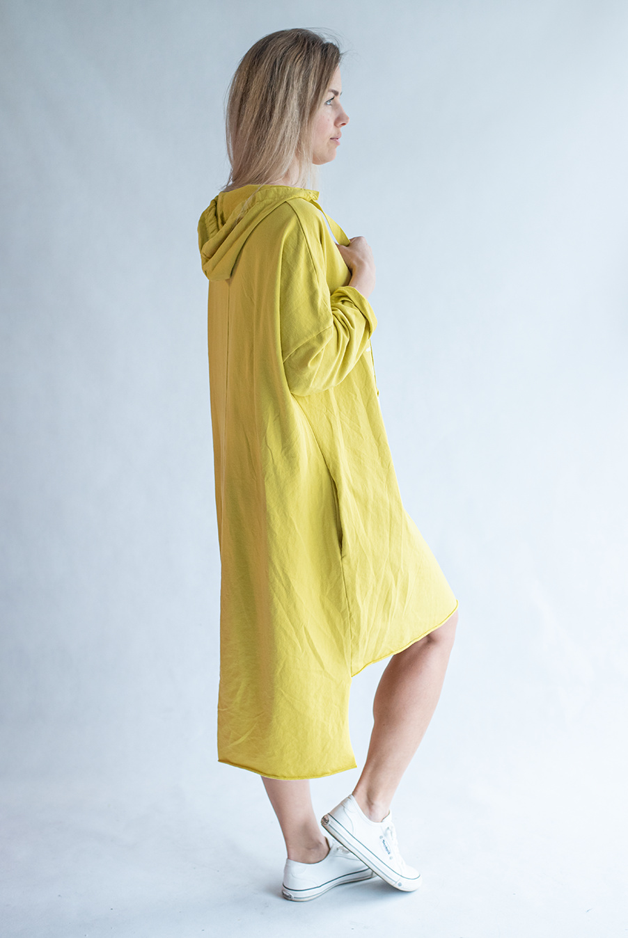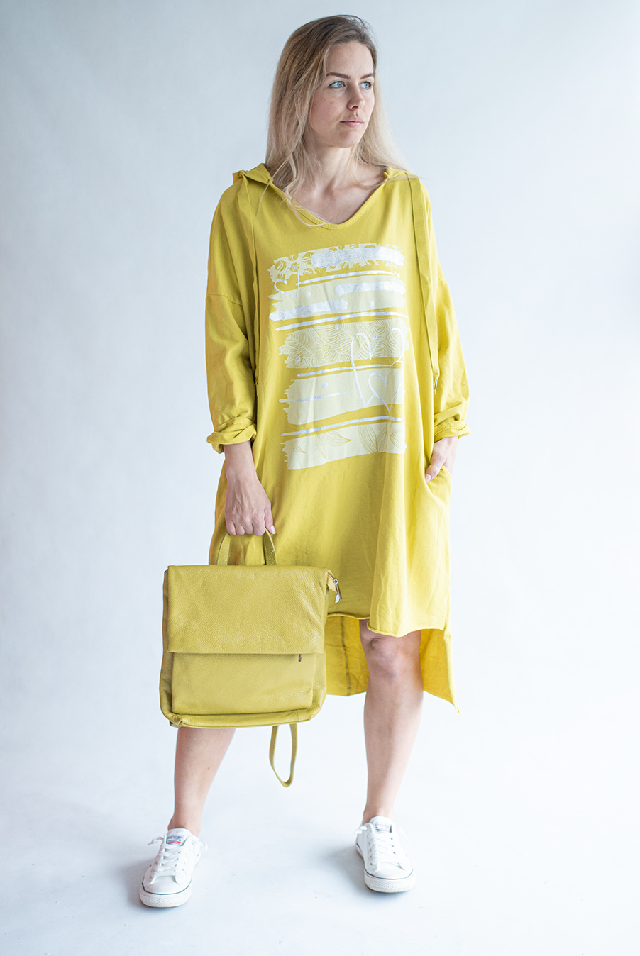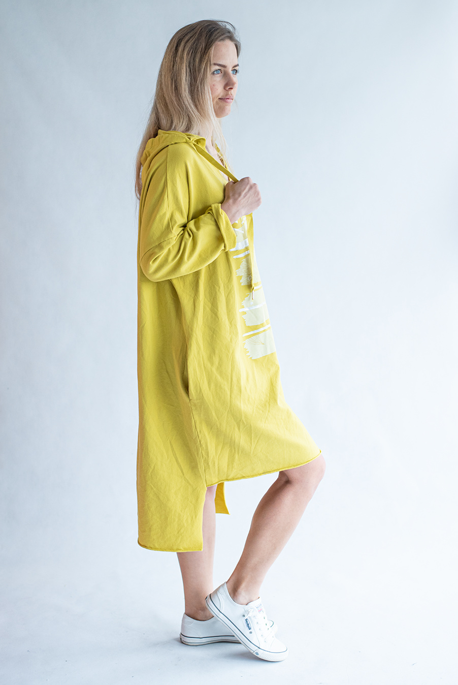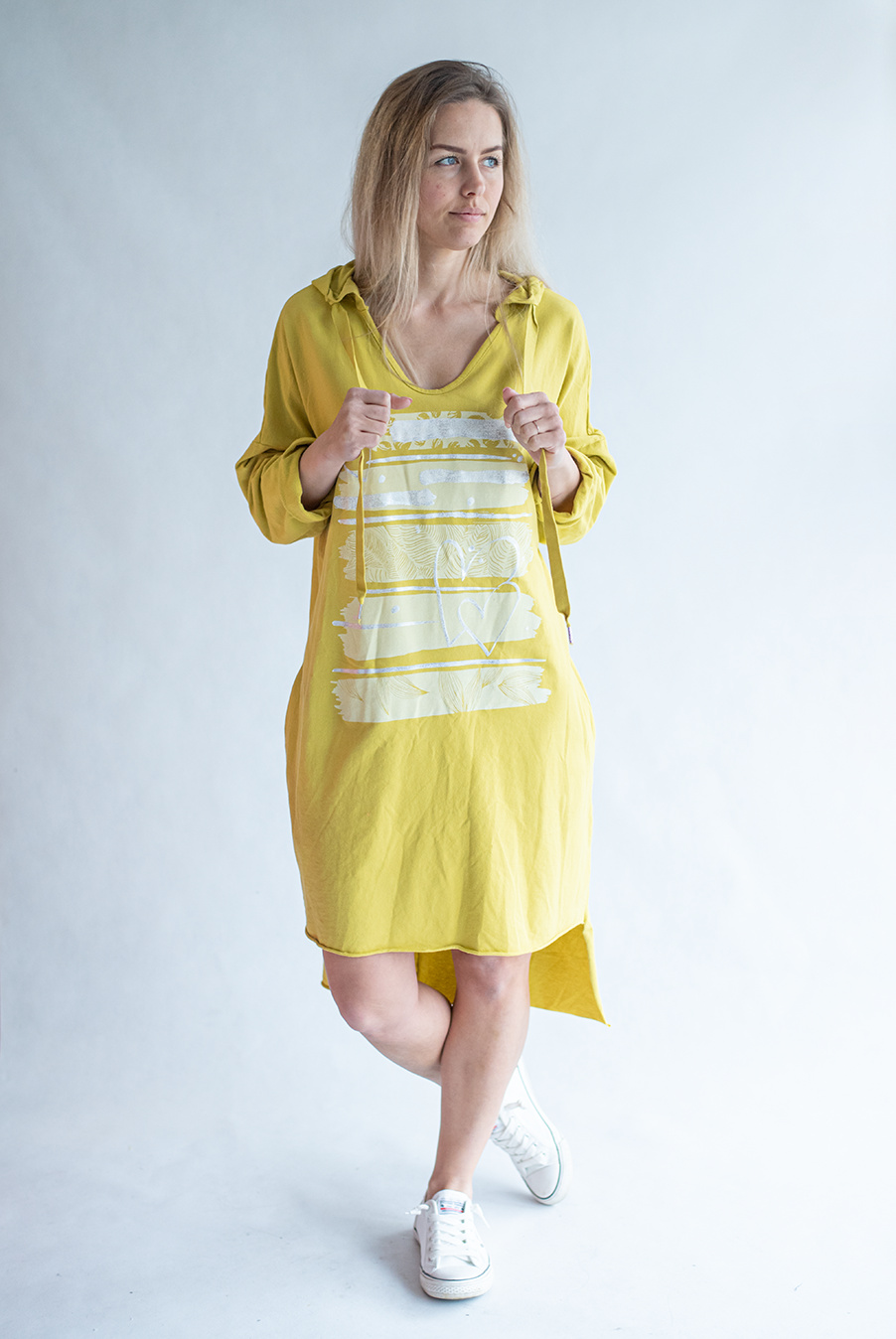 Dámské mikinové šaty s kapucí a potiskem v atraktivních barvách.
