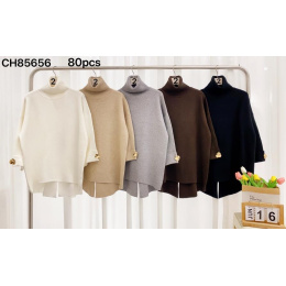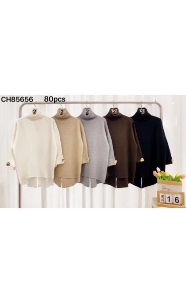 Módní svetřík z hrubého úpletu s 3/4 rukávem. Svetr má na rukávem a aplikaci knoflíků na rukávech.