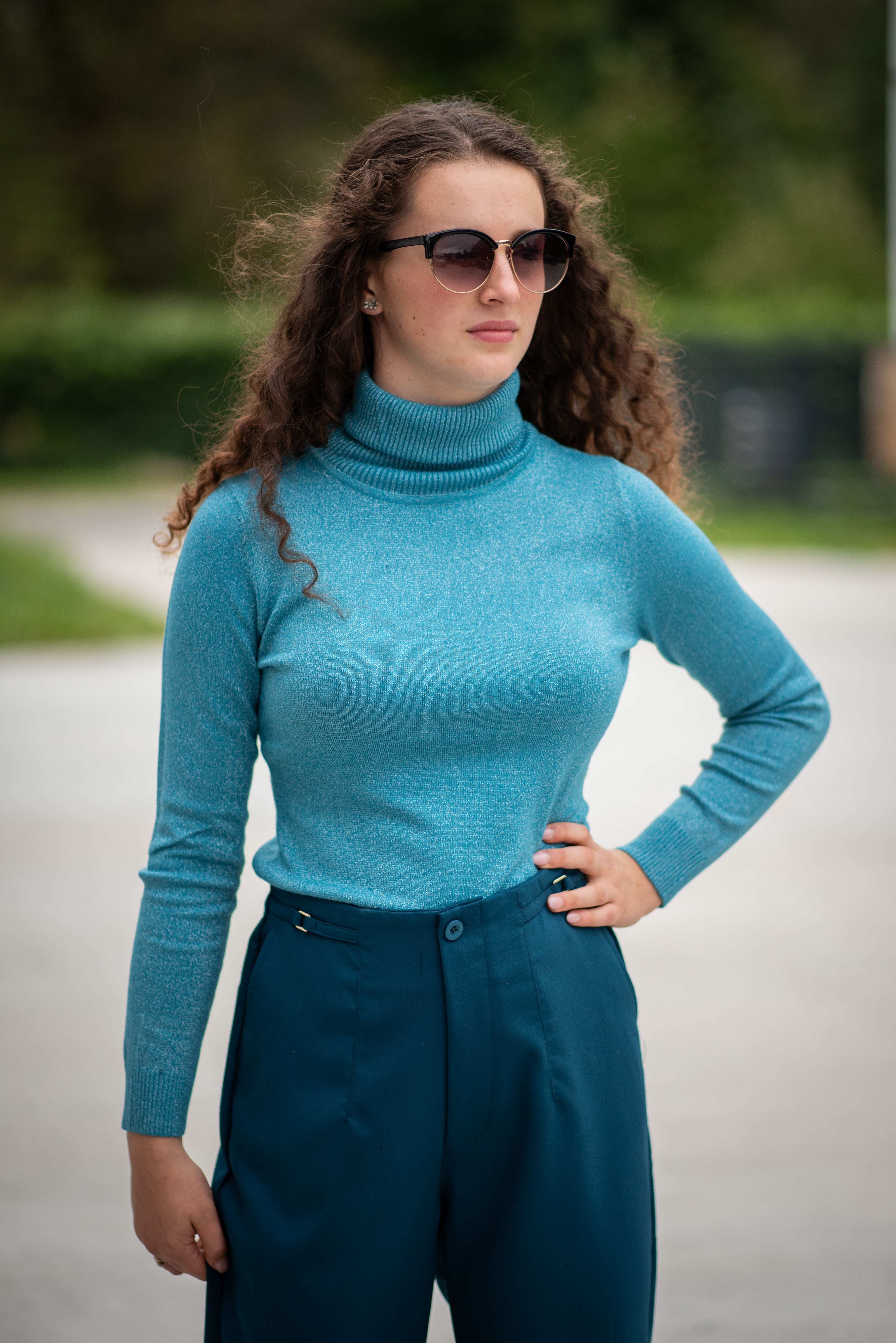Módní úpletový rolák s lurexem, dovoz Itálie