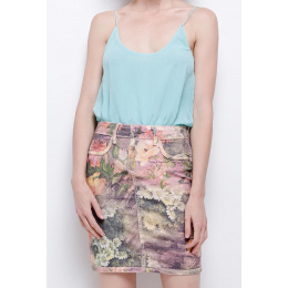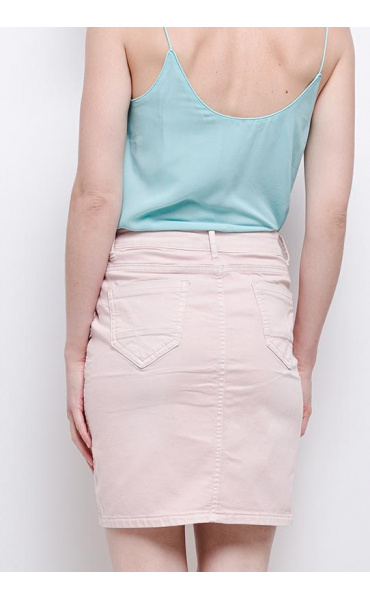 Oboustranná jeans sukně pohodlného střihu ke kolenům.