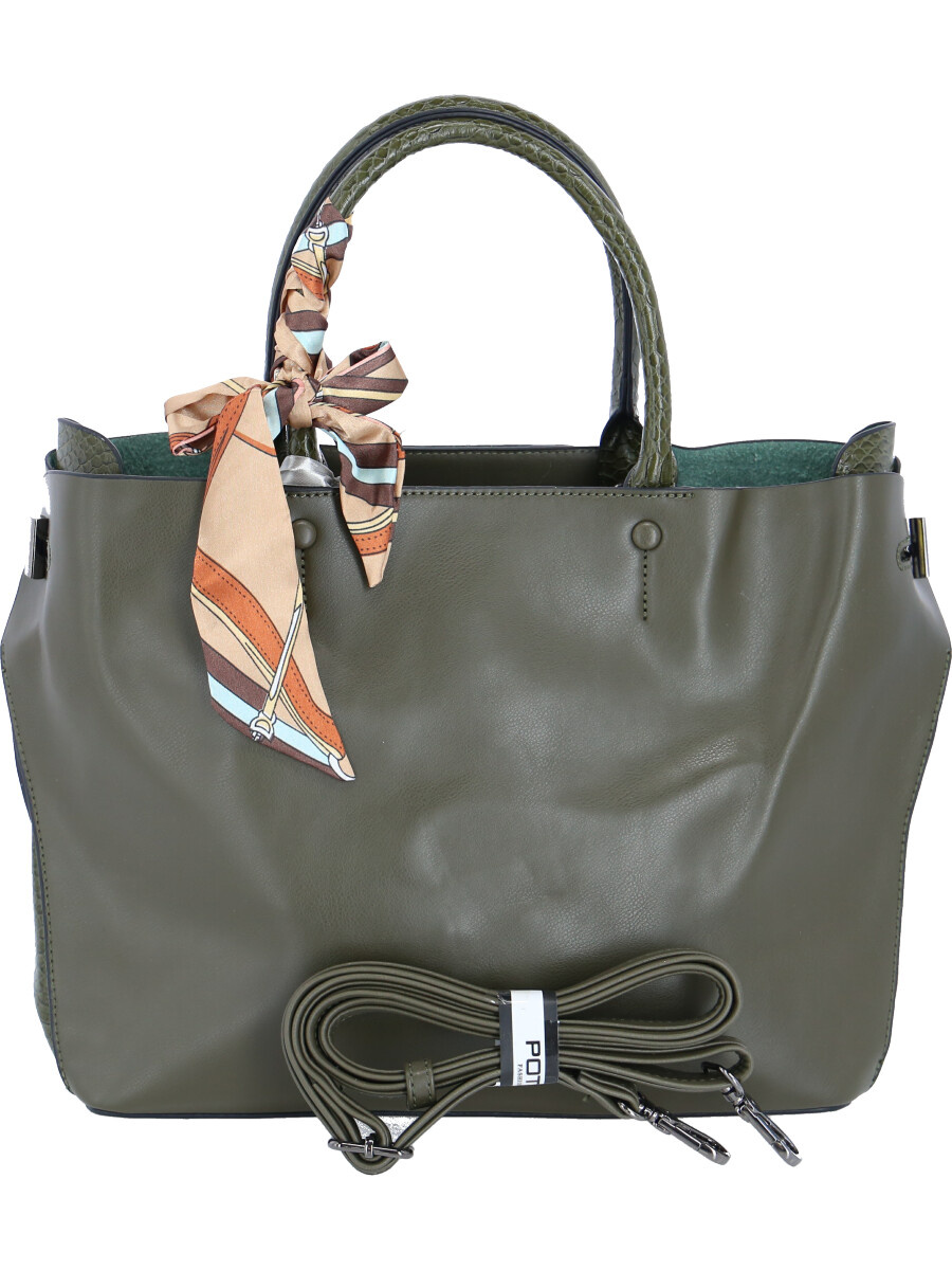 Dámská módní kabelka s odnímatelným popruhem a vnitřní kapsou doplněná o elegantní šátek. Složení 100 % polyester , camel, tmavě hnědá, bordó, khaki, šedá, modrá, černá,