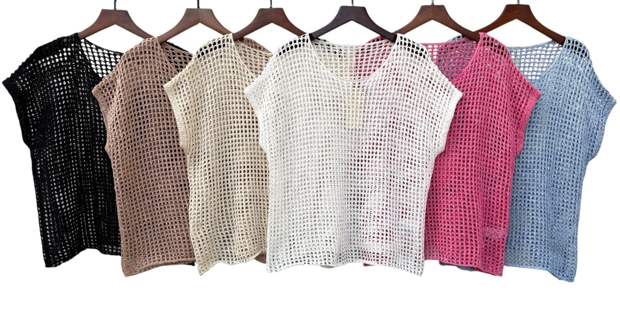 Dámská přízová vesta volnějšího střihu s kulatým výstřihem. Vyrobeno v Itálii