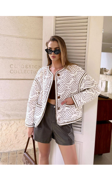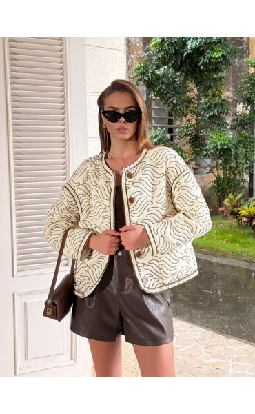 Stylová prošívaná bunda/sako se zapínáním na knoflíky. Bunda je volnějšího střihu, na přední straně má našité kapsy a kulatý výstřih.
