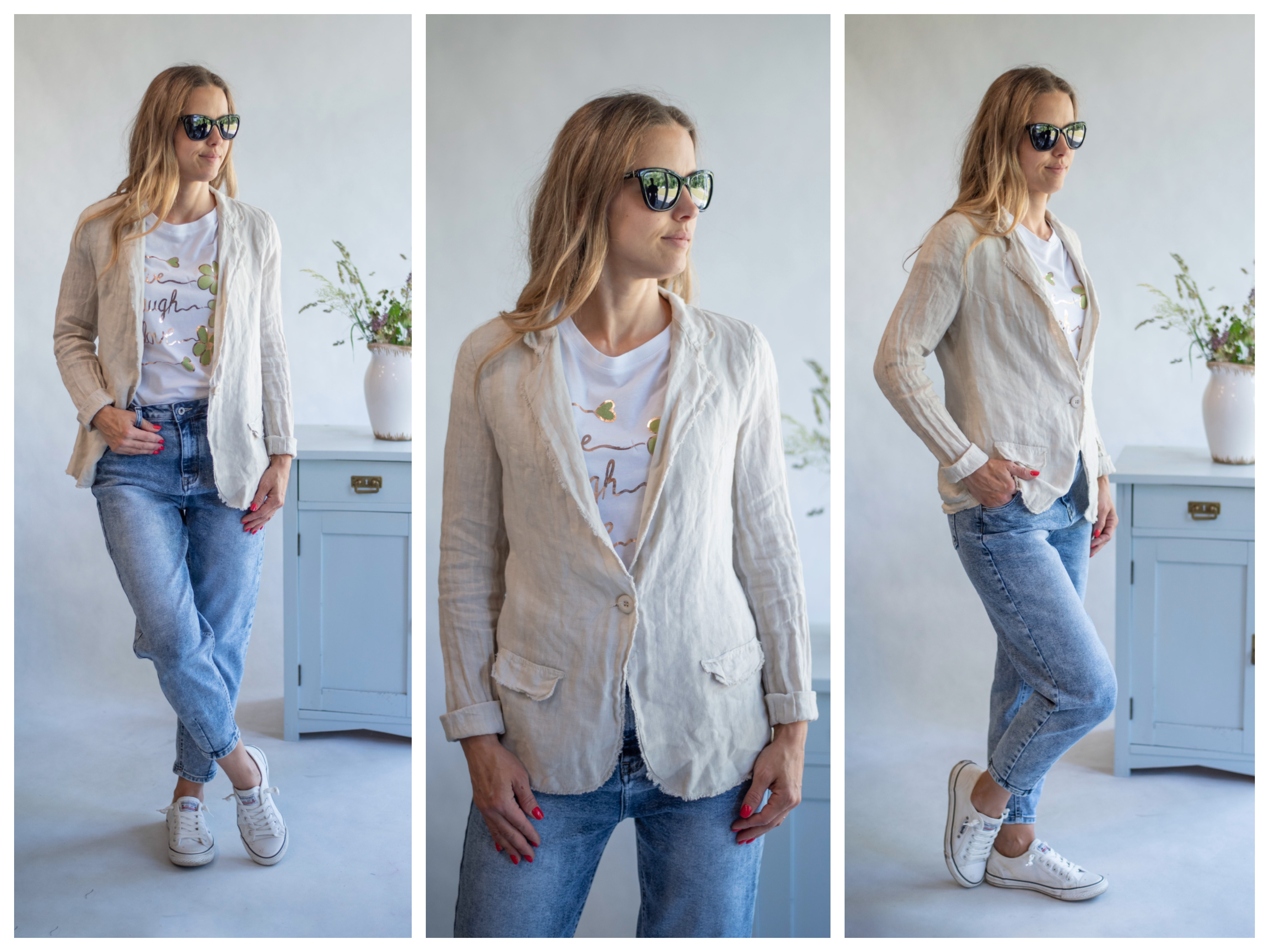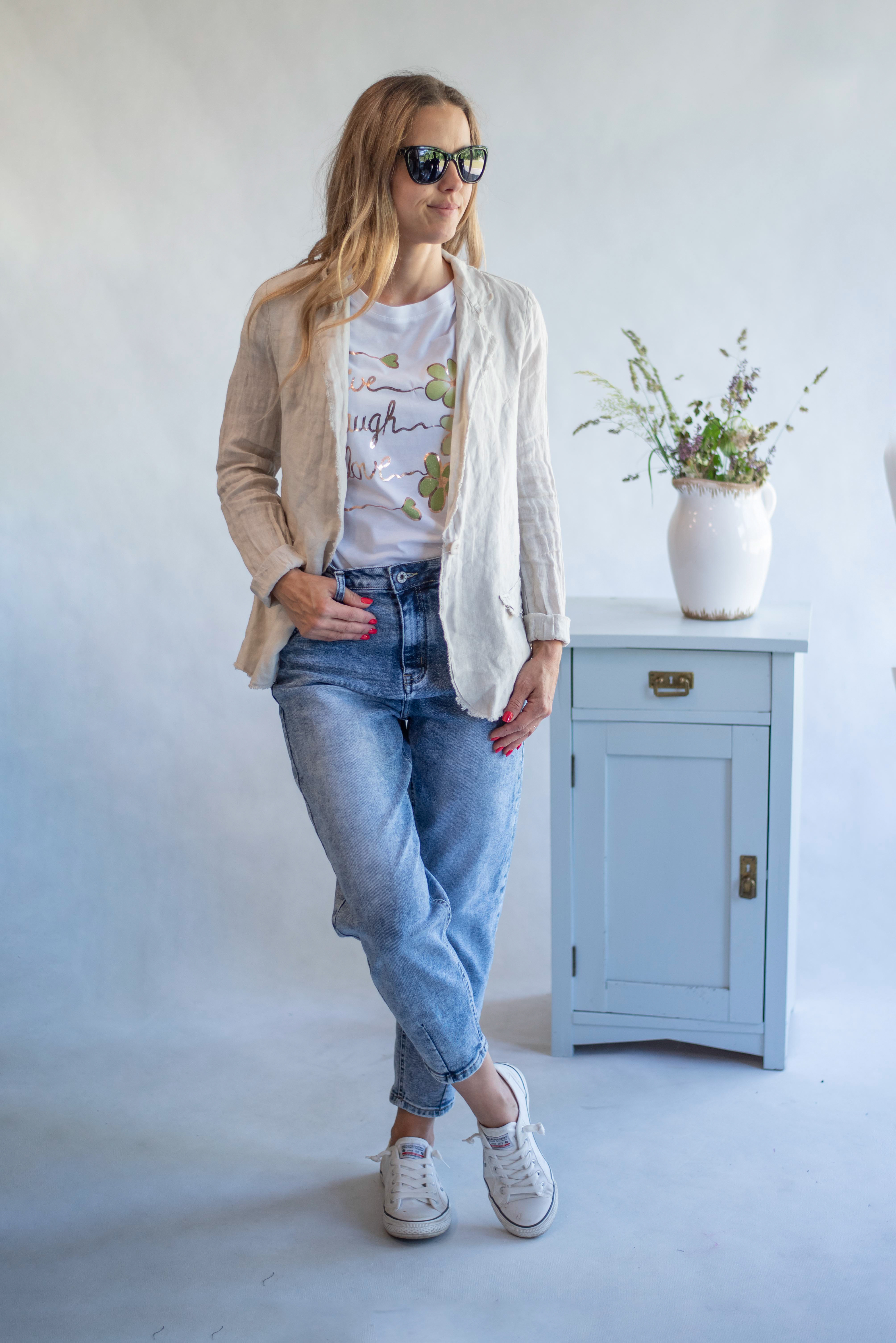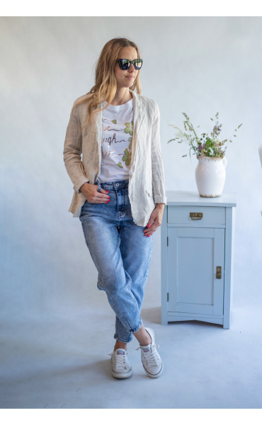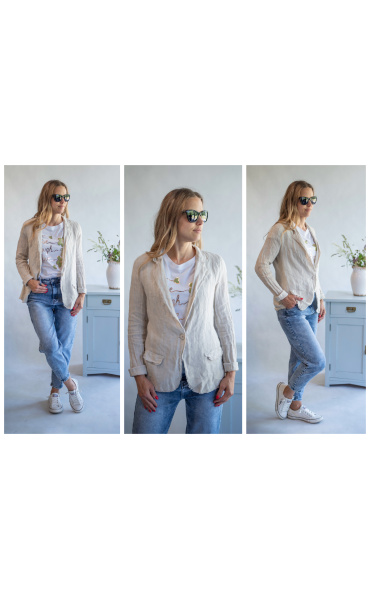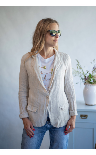 Stylové lněné letní sako pro denní nošení.