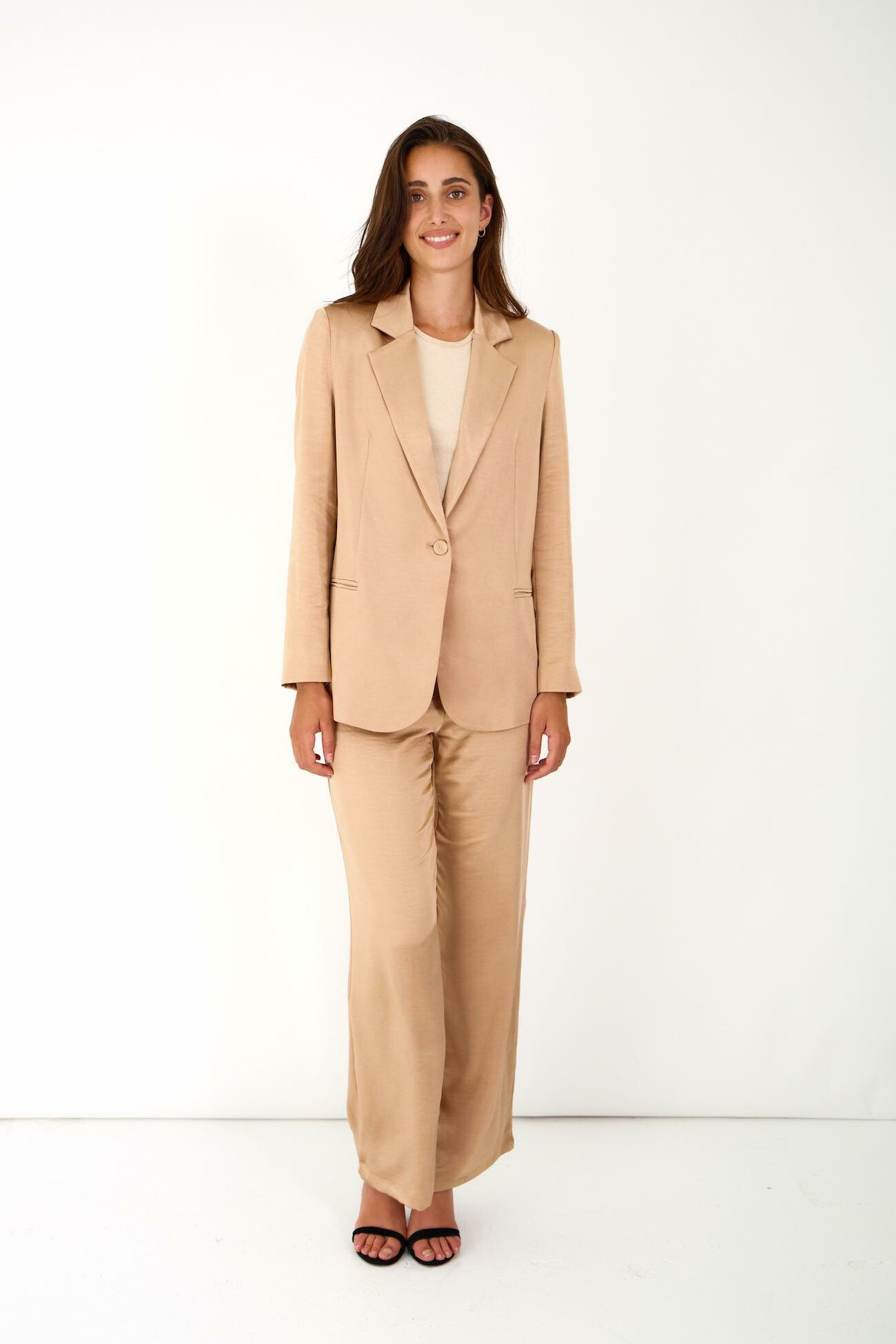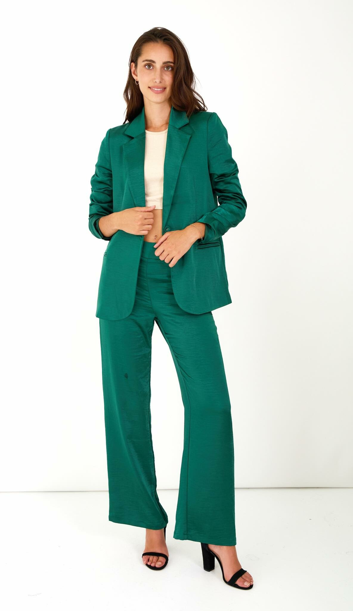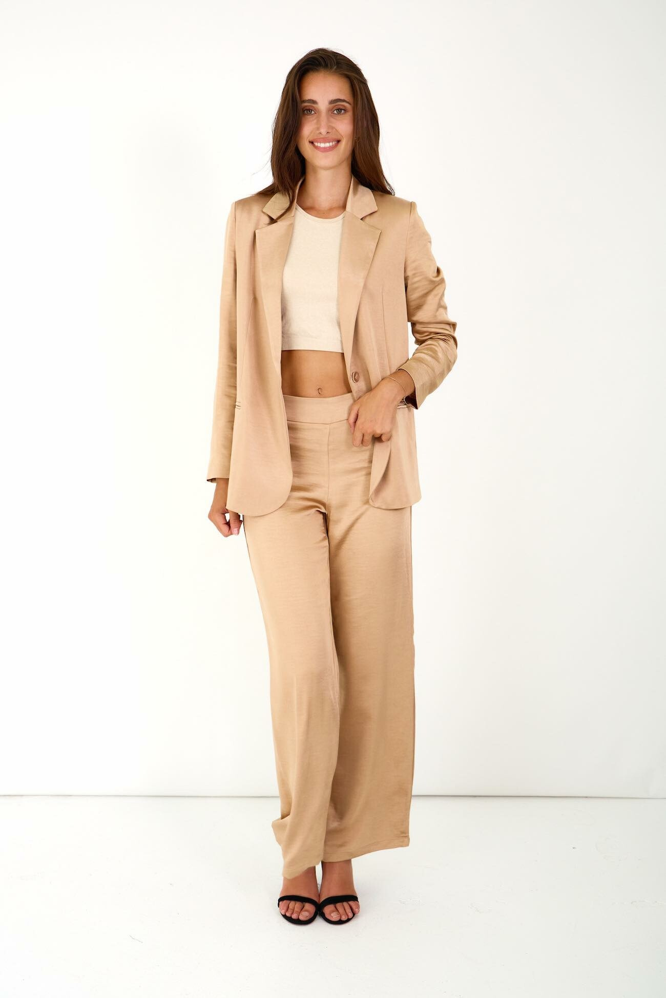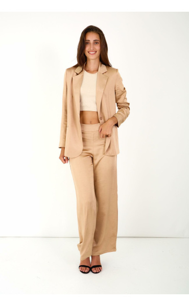 Elegantní saténové společenské kalhoty Escandelle Paris. Módní saténové kalhoty do zvonu. Trendy saténový kousek, který by neměl chybět v žádném šatníku moderní ženy.
