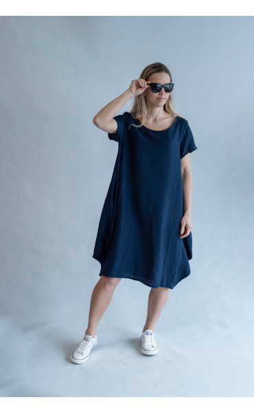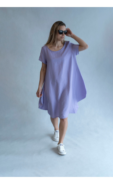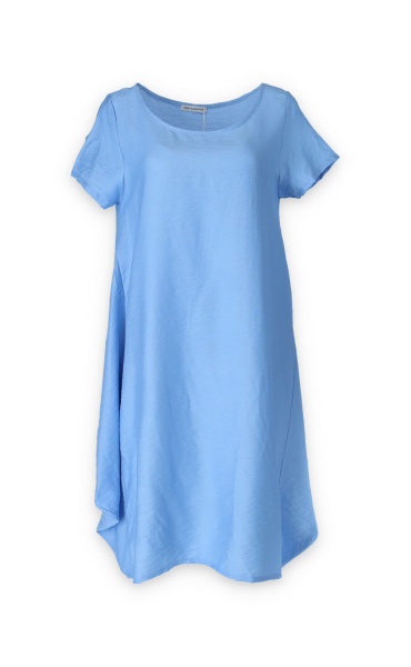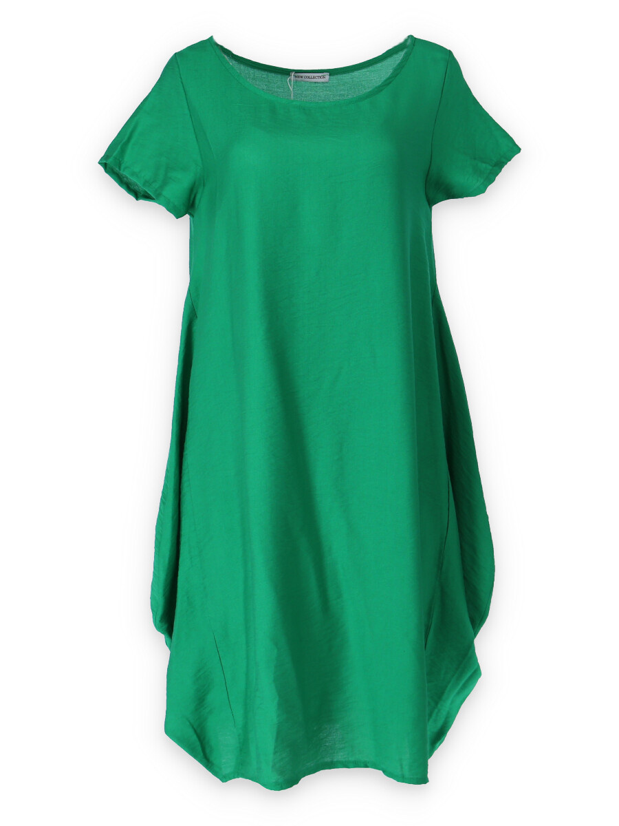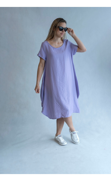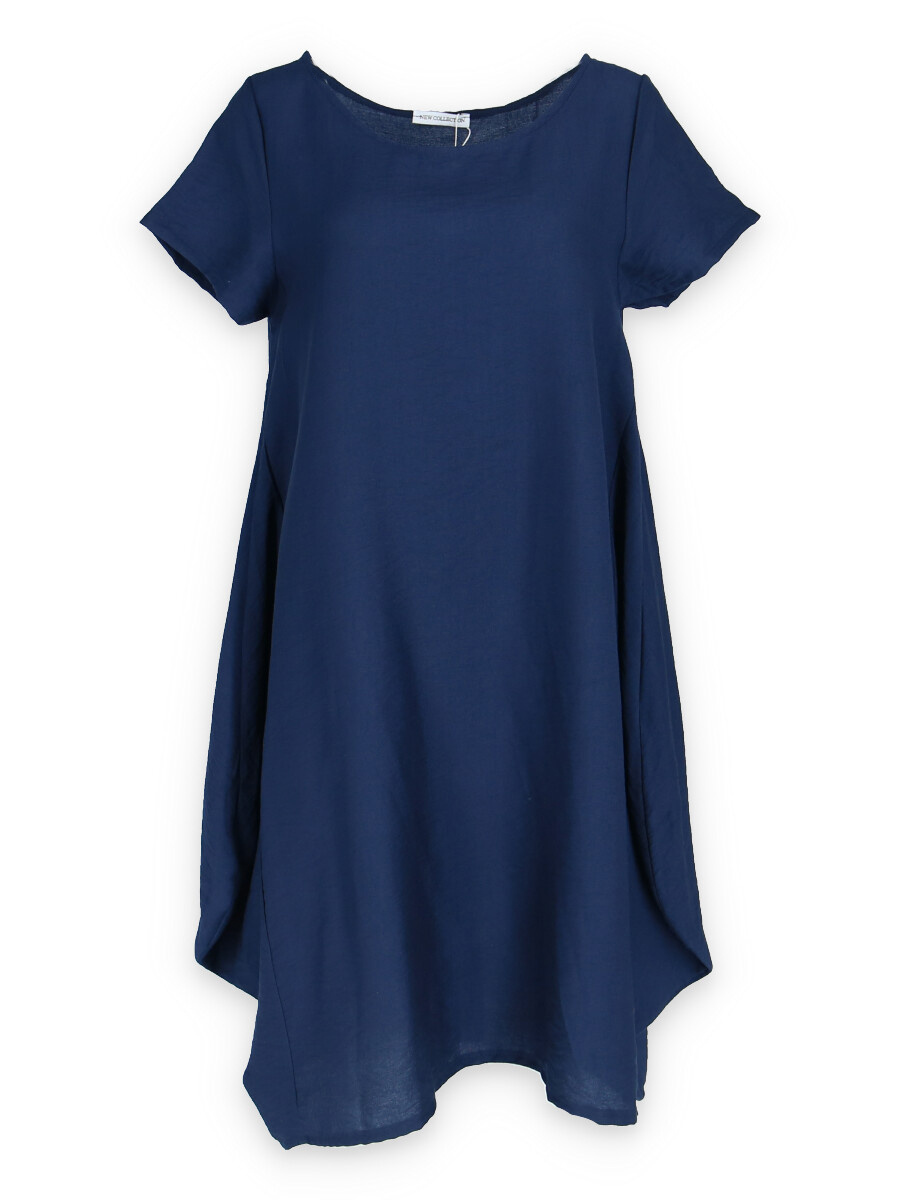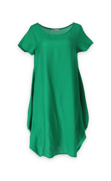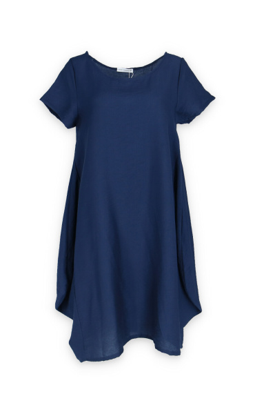 Elegantní, dámská lněná volnočasová šatovka pro denní nošení z lehkého a vzdušného materiálu , kulatý výstřih , do cípu, vyrobeno v Italii