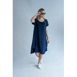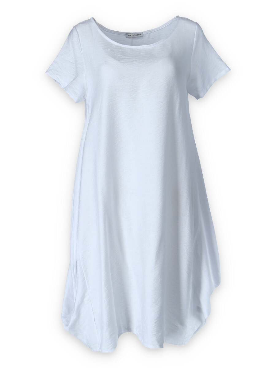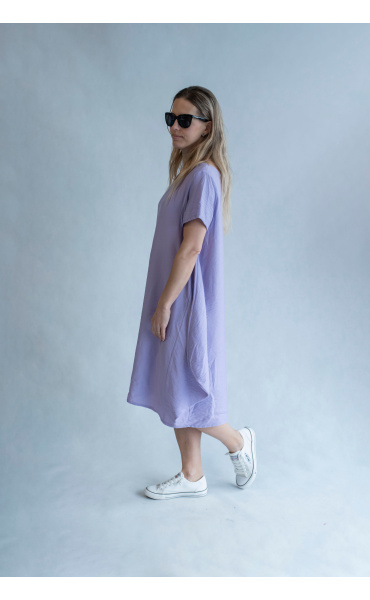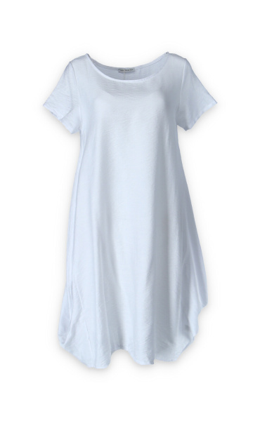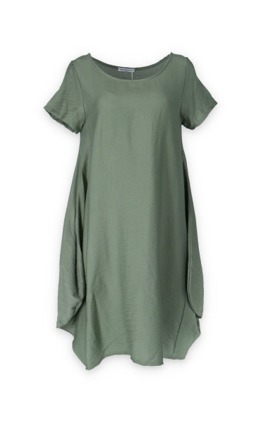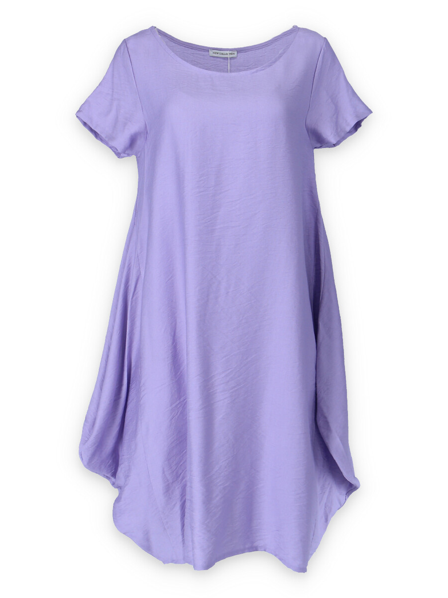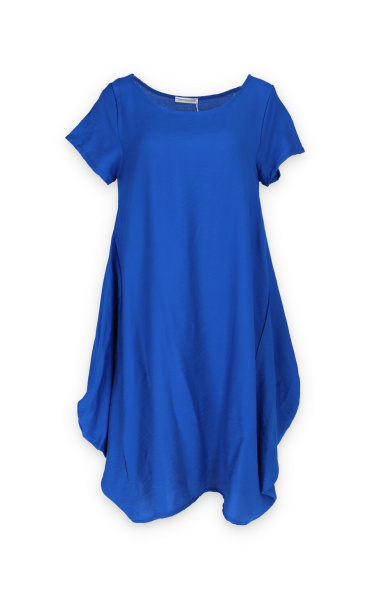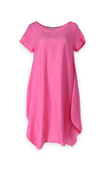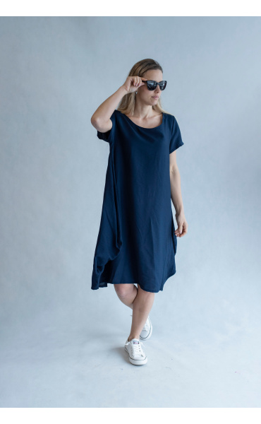 Elegantní, dámská lněná volnočasová šatovka pro denní nošení z lehkého a vzdušného materiálu , kulatý výstřih , do cípu, vyrobeno v Italii