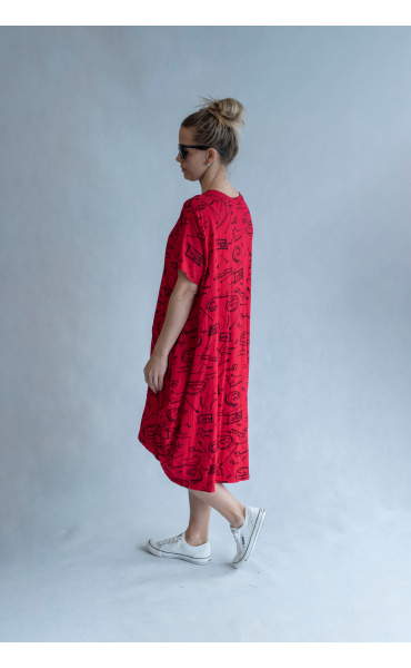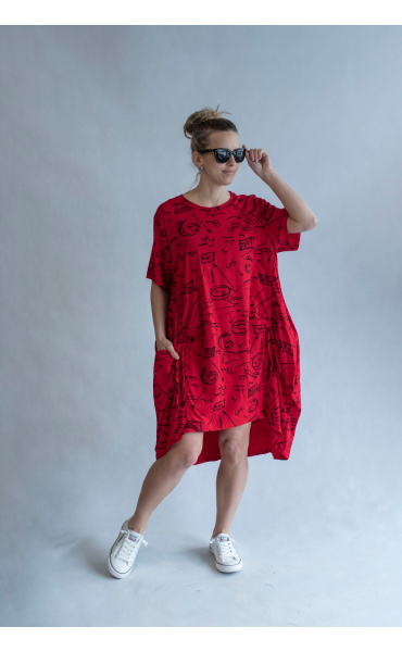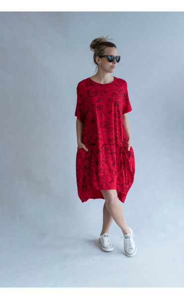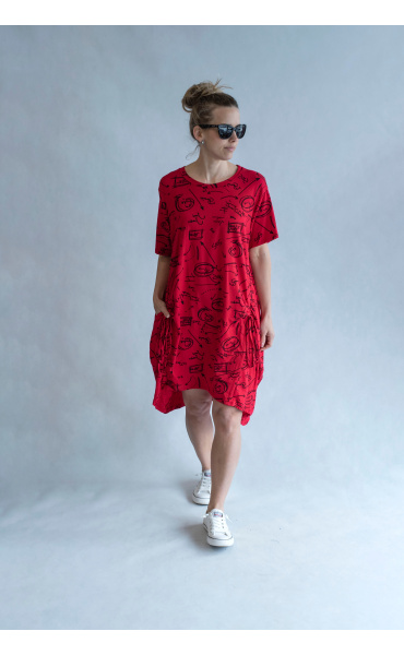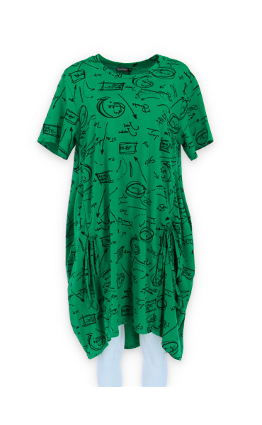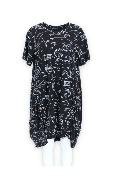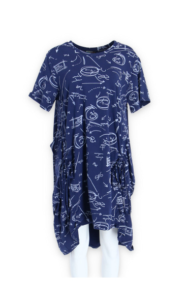 Dámská šatovka denní nošení s potiskem, všité kapsy po stranách, balonový střih, krátký rukáv, vyrobeno v Italii
