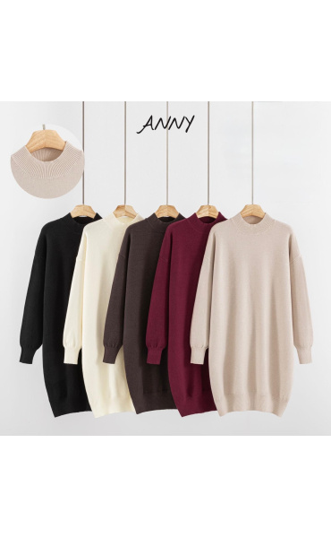 Trendy šatovka z příjemného úpletu se stojáčkem. Šatovka má stojáček a zakončení na rukávech a spodní lem z žebrovaného úpletu.