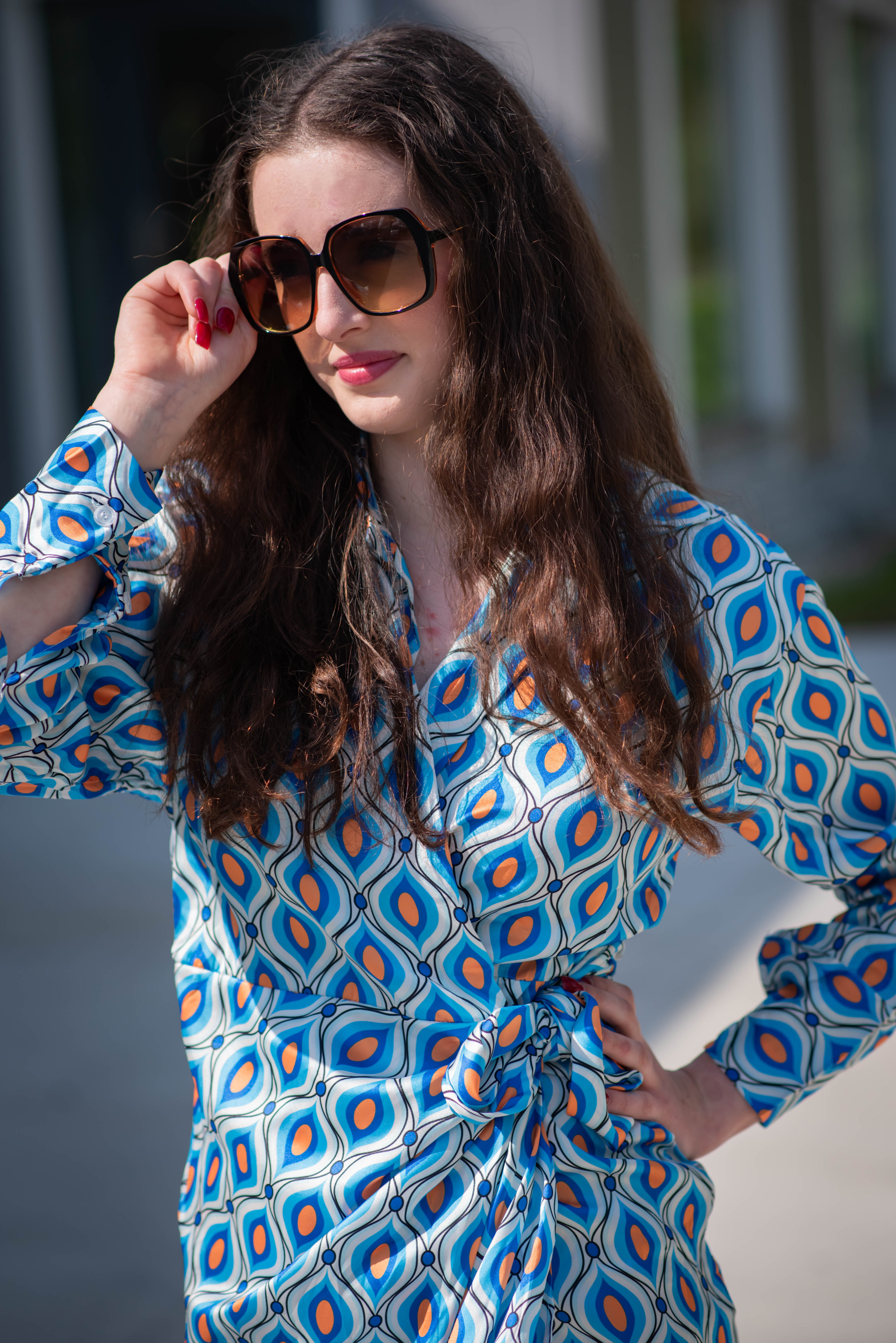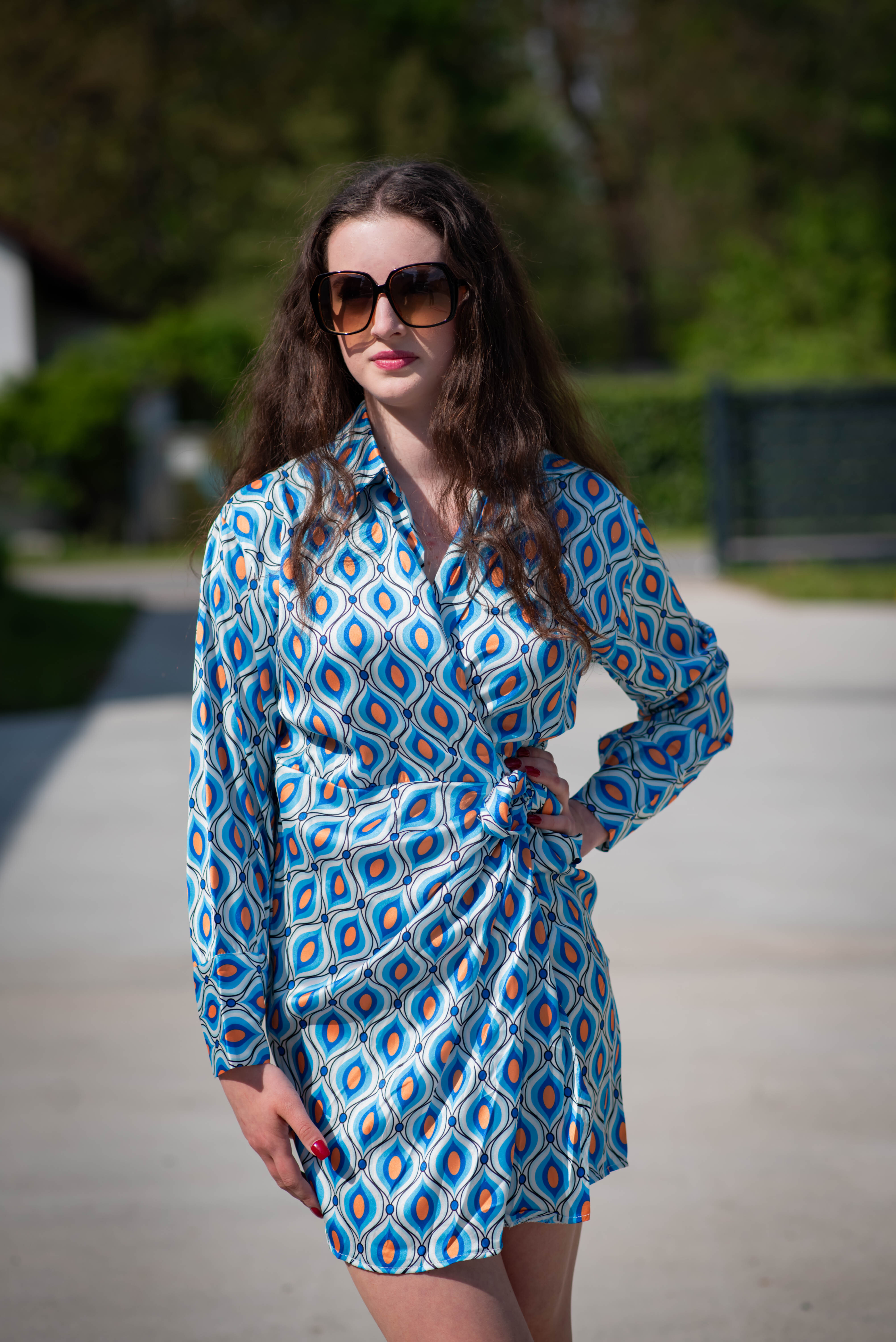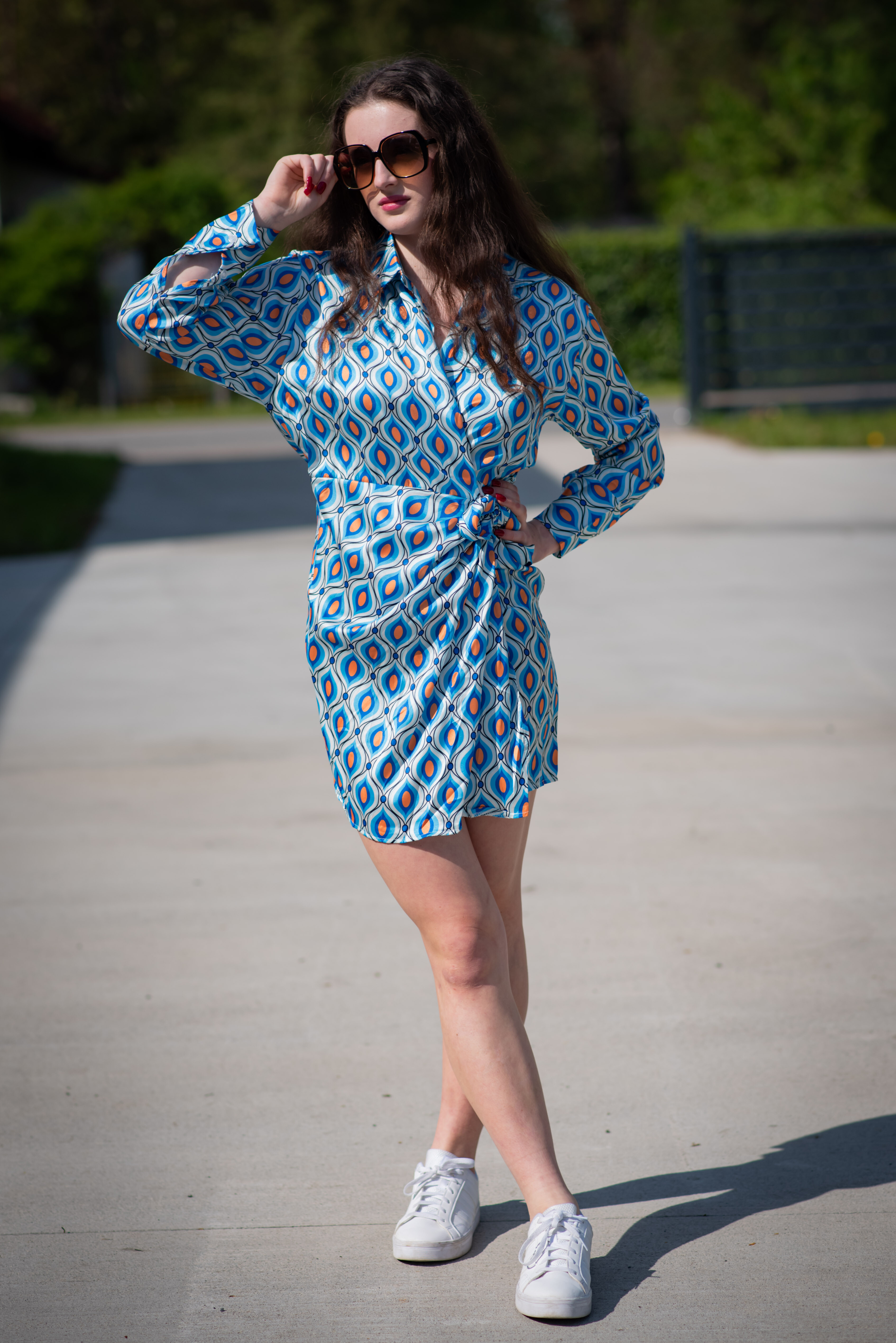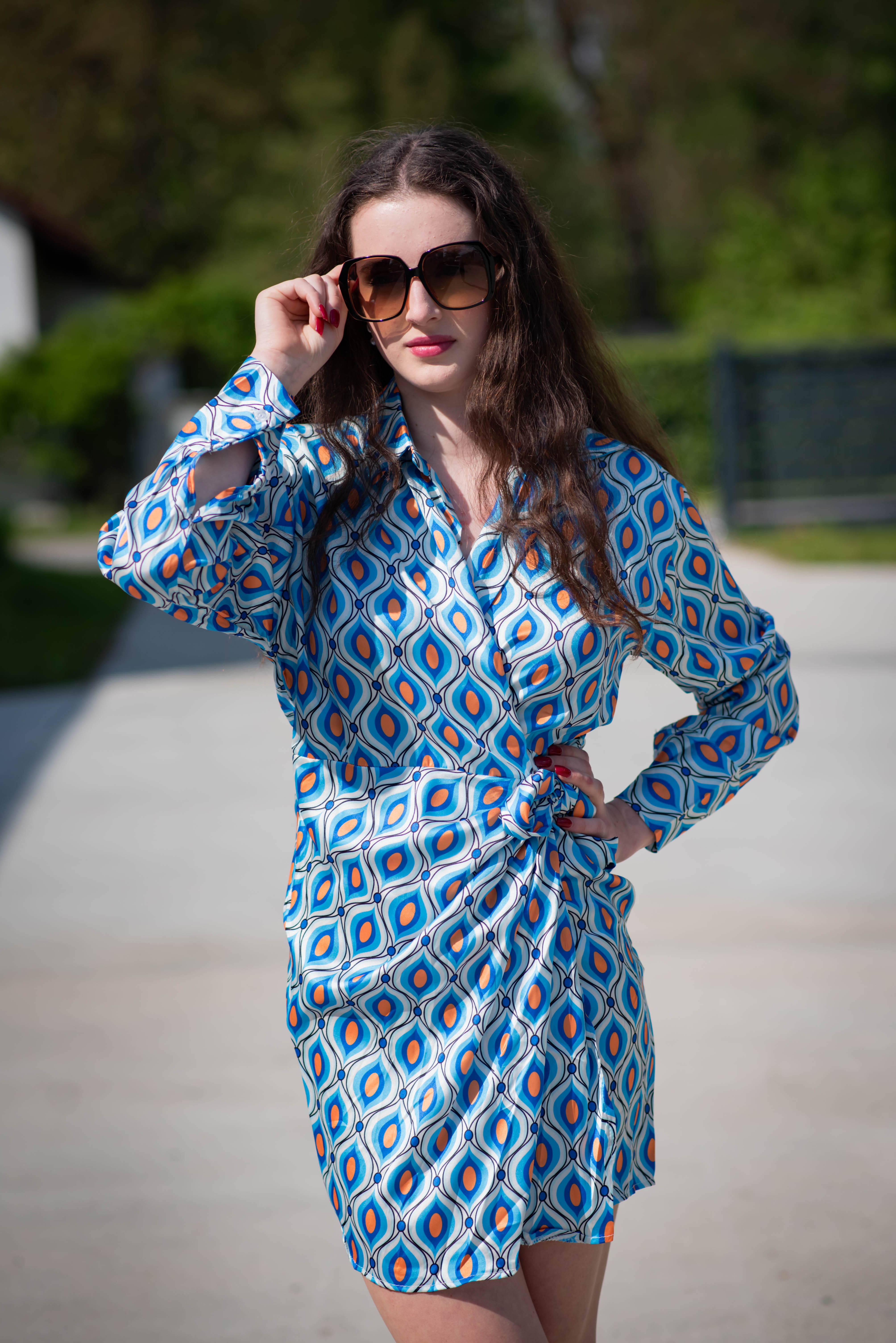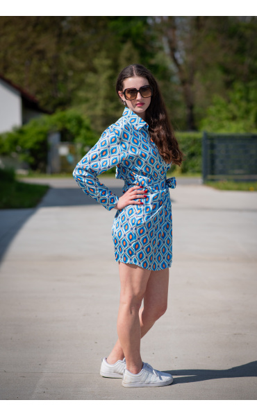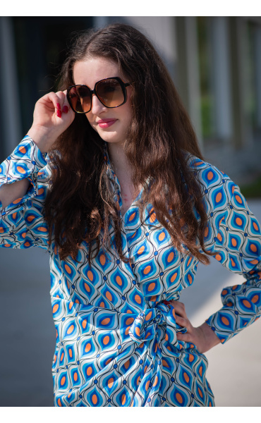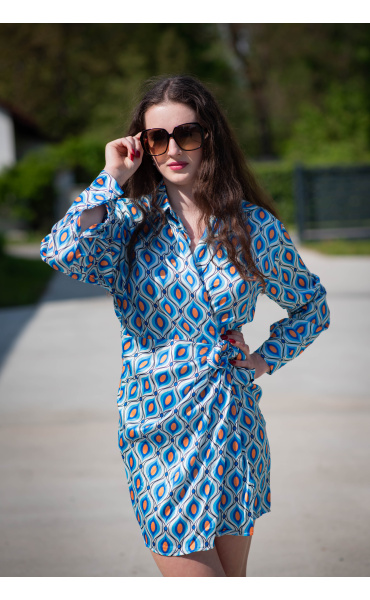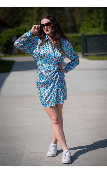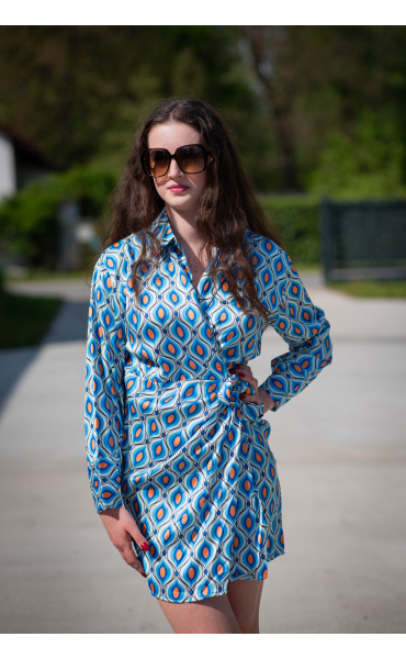 Dámská zavinovací šatovka s límečkem a dlouhým rukávem. Trendy vzorovaná šatovka z velmi příjemného materiálu.