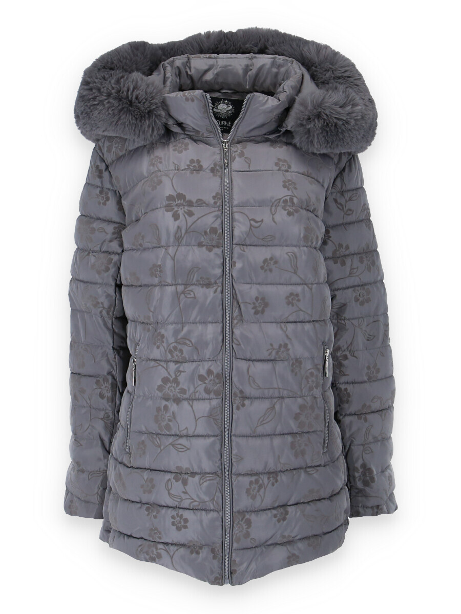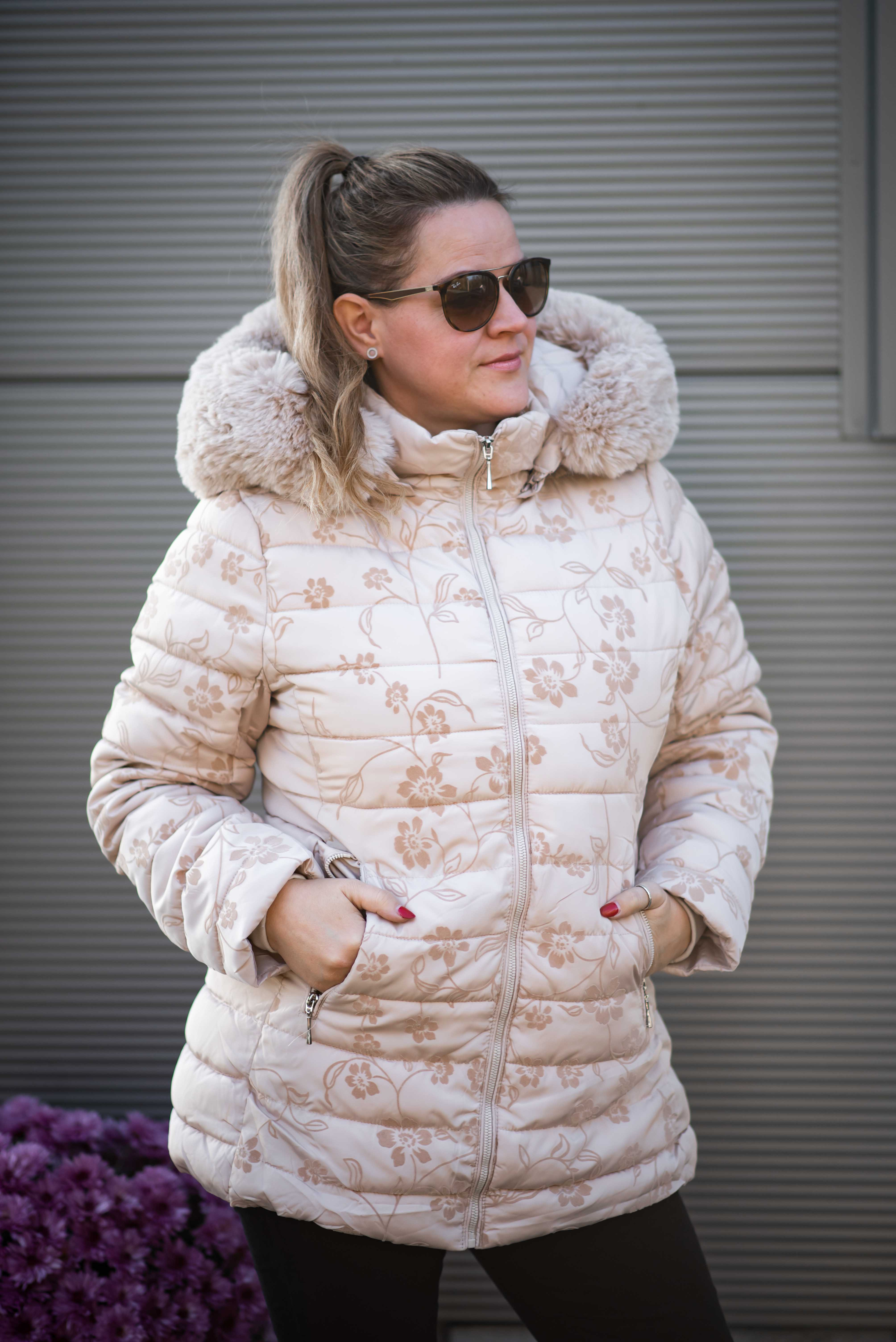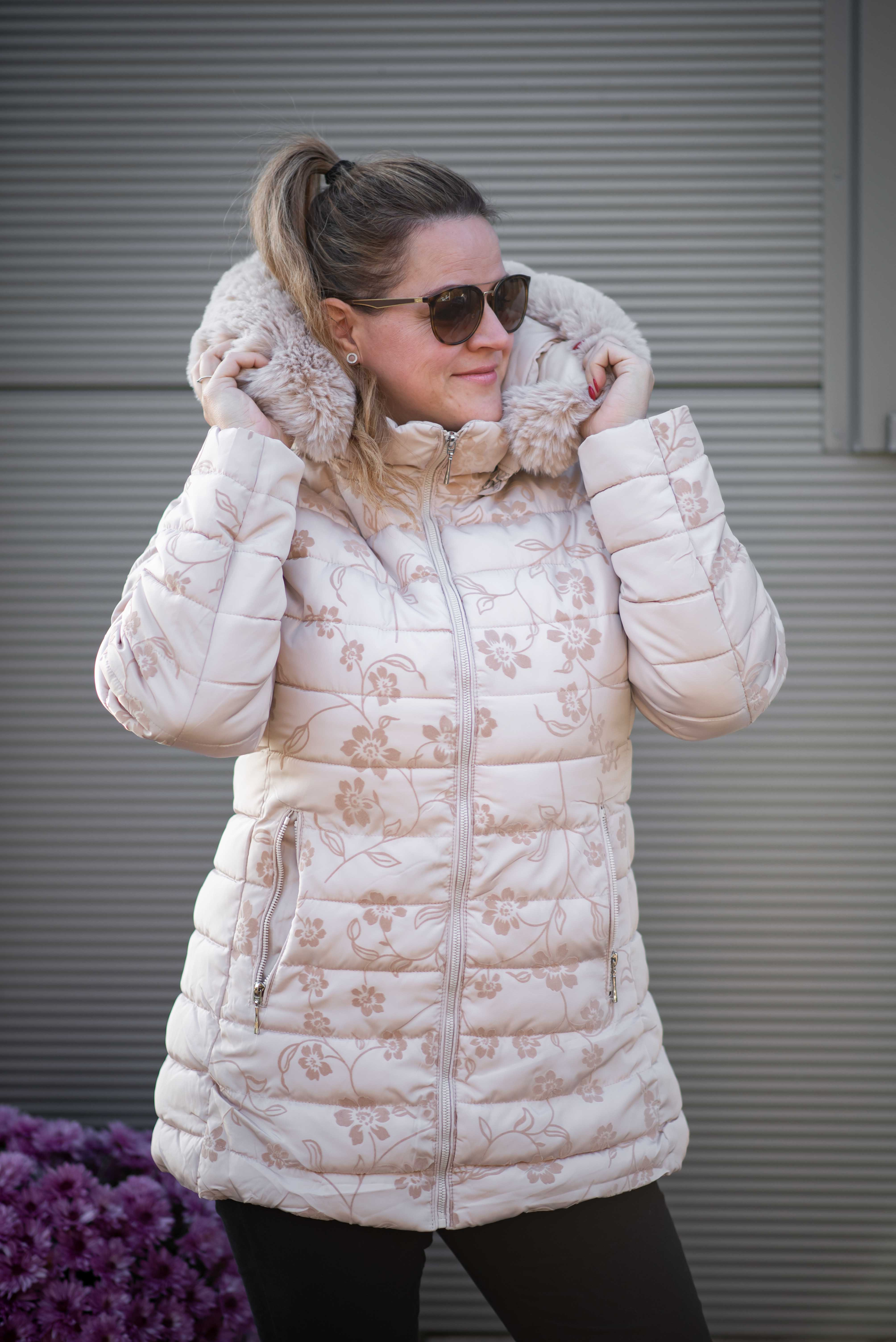 Dámská delší zimní bunda s kapucí a kožíškem. Odnímatelná kapuce
