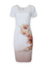 Dámské elegantní šaty s krátkým rukávem smetanové s potiskem