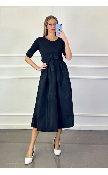 Dámské šaty s dlouhým rukávem a balónovou sukní, všité kapsy , opasek
