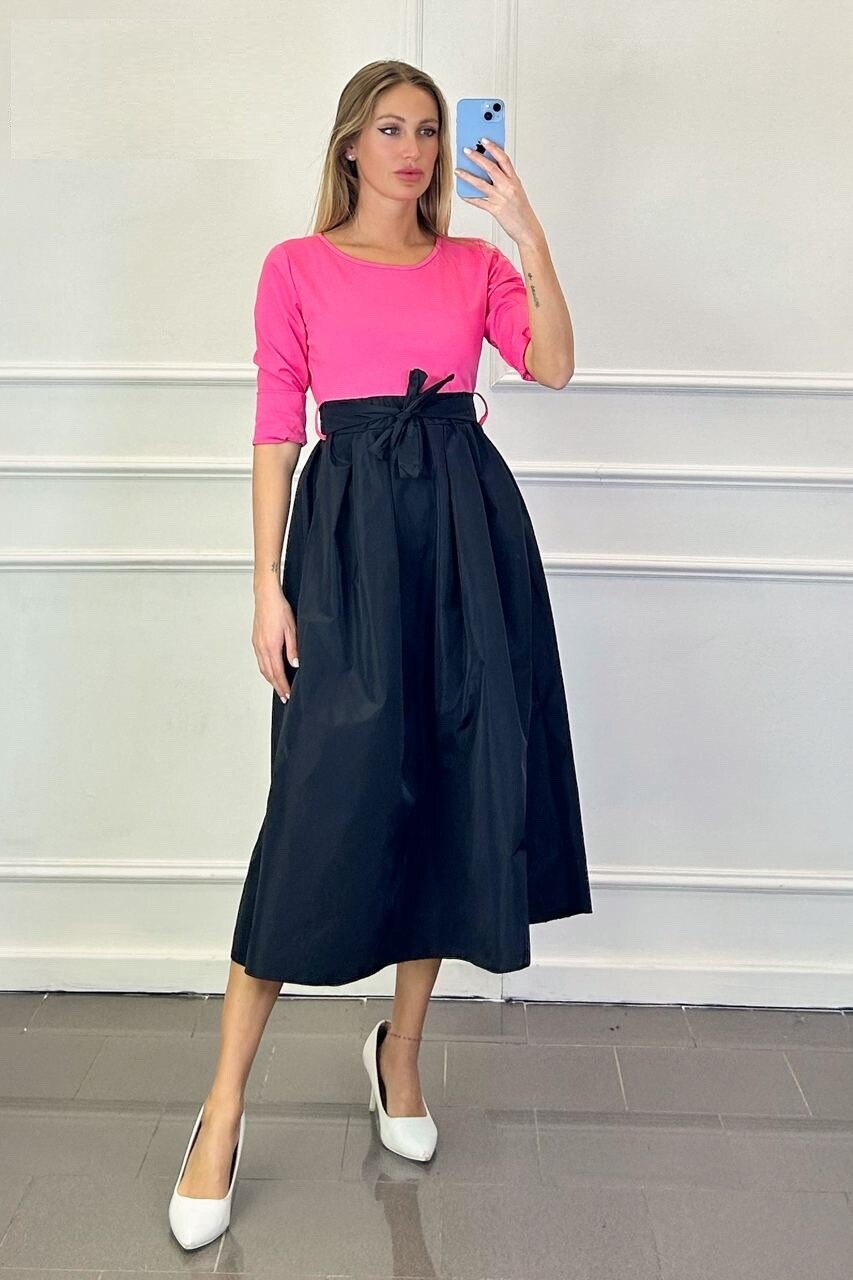Šaty jsou vyrobeny z prémiových materiálů, které jsou pečlivě vybrány pro maximální pohodlí a dlouhou životnost. Materiál je příjemný na dotek, prodyšný a odolný proti opotřebení. Navíc je snadno udržovatelný a odolný proti vráskání, takže vypadá skvěle i po celodenním nošení.