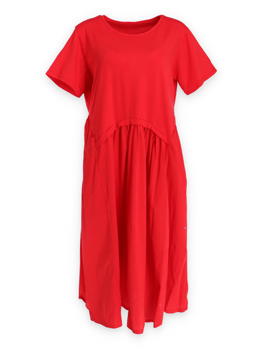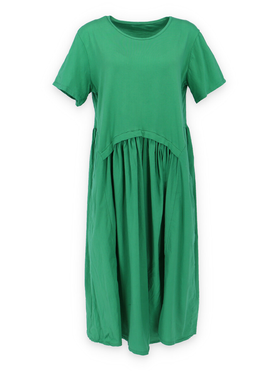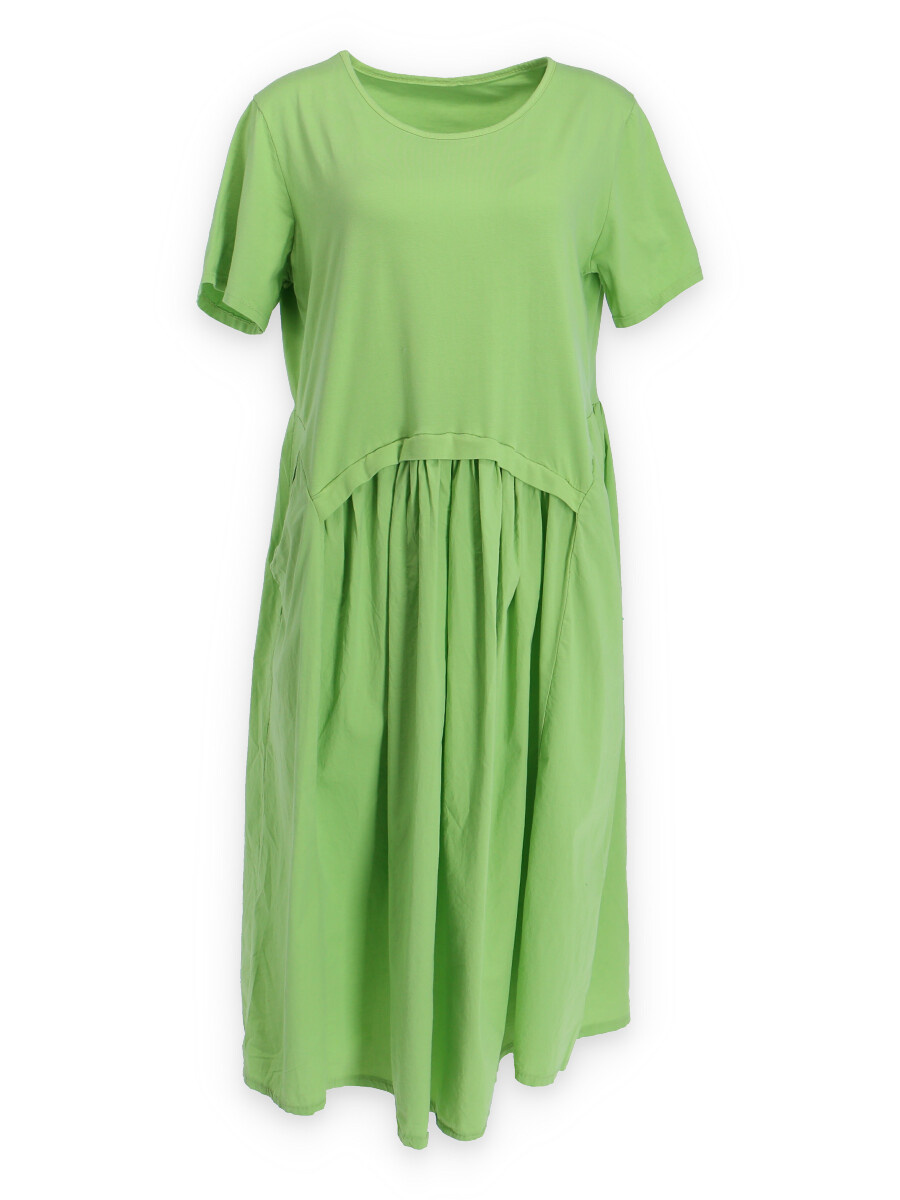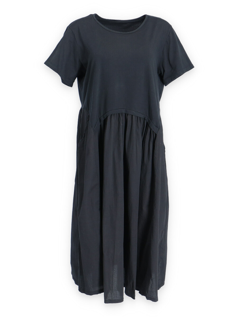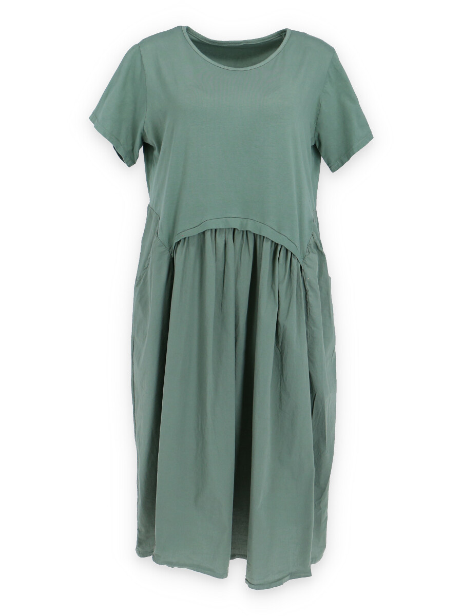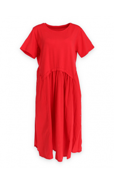 Dlouhé bavlněné balonové letní šaty s krátkým rukávem a kapsami po stranách.