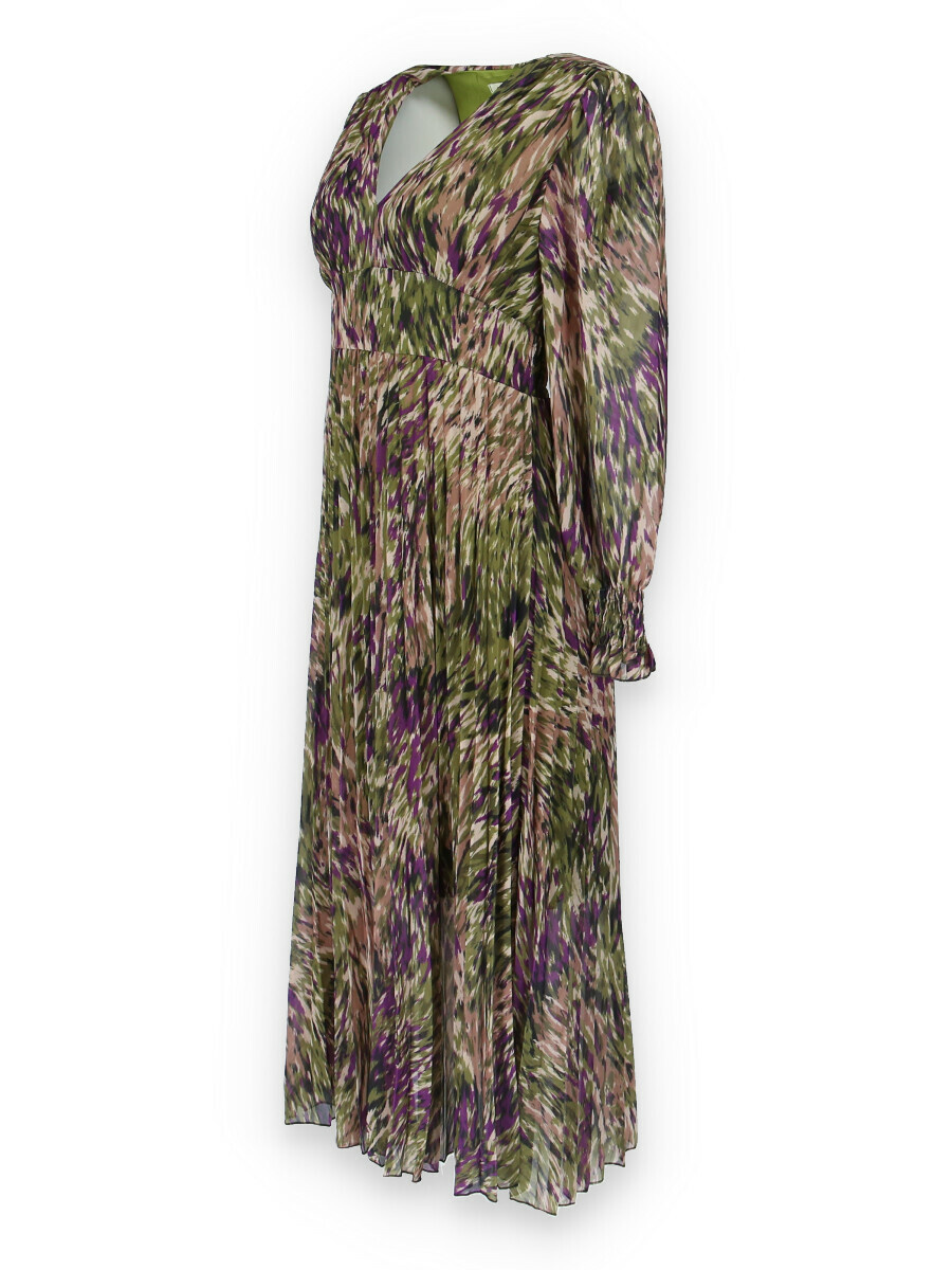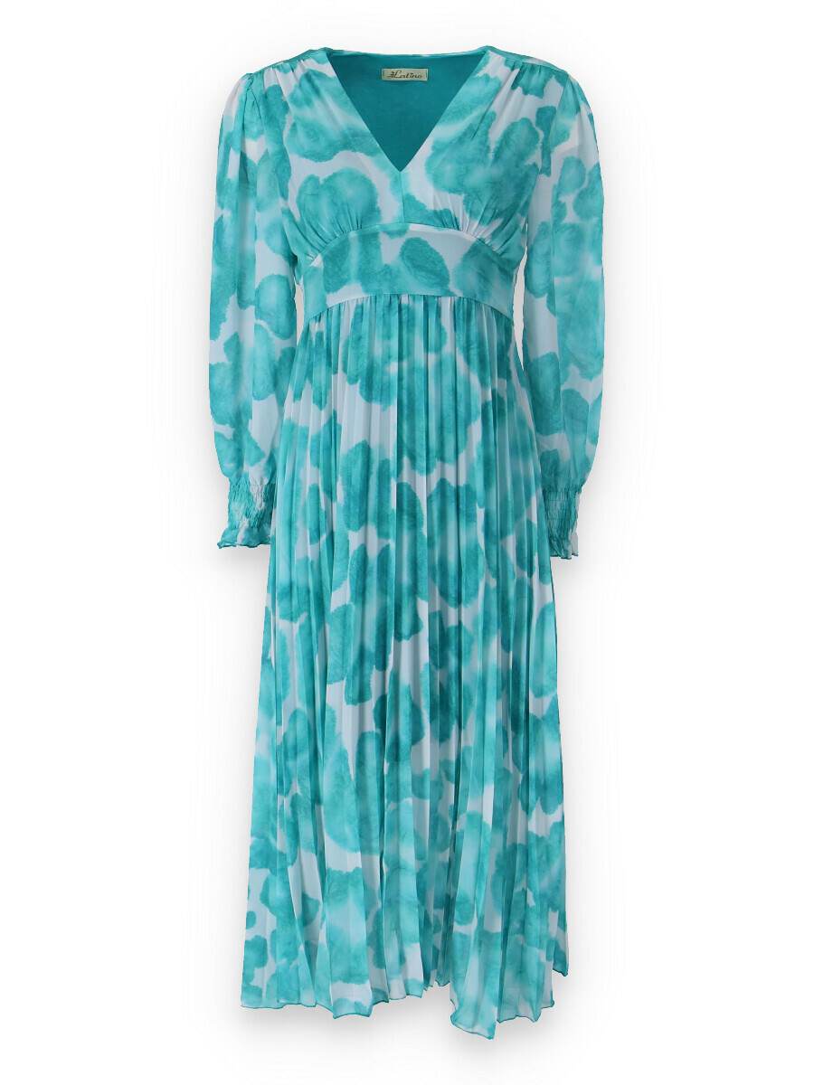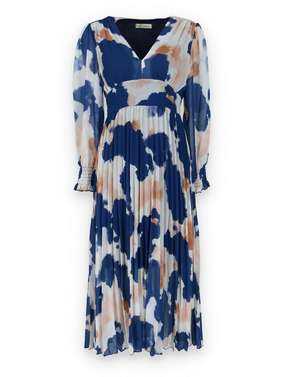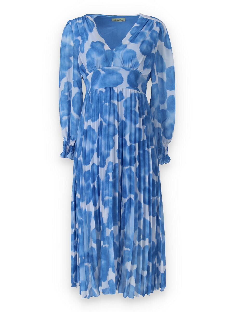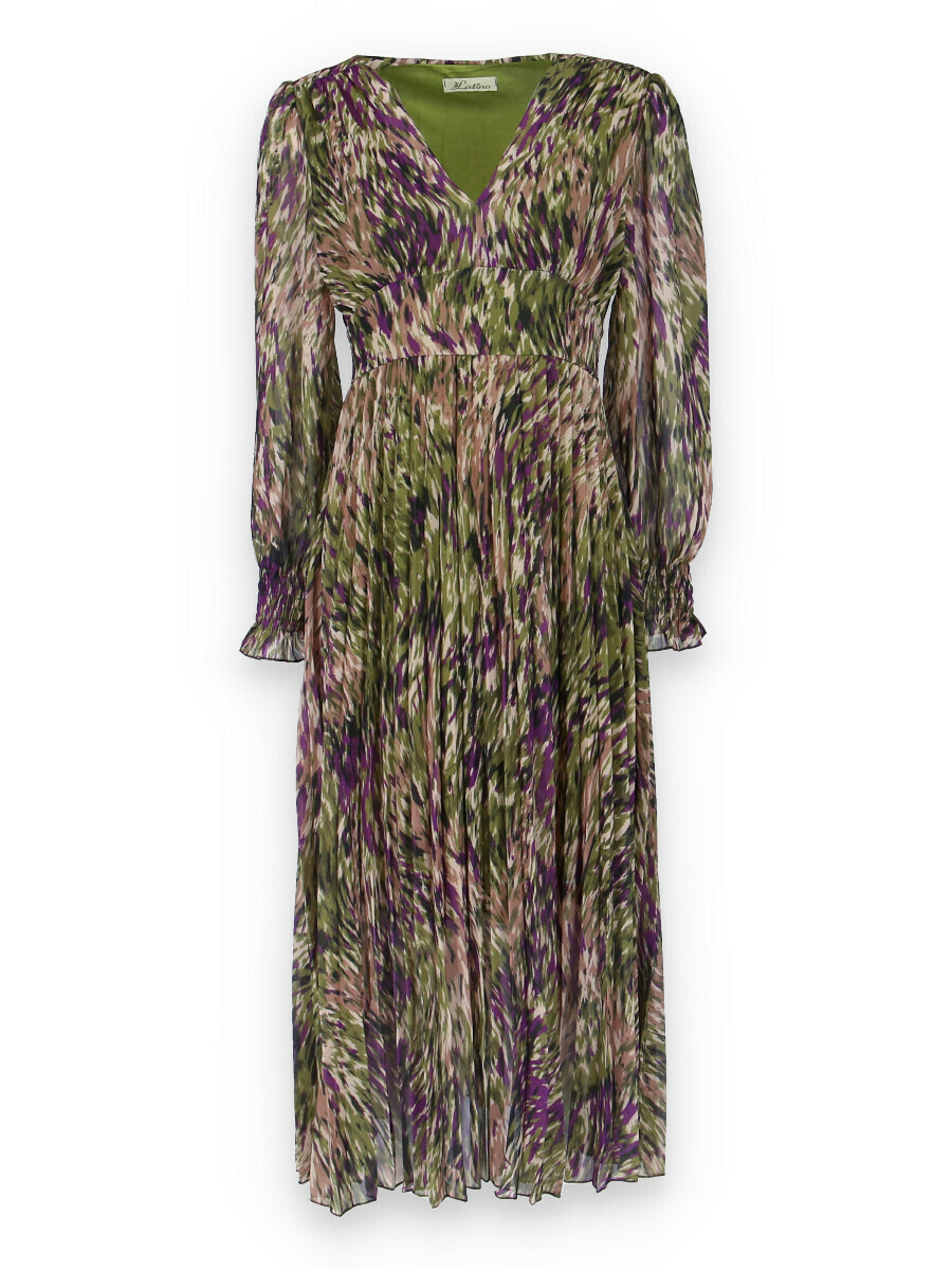 Dámské dlouhé šaty s dlouhým rukávem, spodní část plisé, výstřih do V , zadní část do gumy, podšívka