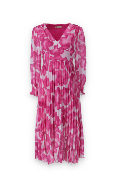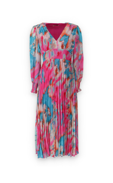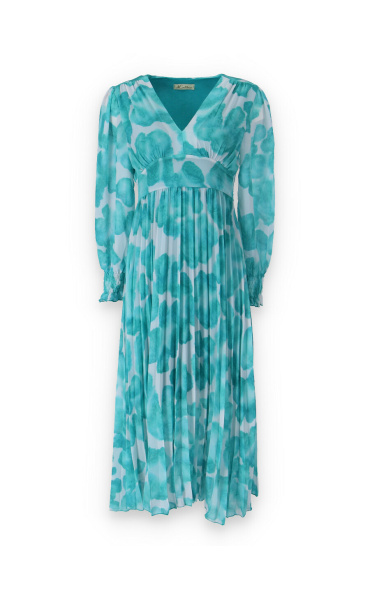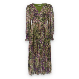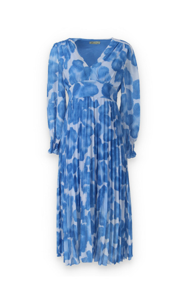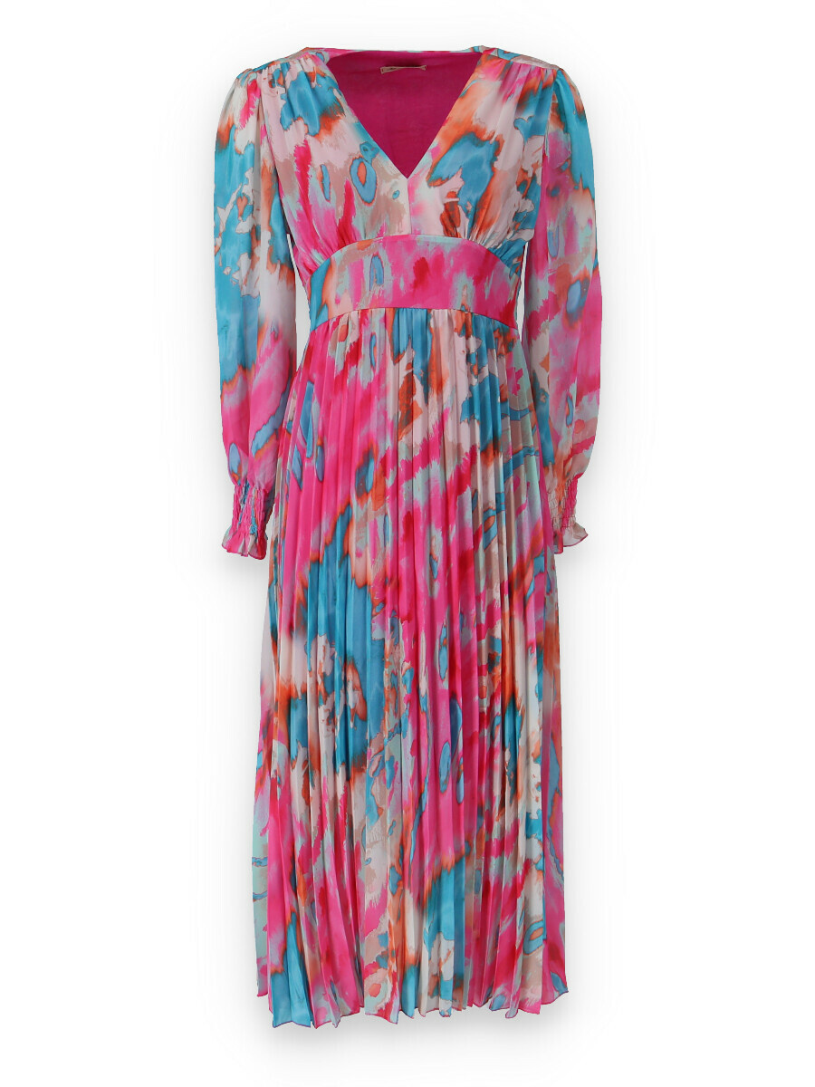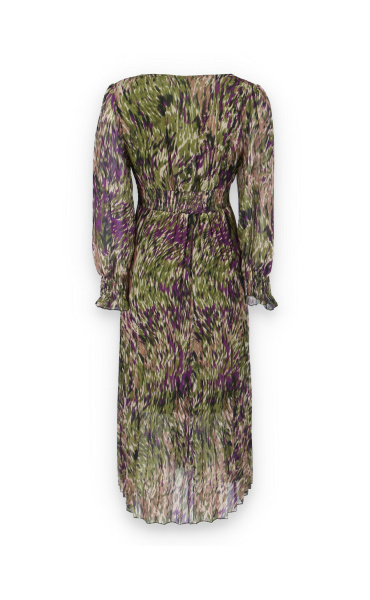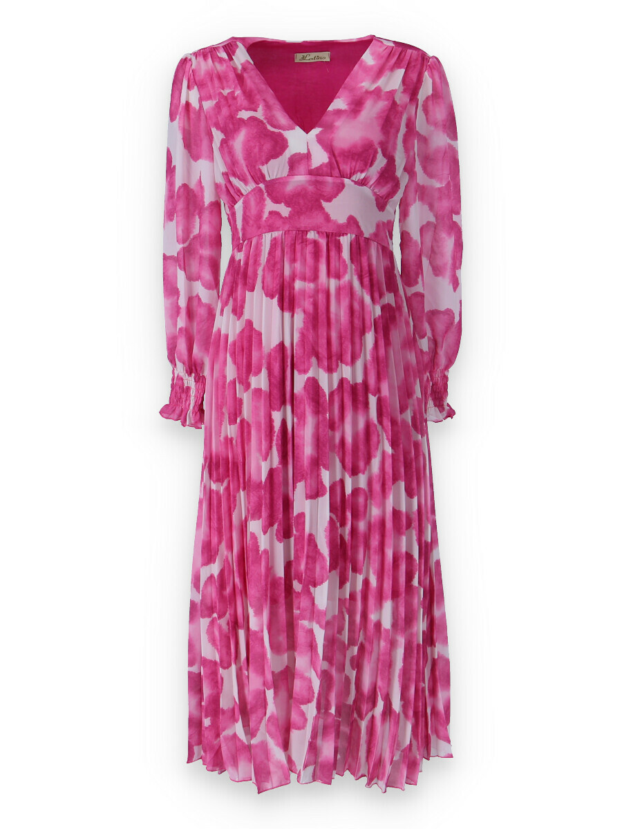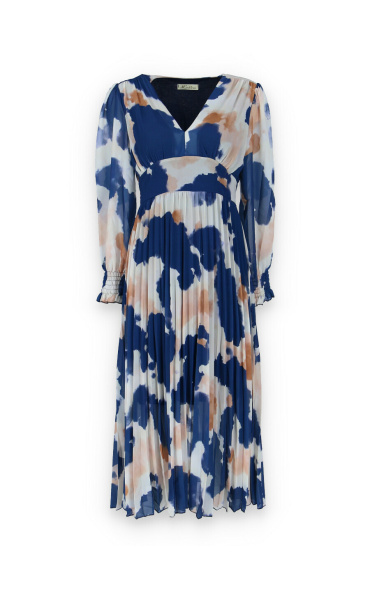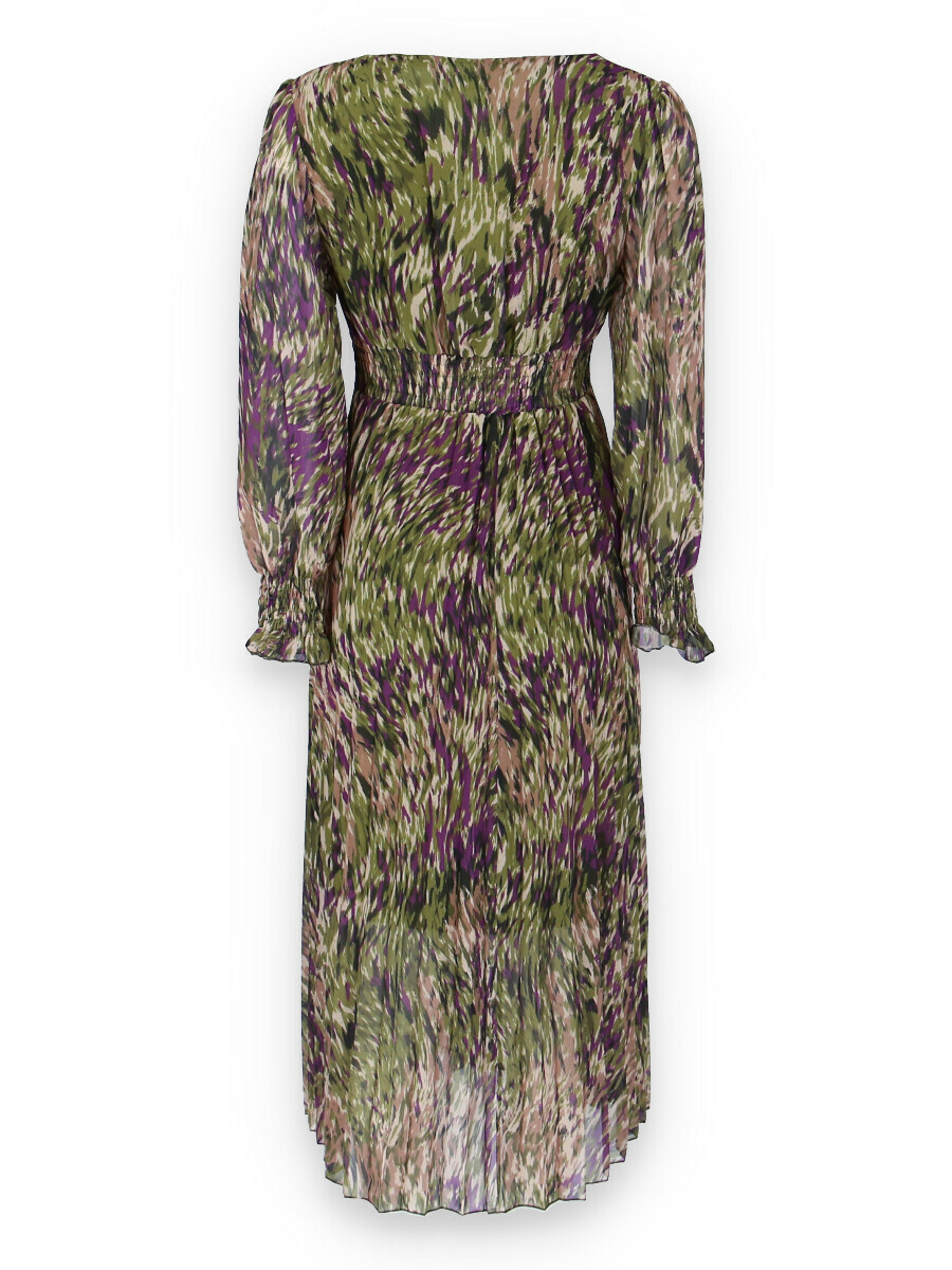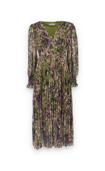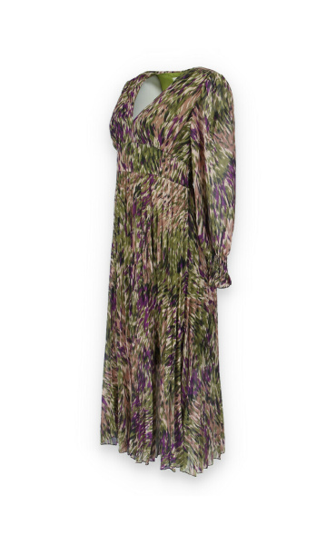 Dámské dlouhé šaty s dlouhým rukávem, spodní část plisé, výstřih do V , zadní část do gumy, podšívka
