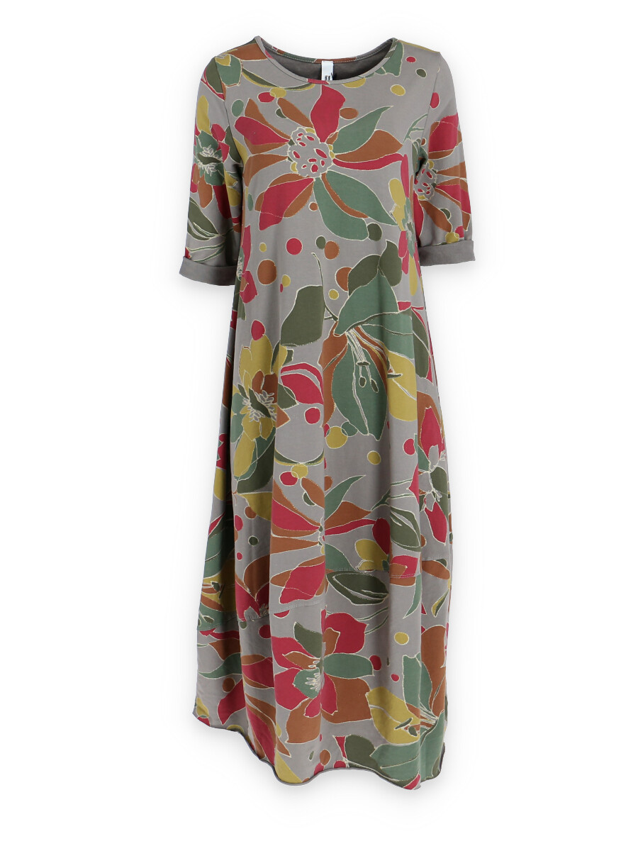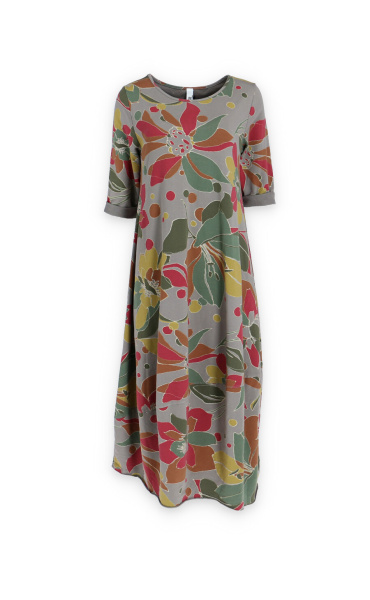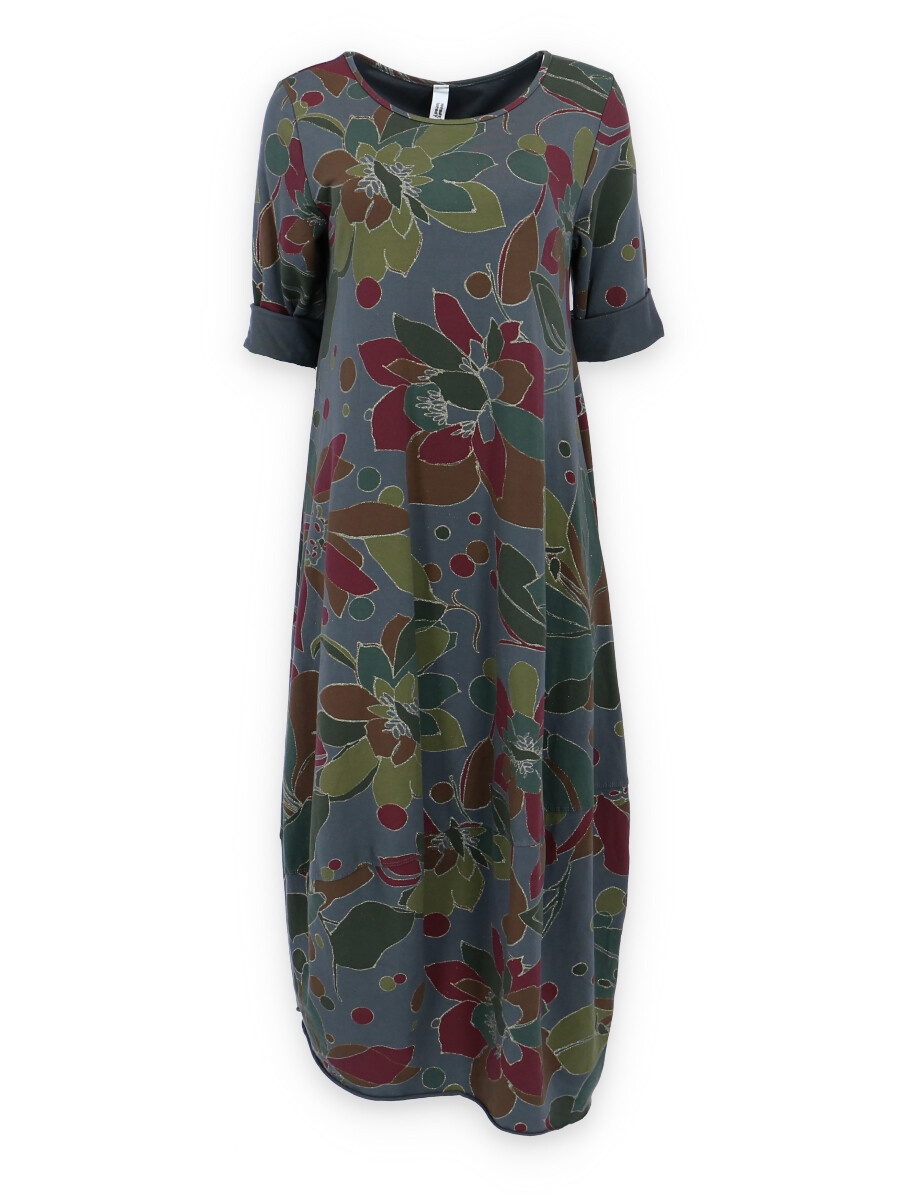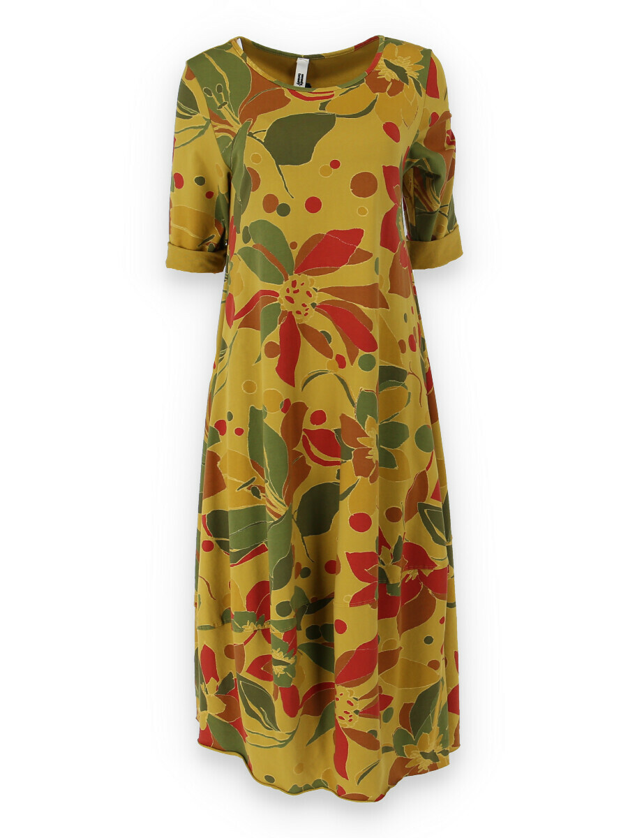 Módní dlouhé balónového střihu dámské šaty a kulatým výstřihem a 3/4 rukávem
