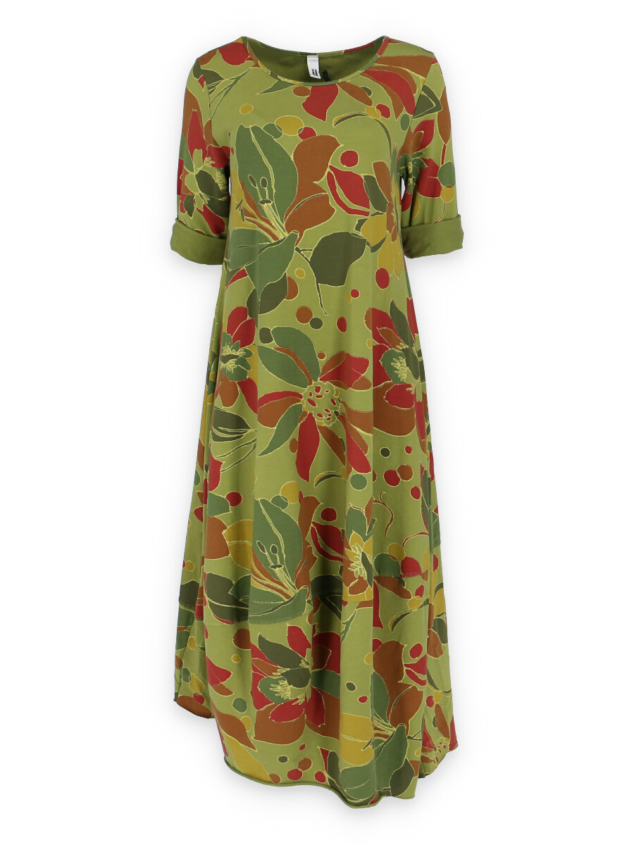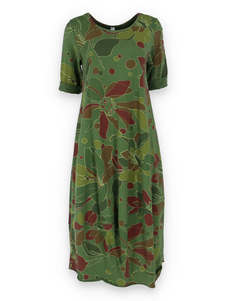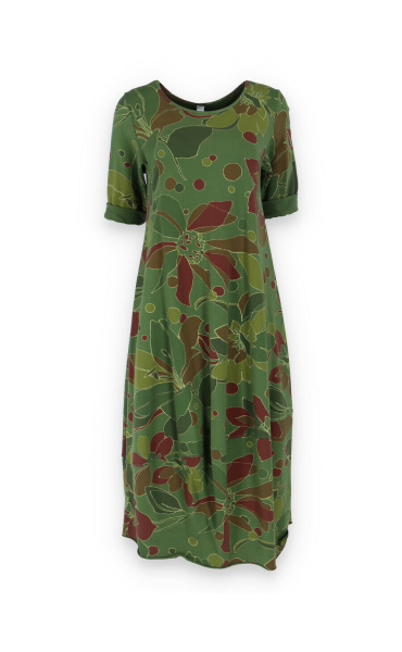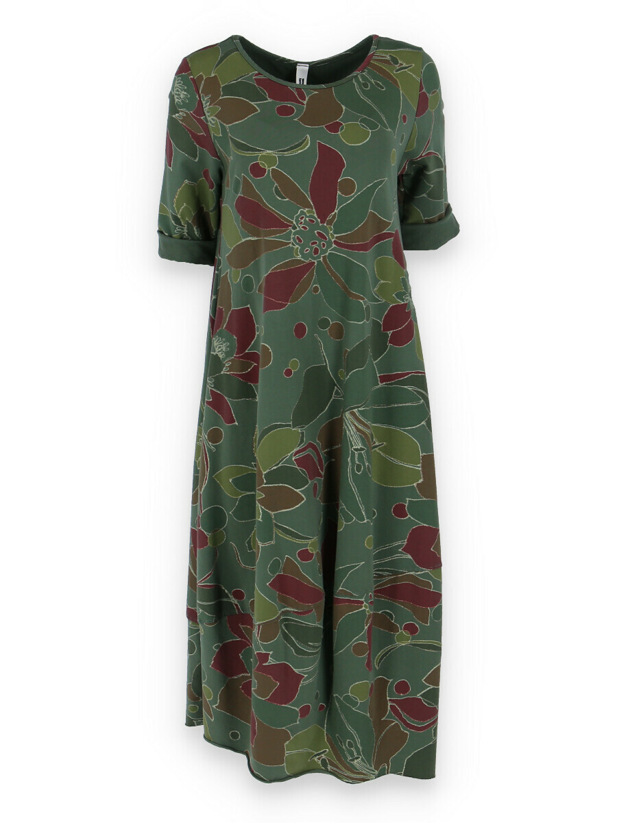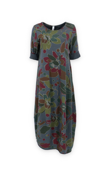 Módní dlouhé balónového střihu dámské šaty a kulatým výstřihem a 3/4 rukávem