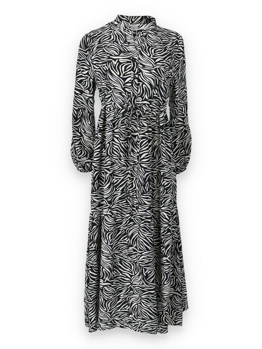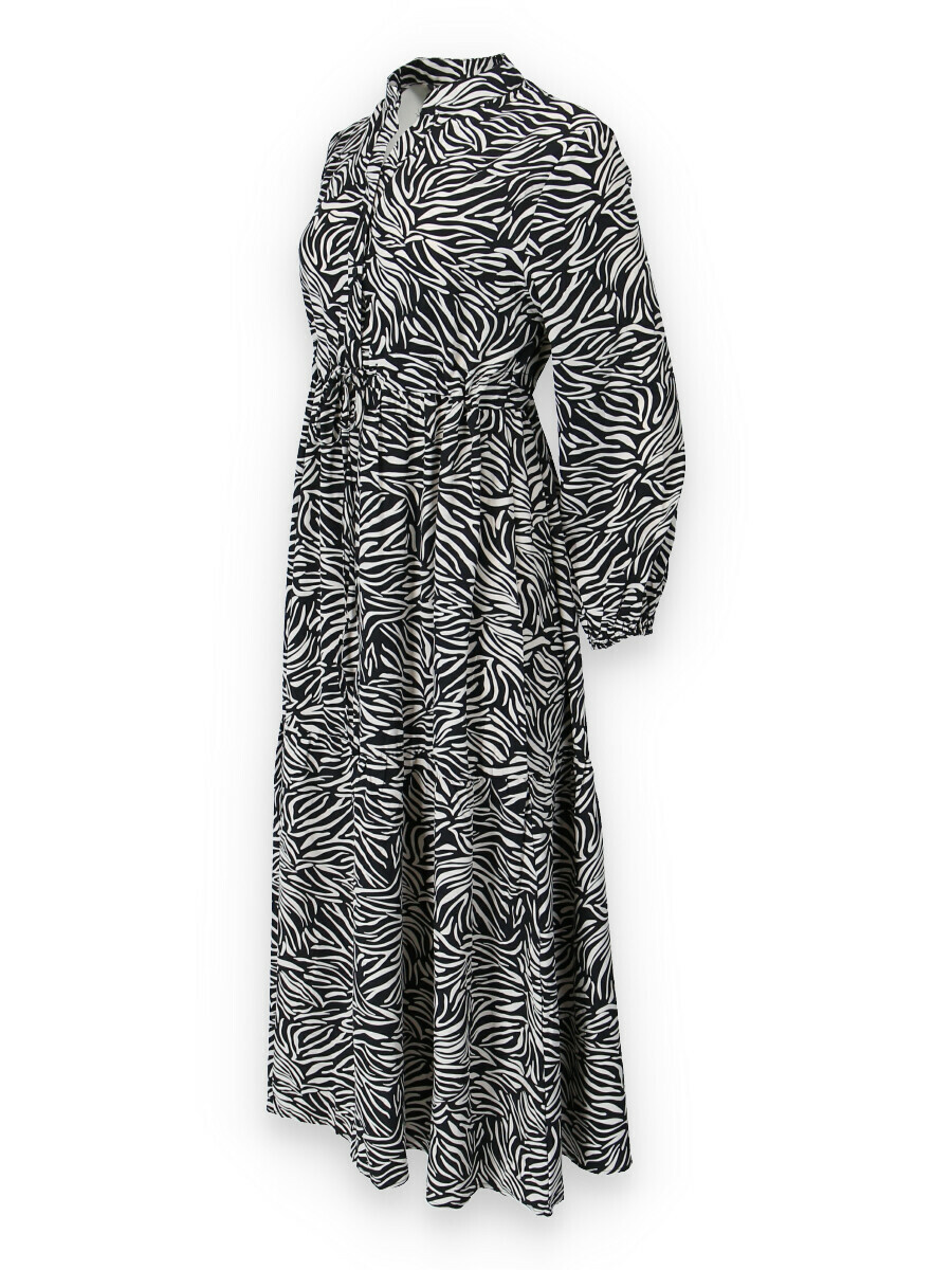 Dámské vzorované šaty s vázáním a gumou v pase, krátký rukáv