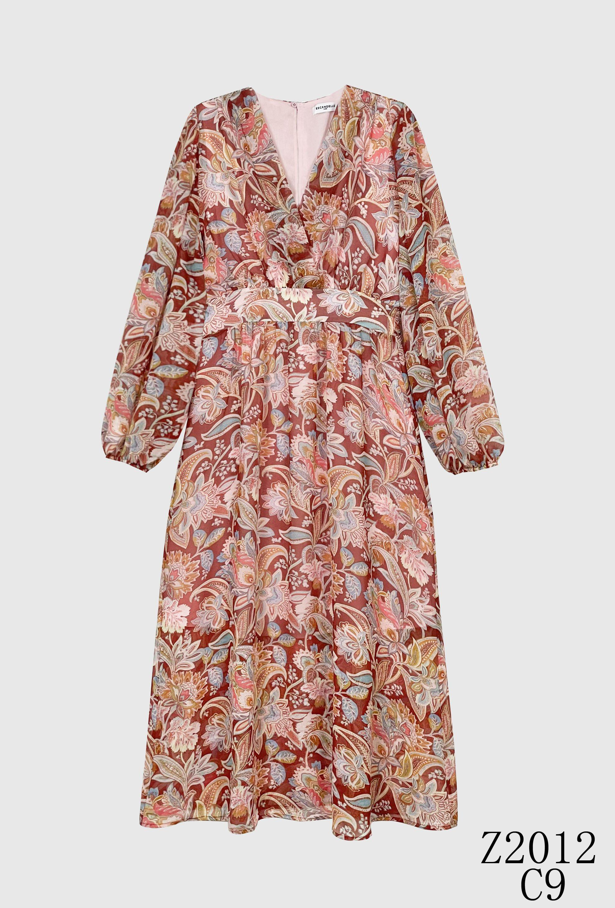 Dlouhé a splývavé šaty. Díky překříženému límci zvýrazní dekolt. Lehká a ženská díky elastickému pasu je vhodná pro všechny jiskřivé ženy. Dlouhé rukávy, elastické v zápěstí pro nadýchaný efekt, má vnitřní podšívku a vzadu zapínání na knoflík. Francouzské značky Escandelle Paris - dovezeno z Francie.