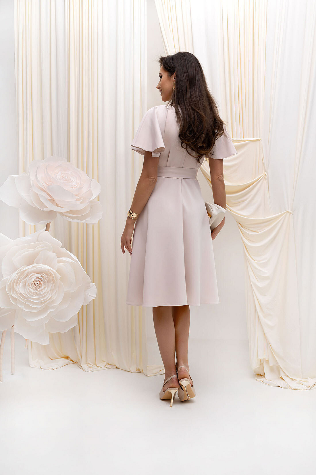 Šaty jsou navrženy s důrazem na detail a eleganci. Jejich délka ke kolenům a jemný zip na zadní straně zajišťují snadné oblékání a pohodlné nošení. Střih šatů je navržen tak, aby lichotil každé postavě a zdůraznil ženské křivky. Díky tomu se budete cítit sebevědomě a přitažlivě při každé příležitosti.