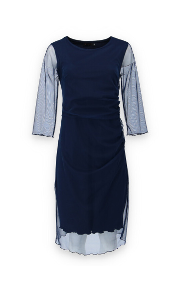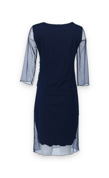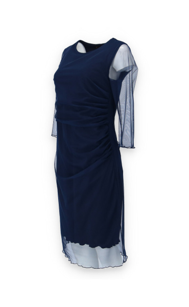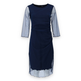 Elegantní společenské šaty s 3/4 rukávem ve tmavě modré barvě s délkou ke kolenům vhodné i na denní nošení, řasená sukně