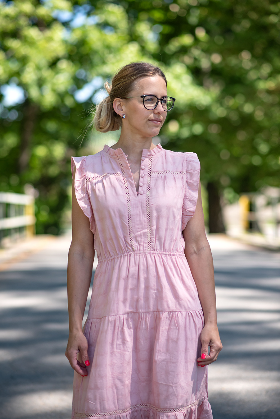 Dámské letní bavlněné šaty se stojáčkem, podšívkou, doplněné aplikací knoflíků ve výstřihu
