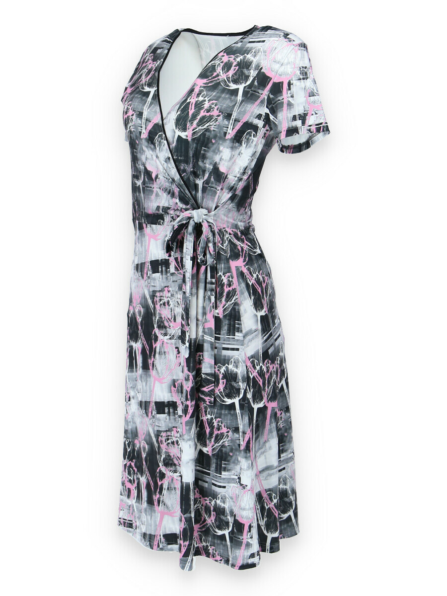 Módní letní dámské šaty s krátkým rukávem a vazačkou v pase