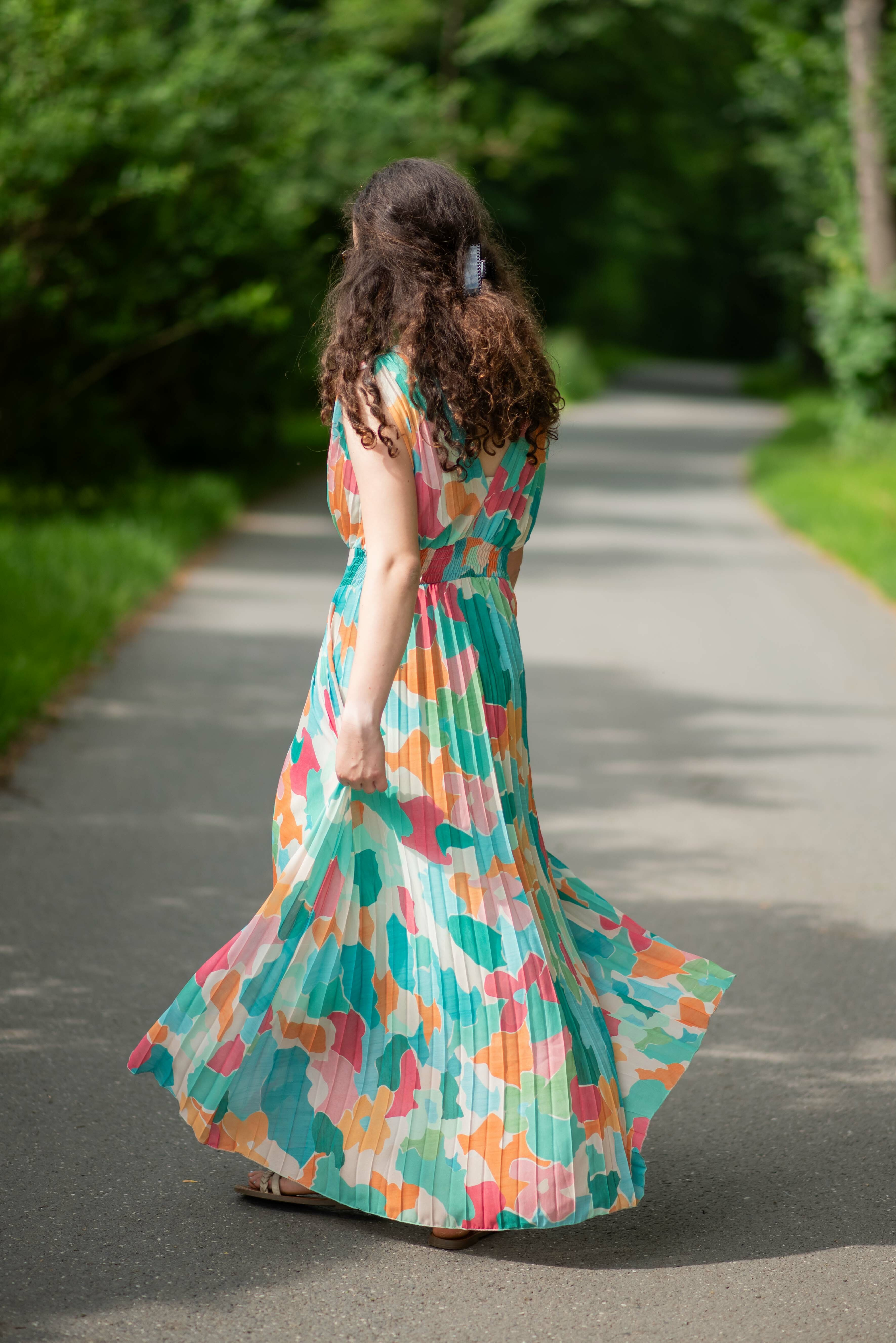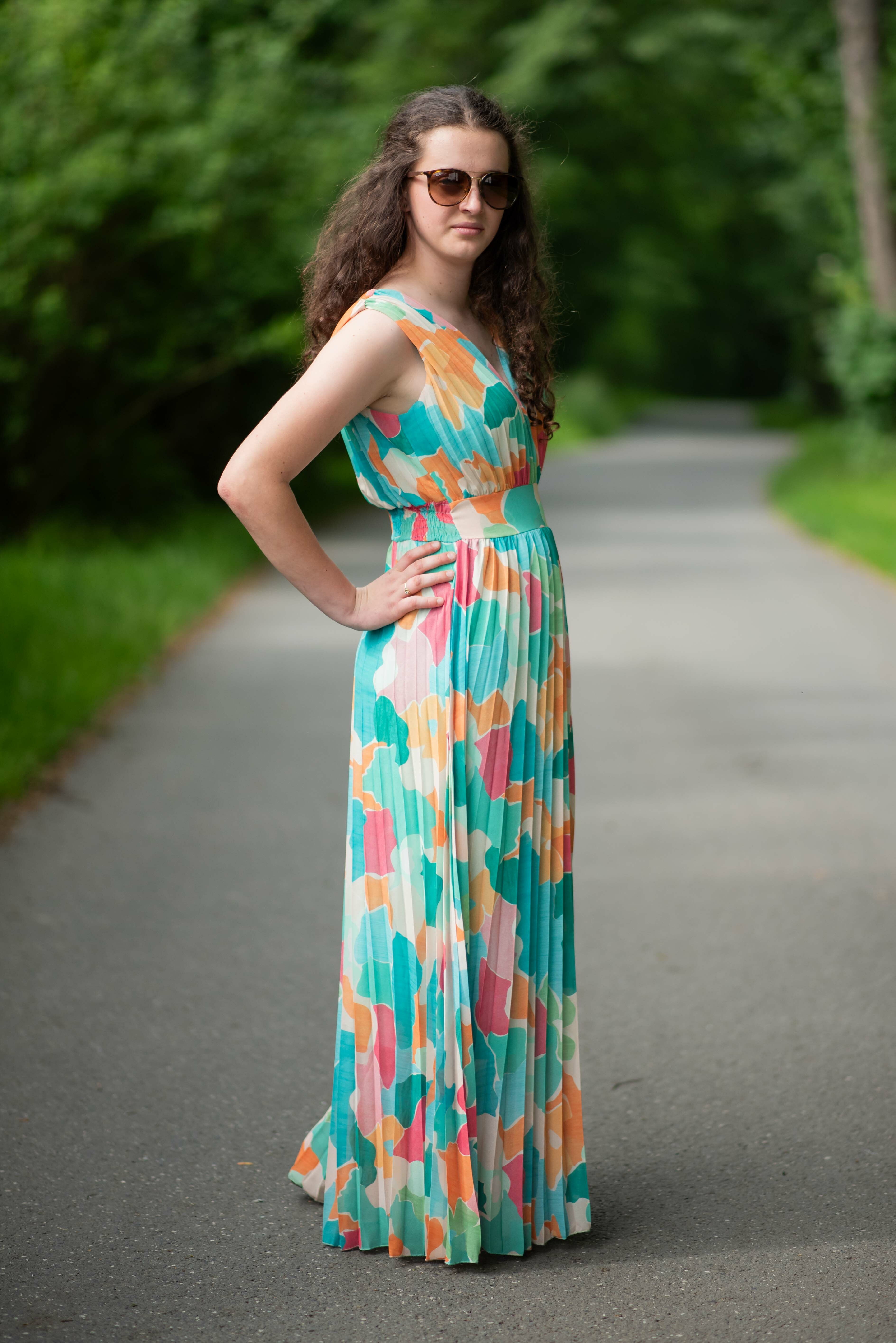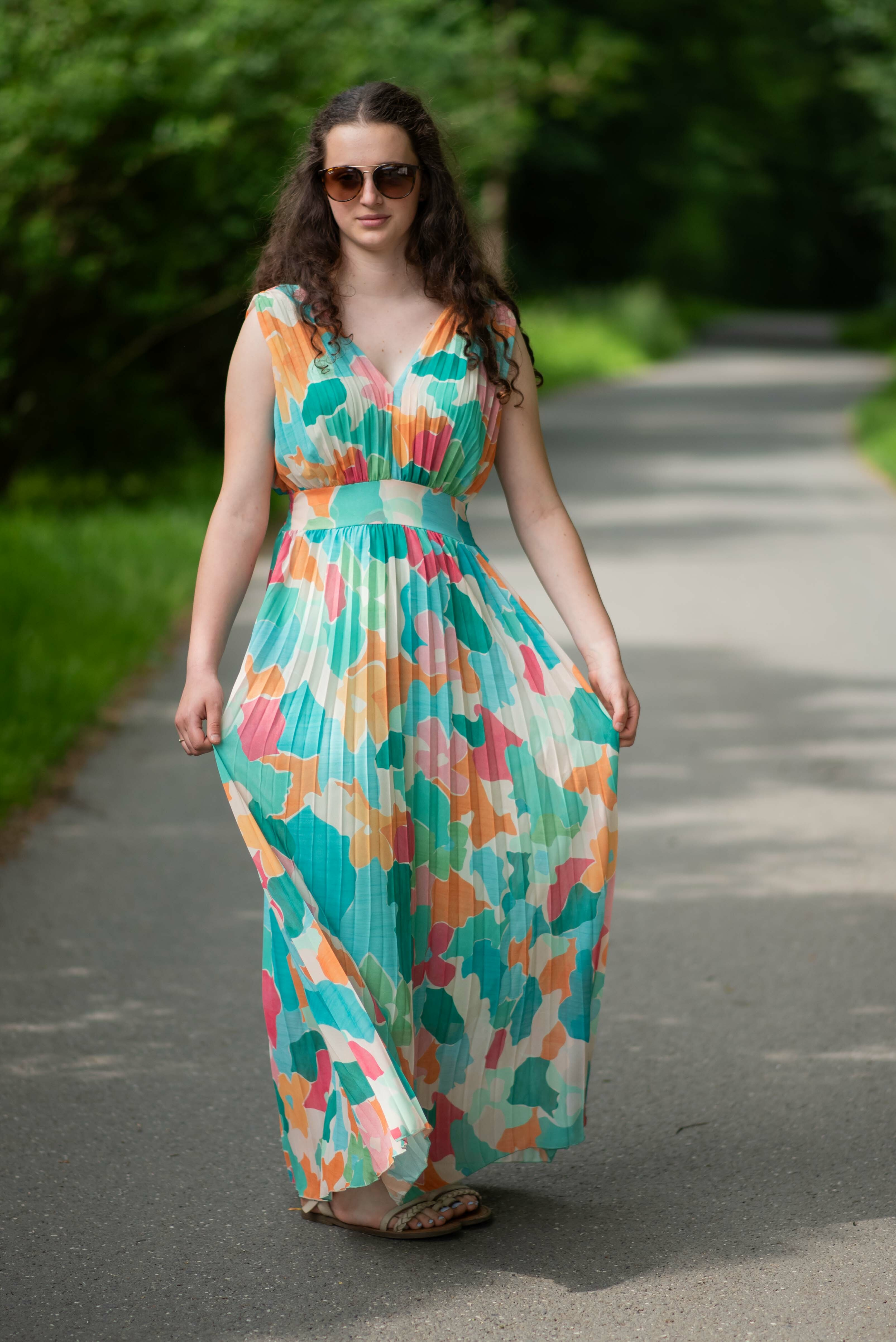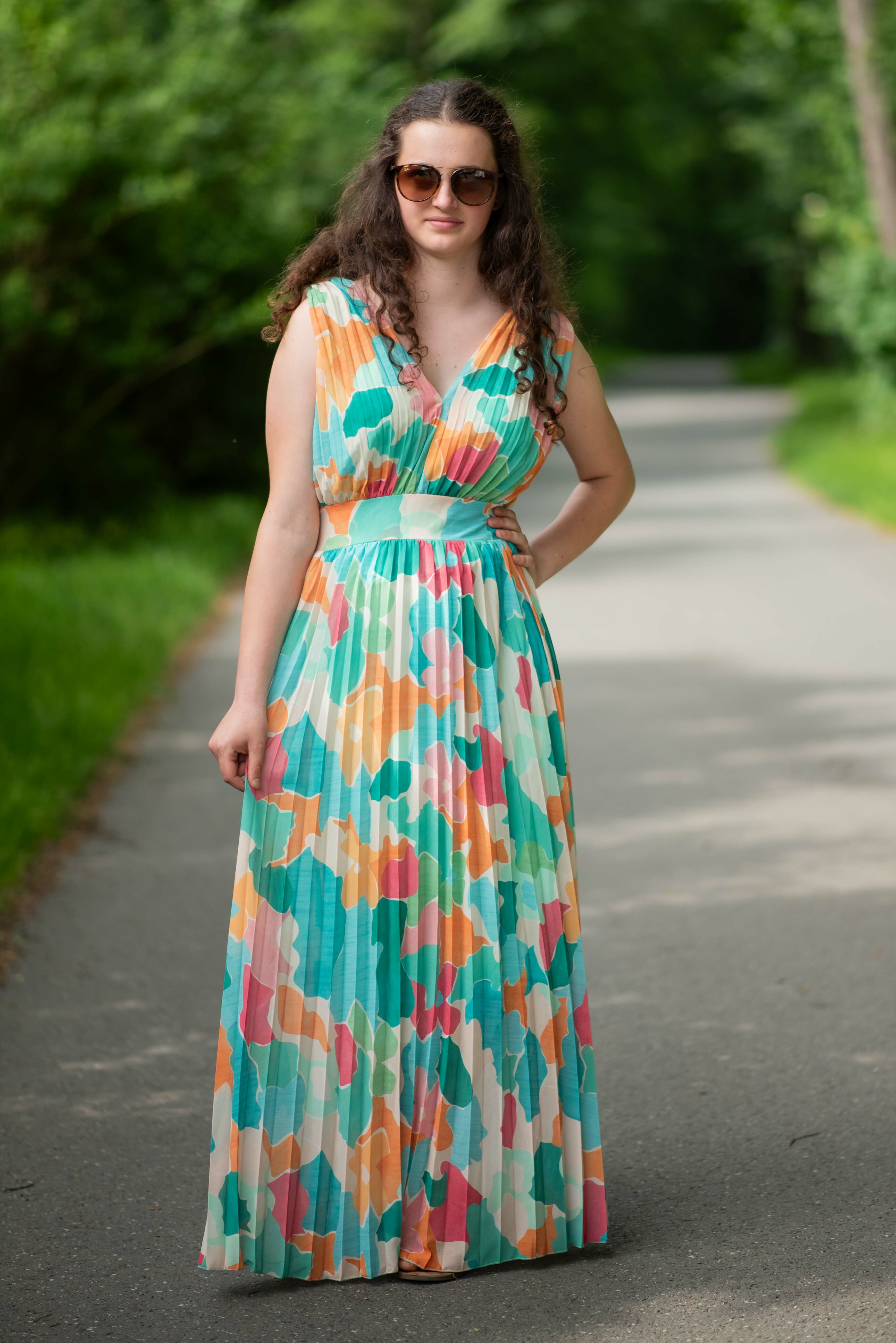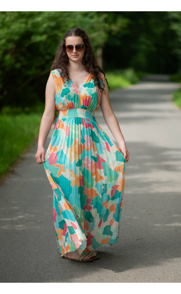 Dámské dlouhé plisé letní šaty s širokými ramínky. Šaty mají podšívku.
