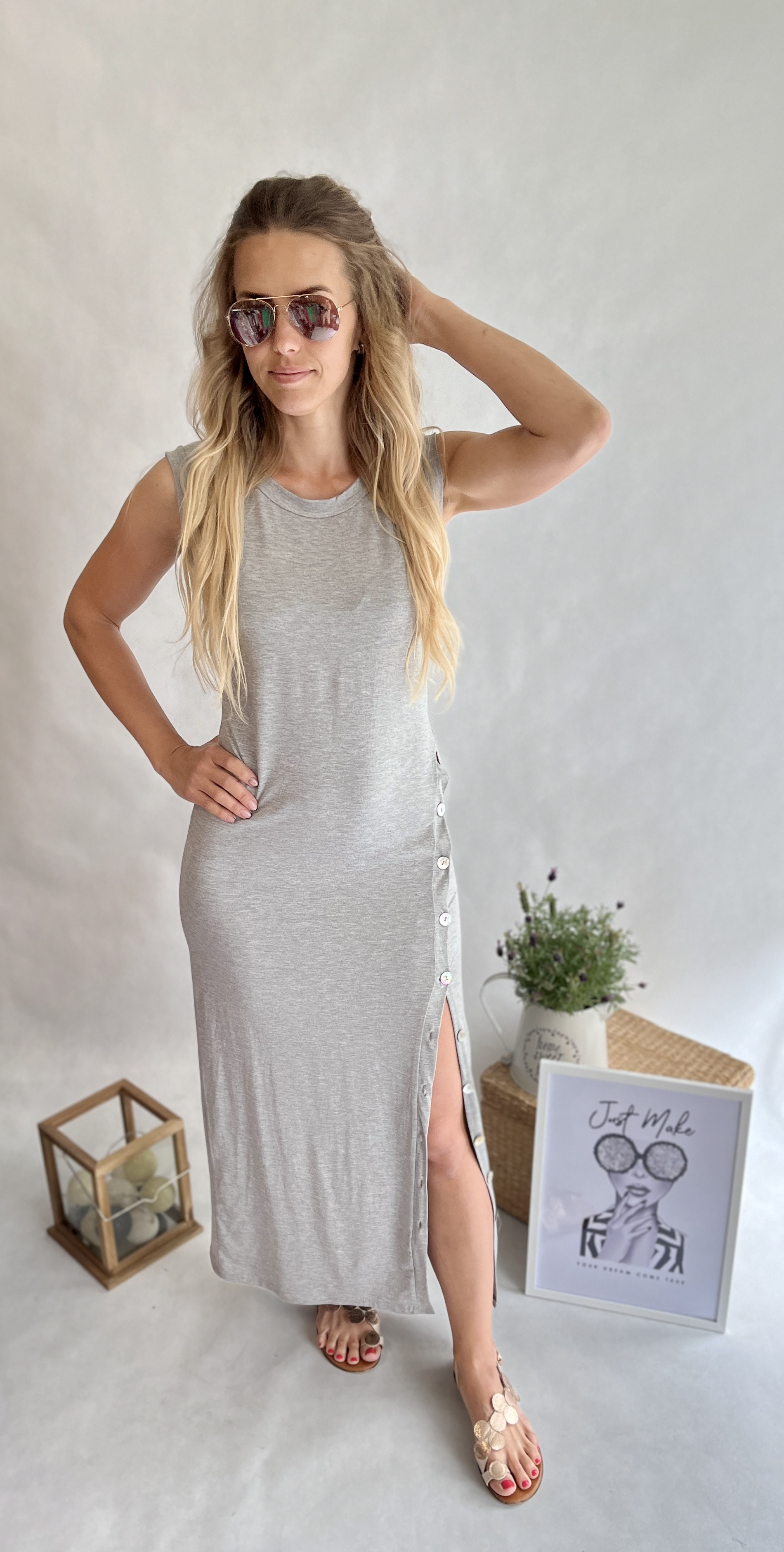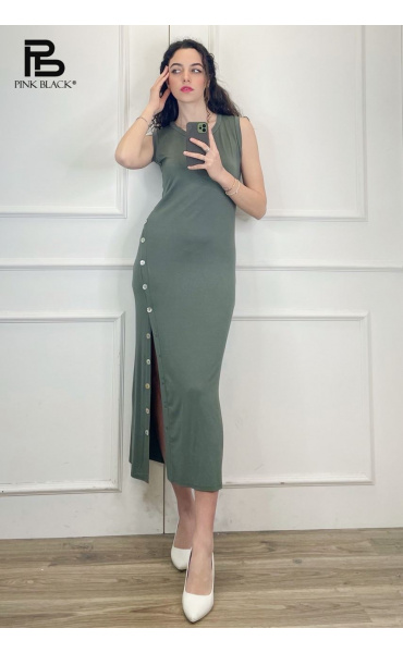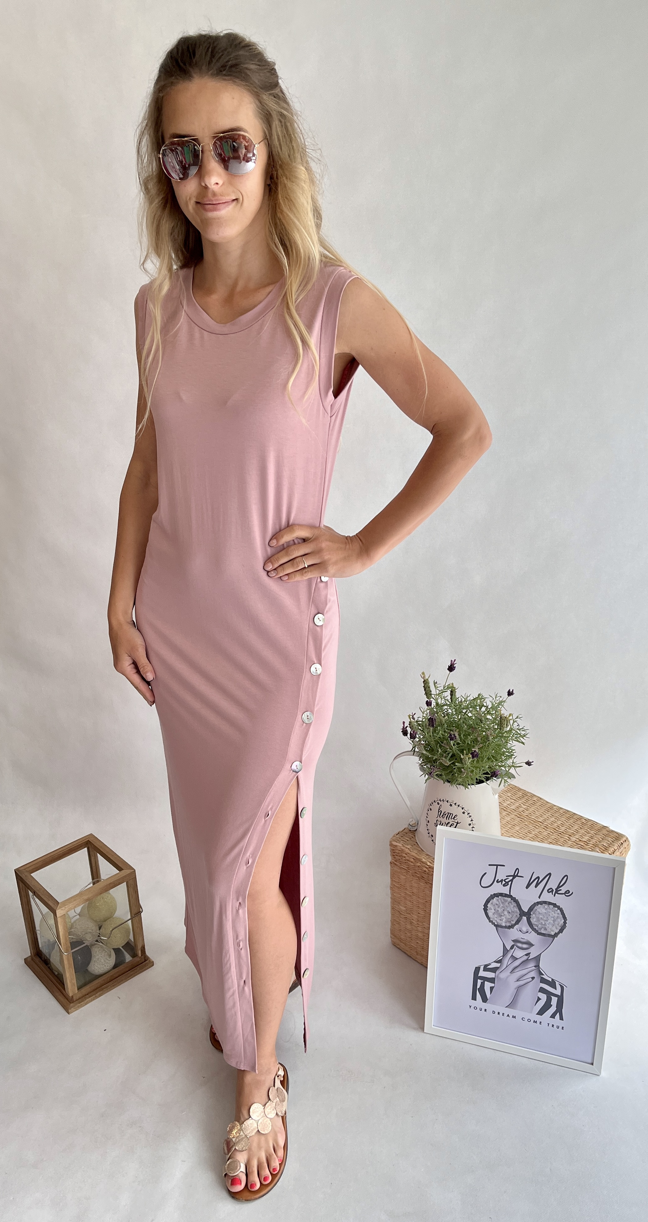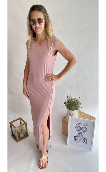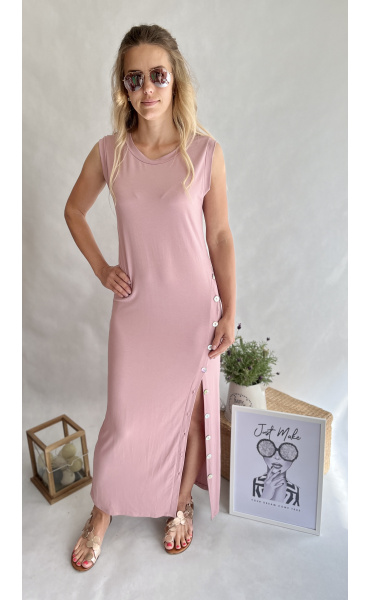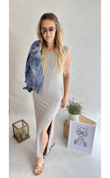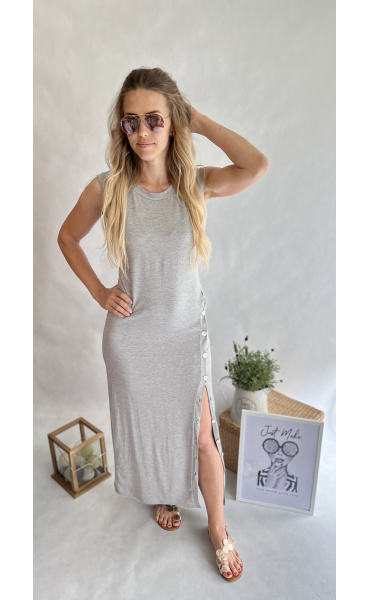 Módní letní dámské dlouhé šaty s originálními knoflíky od pasu dolů.