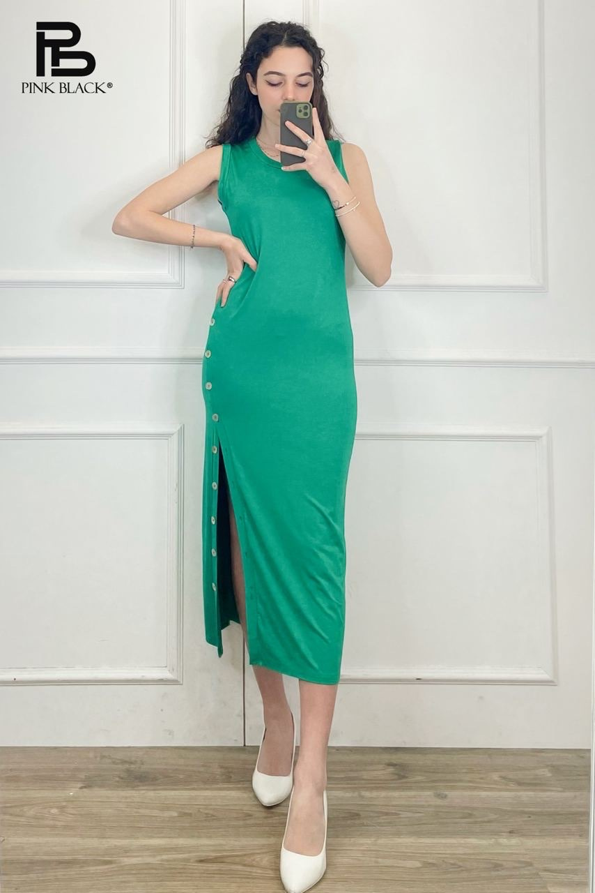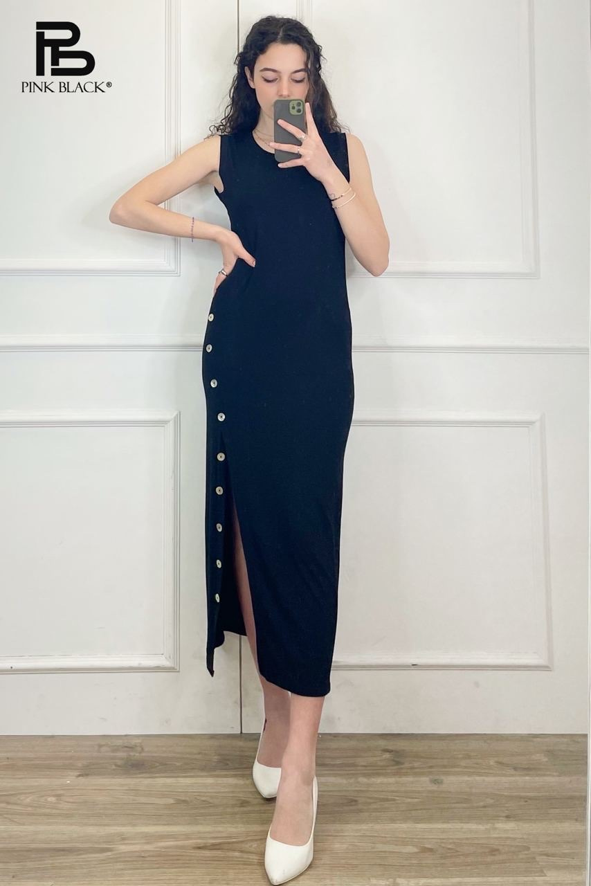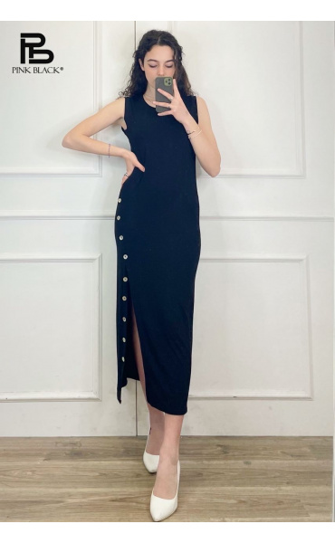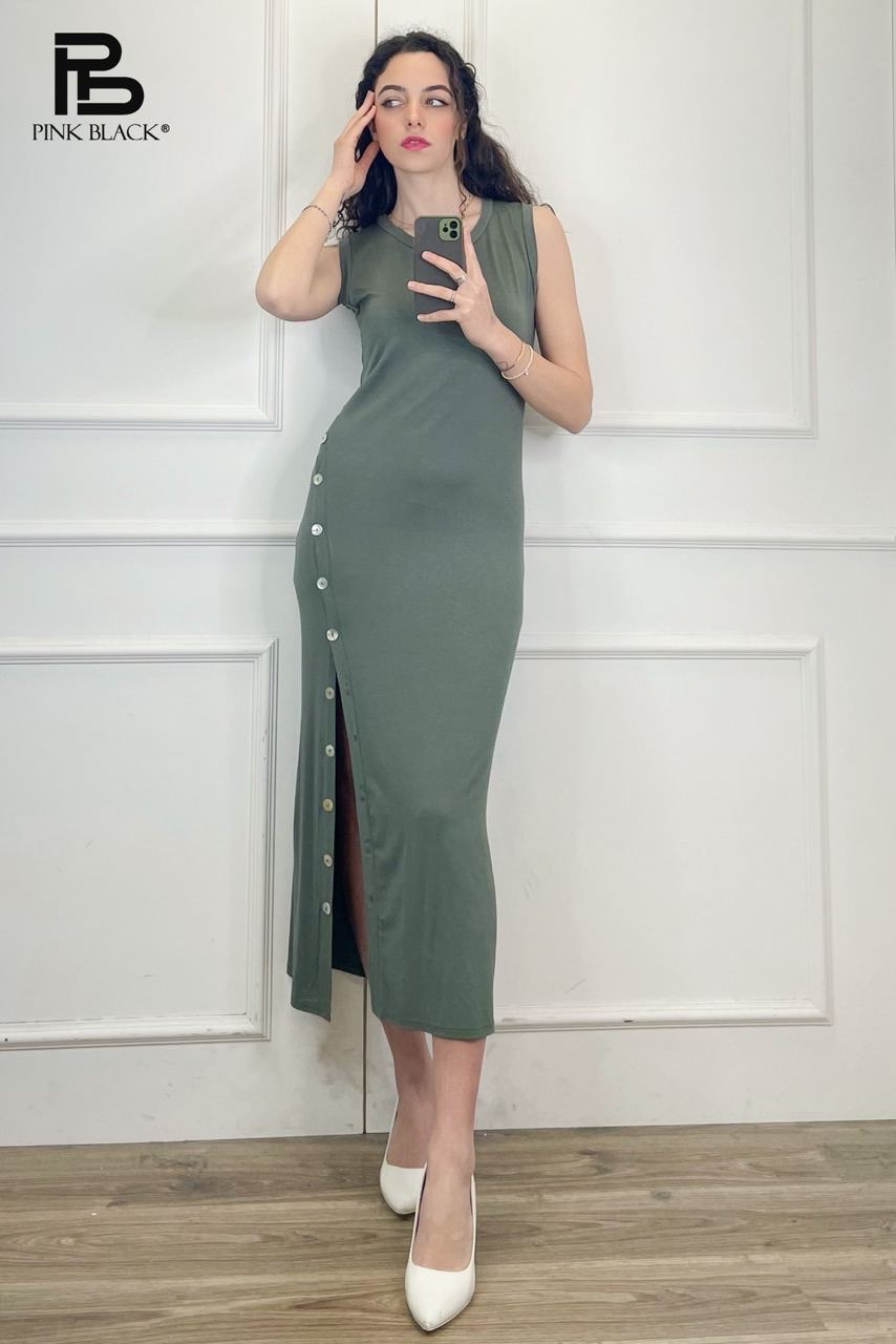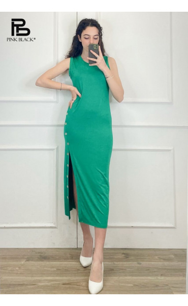 Módní letní dámské dlouhé šaty s originálními knoflíky od pasu dolů.