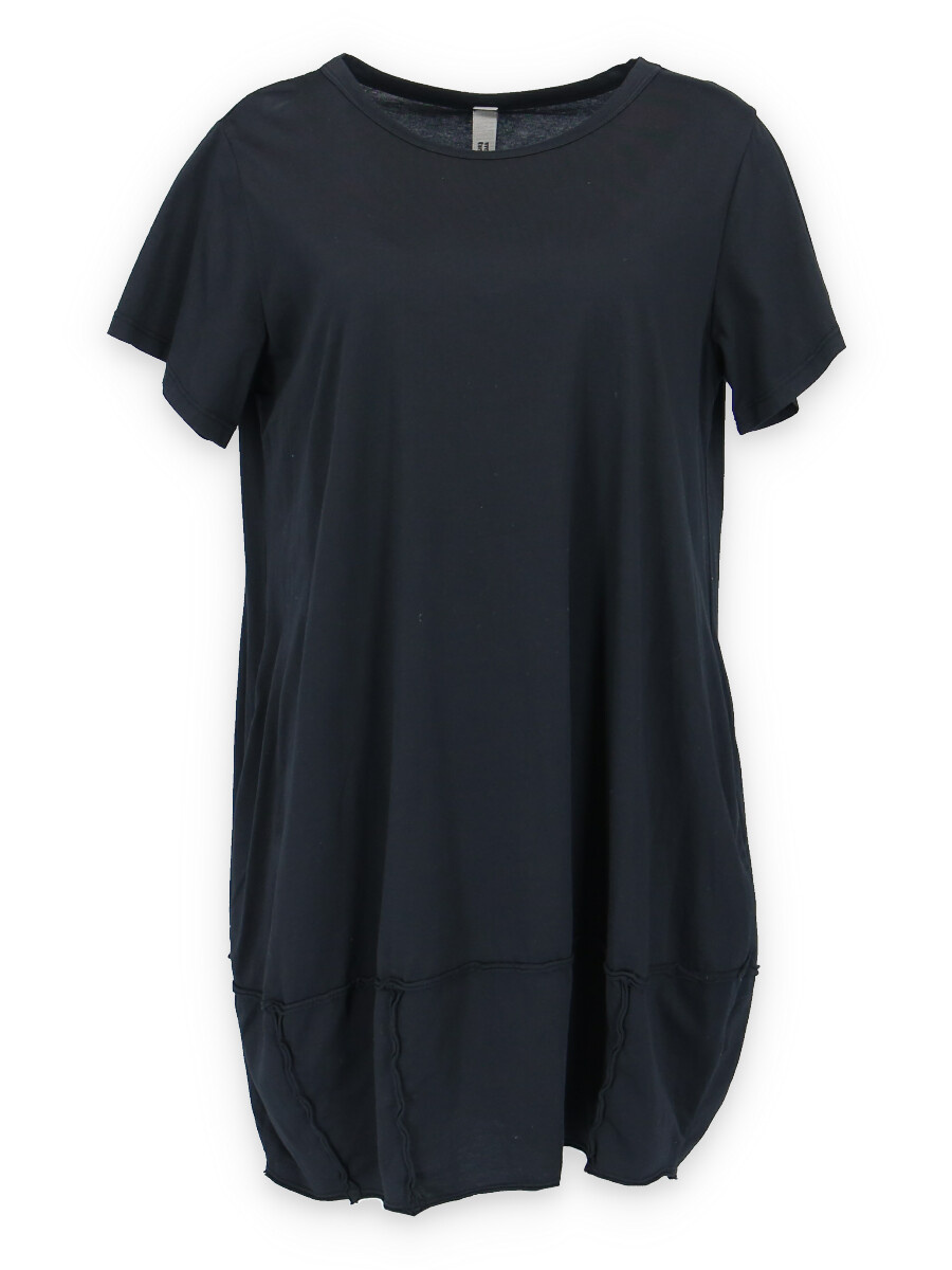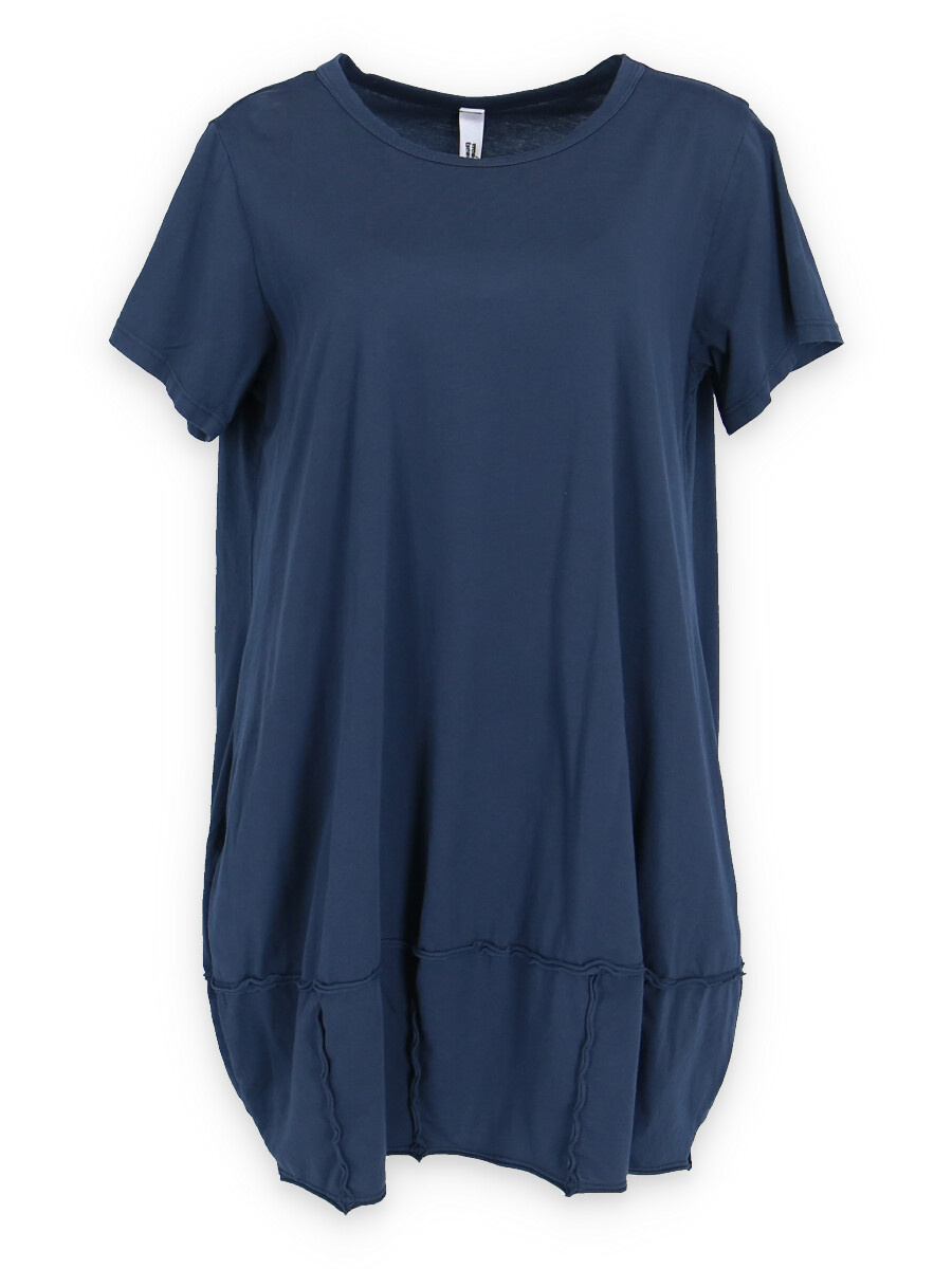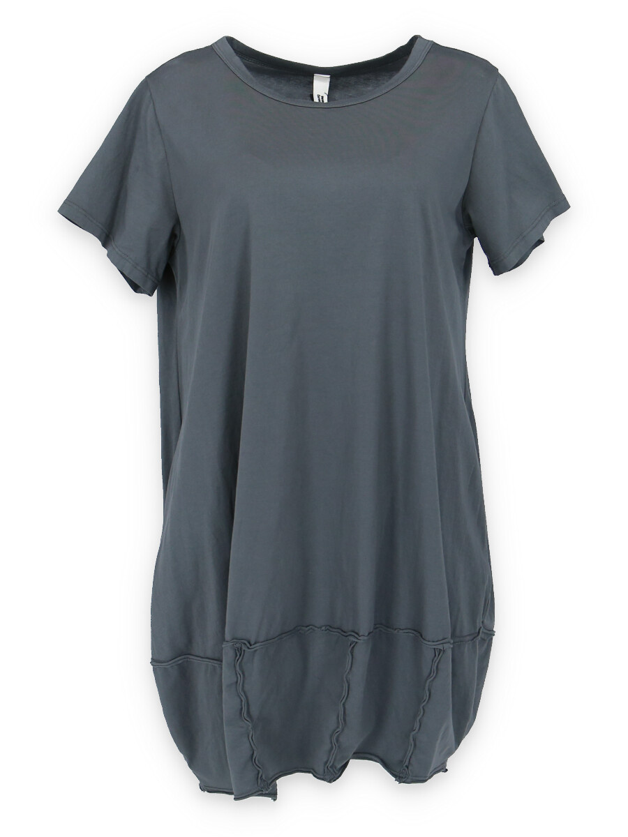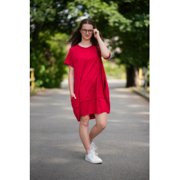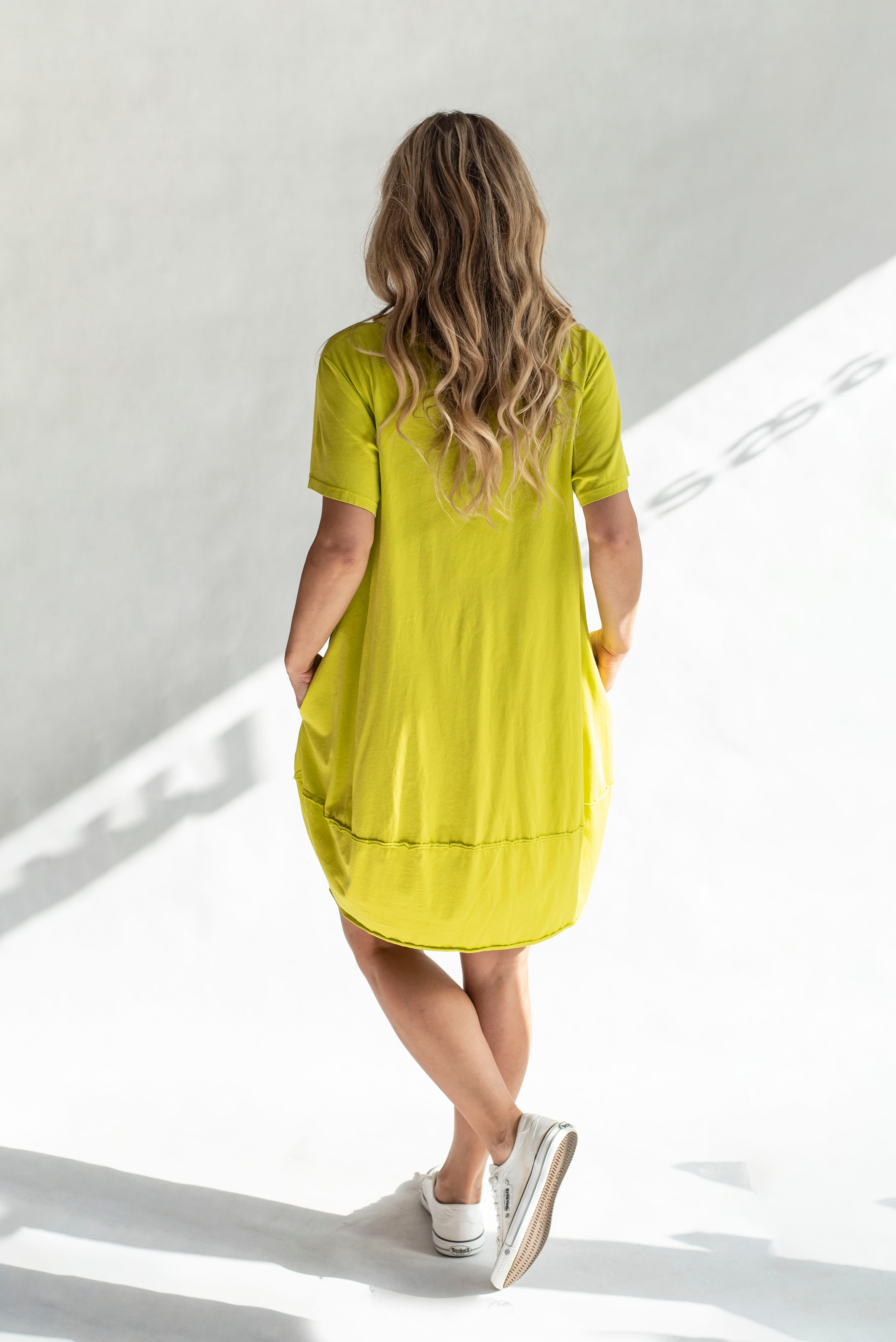 Módní bavlněné krátké šaty s krátkým rukávem a všitými kapsami.