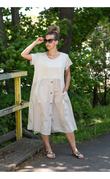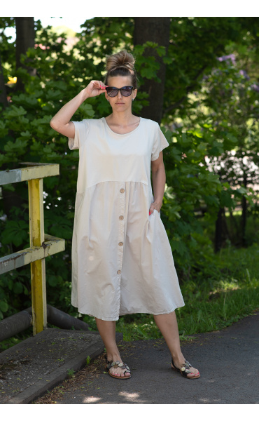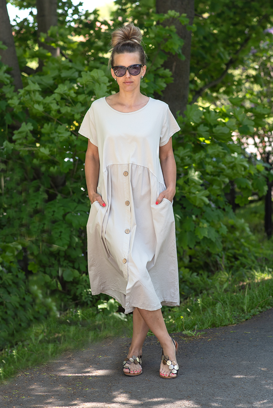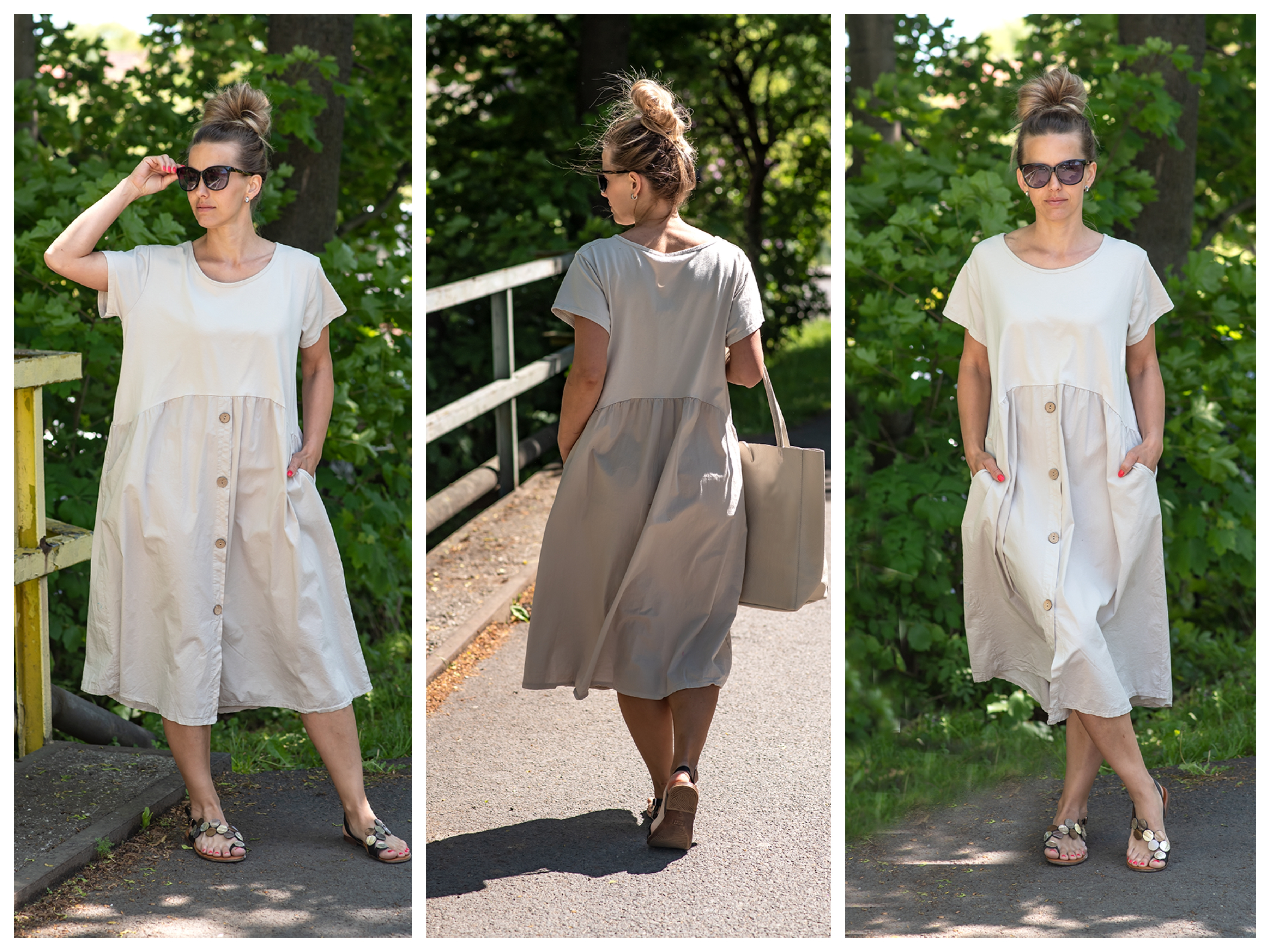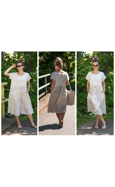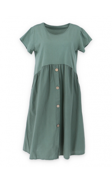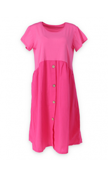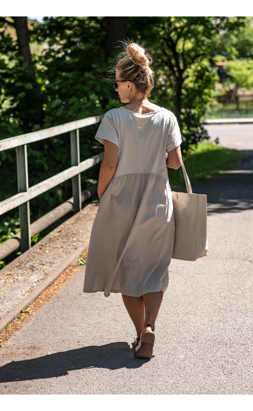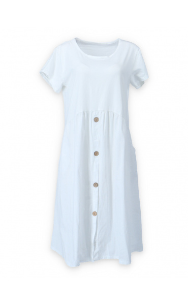 Letní šaty s krátkým rukávem a kapsami v bocích.