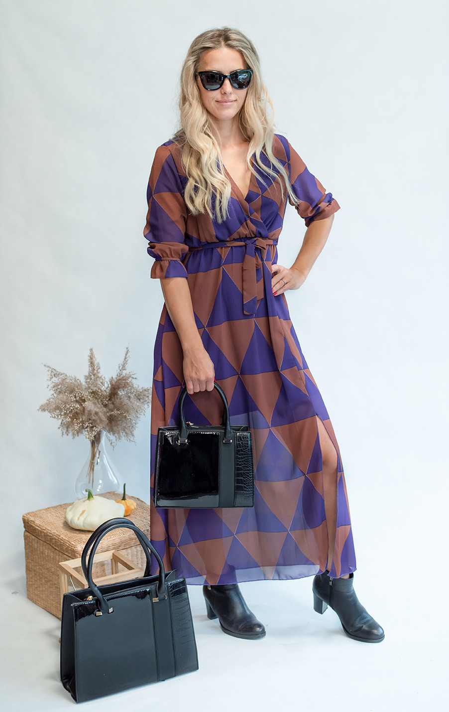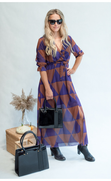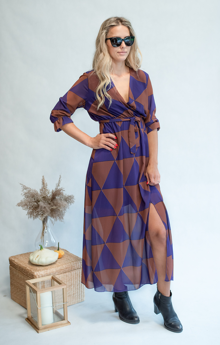 Módní dlouhé dámské šaty s vázáním , podšívkou a dlouhým rukávem