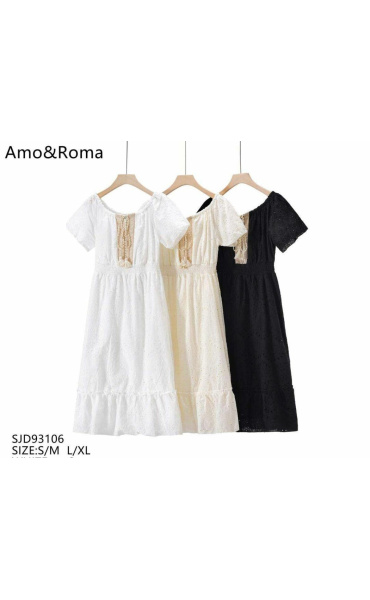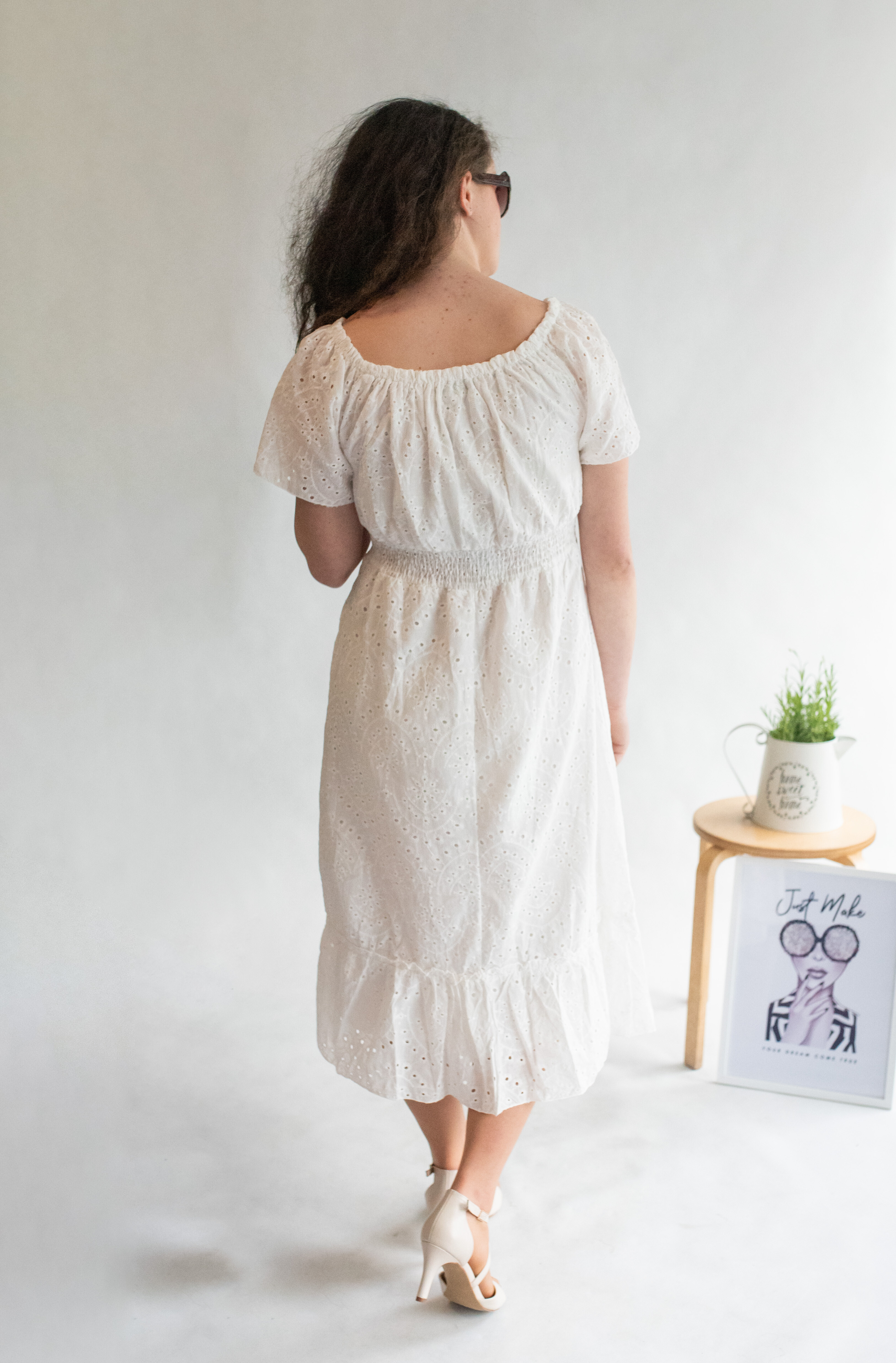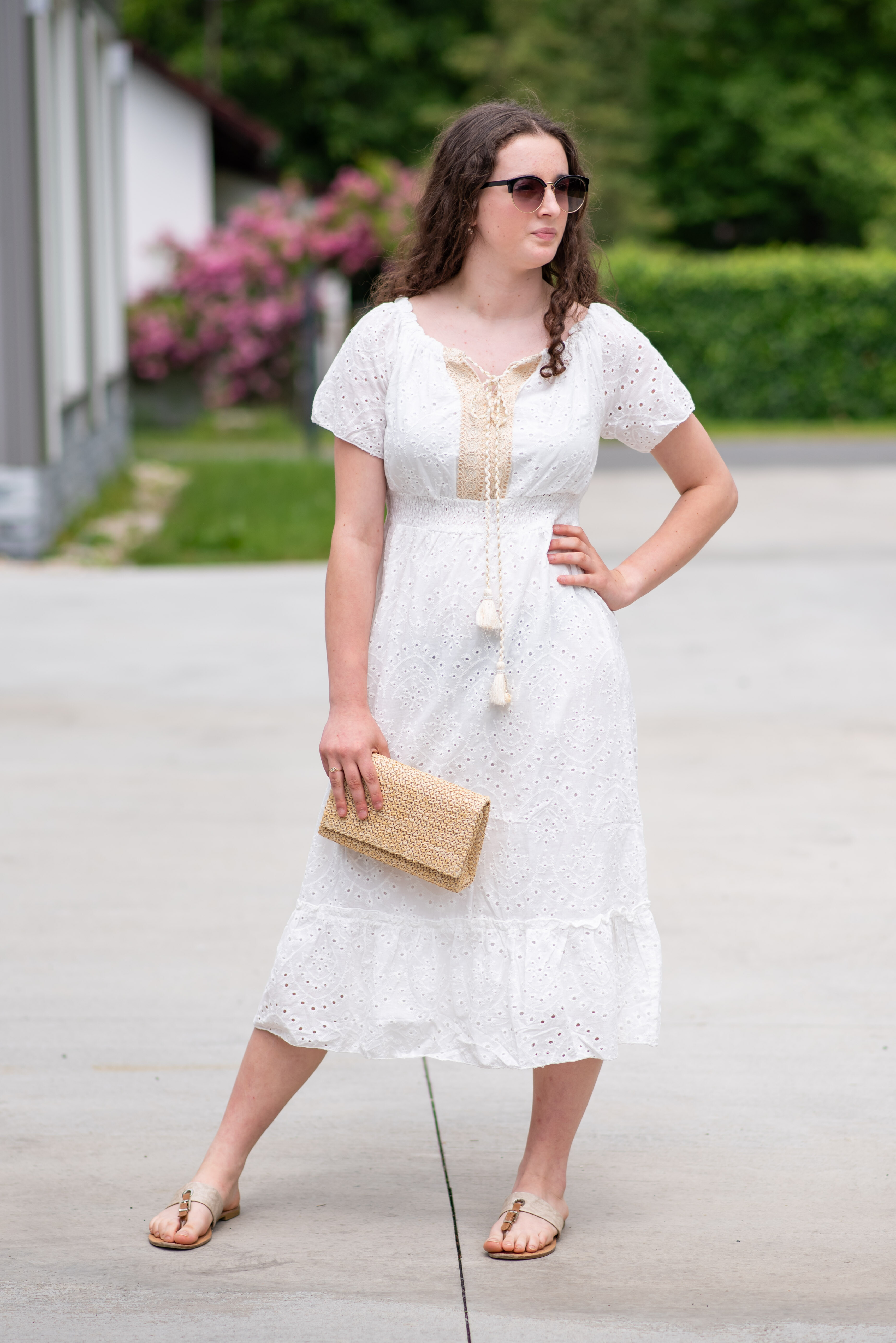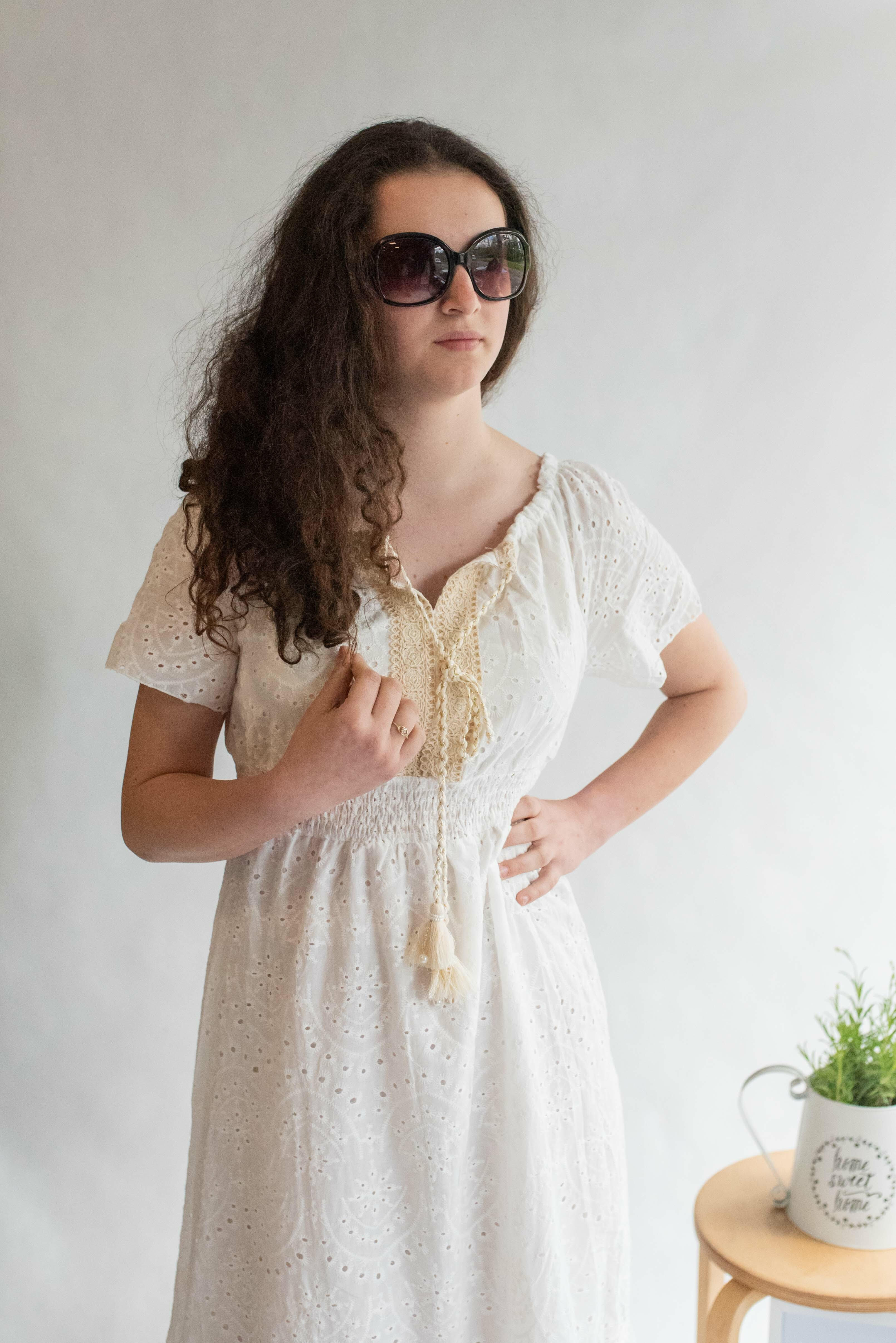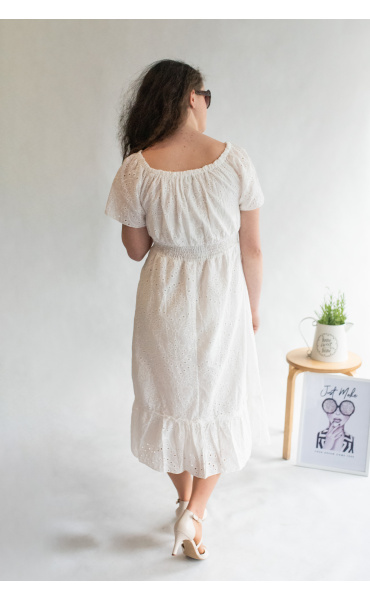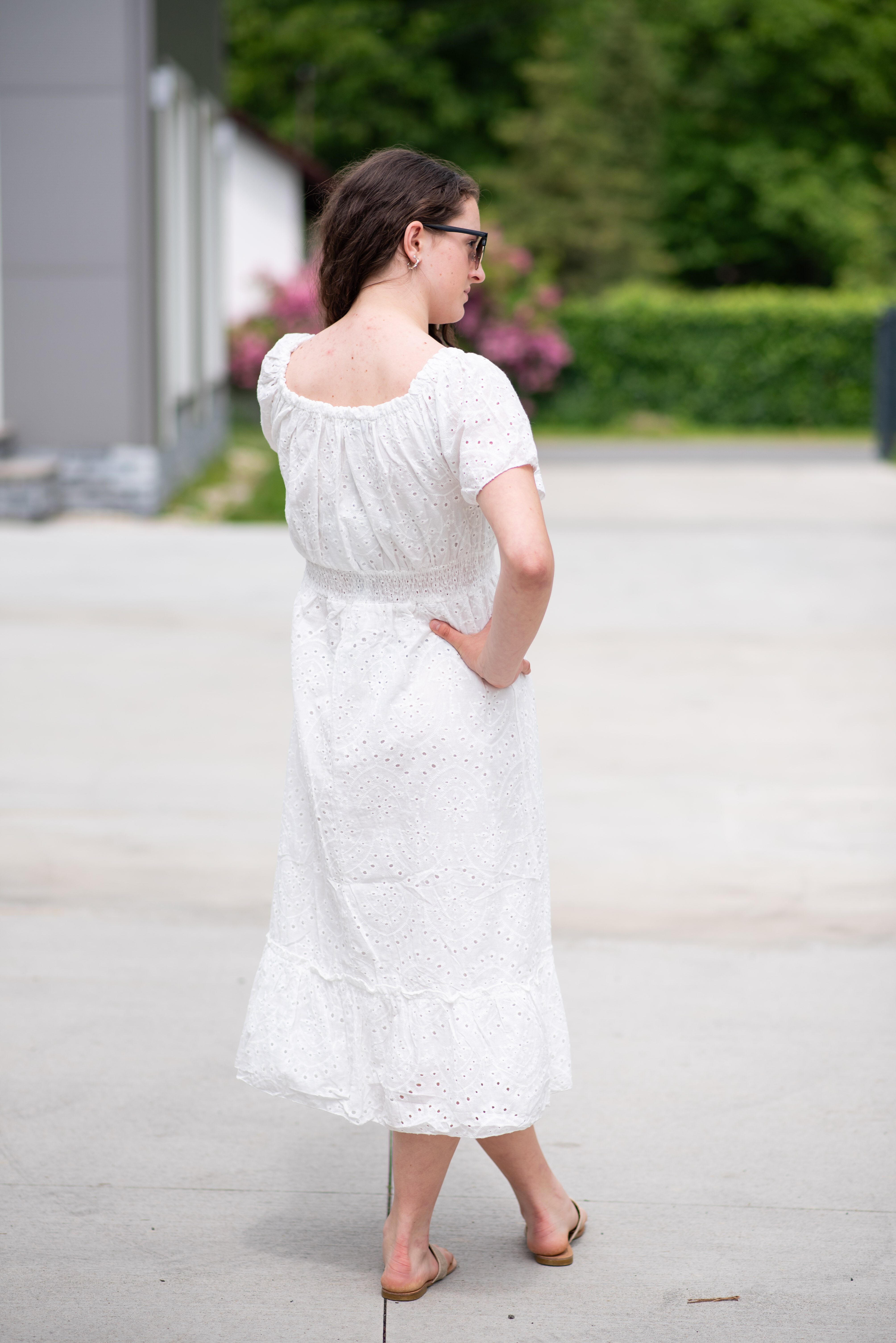 Dlouhé šaty s krátkým rukávem MADEIRA, na přední straně vázání ve výstřihu. Dlouhé letní šaty romantického stylu, s madeirovou krajkou, v pase do gumy a zakončeny jsou volánem ve spodní části.