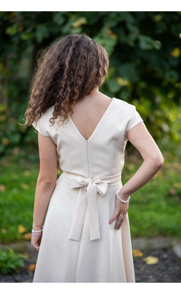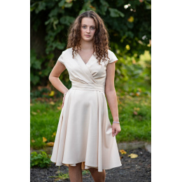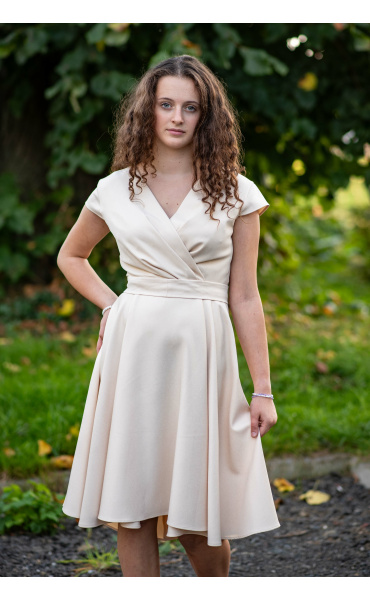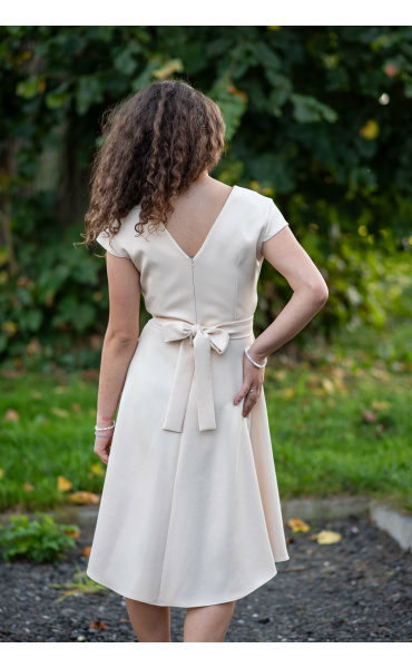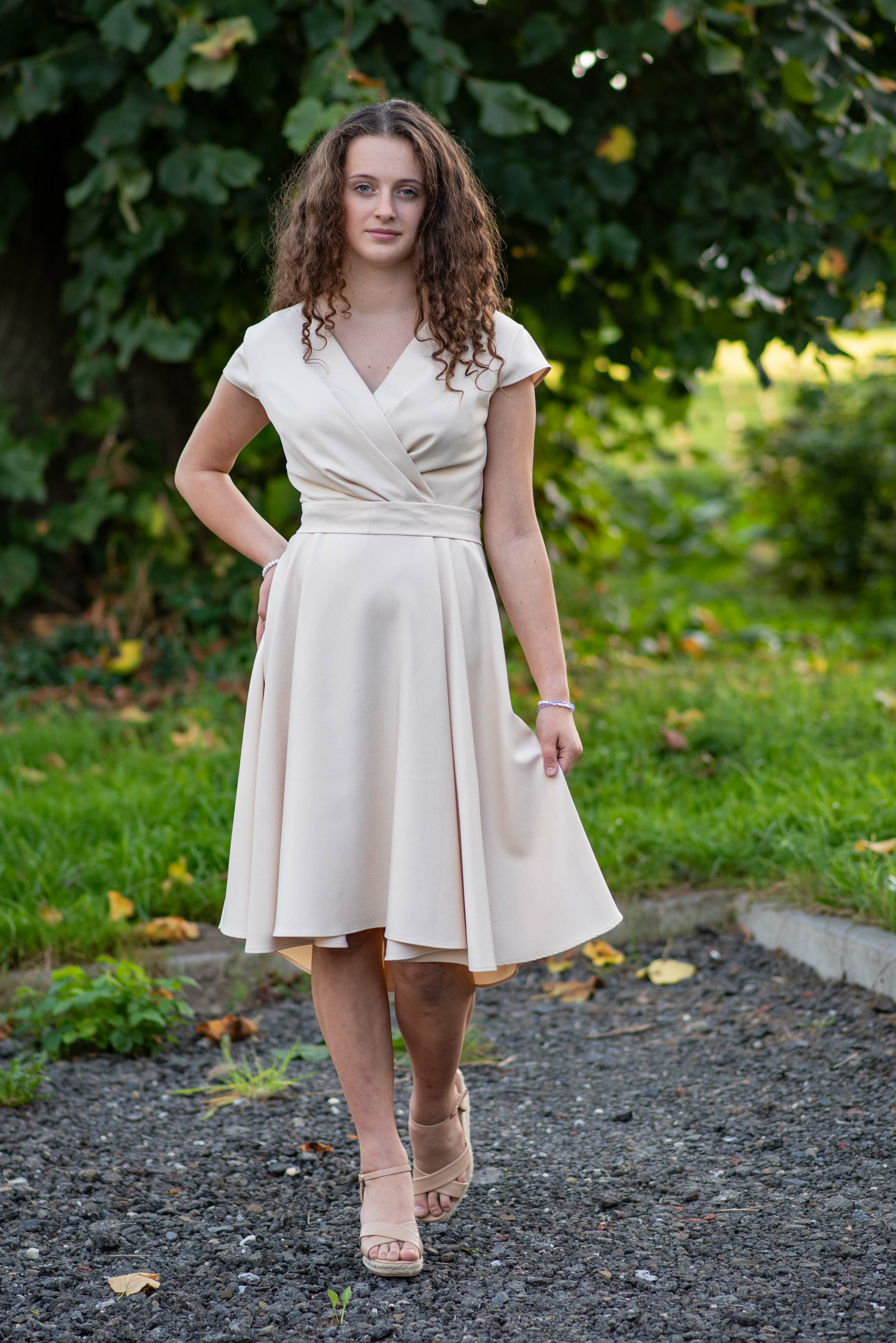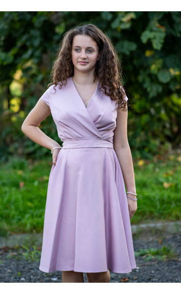 Společenské kratší šaty s vazačkou v pase, zapínání na zip