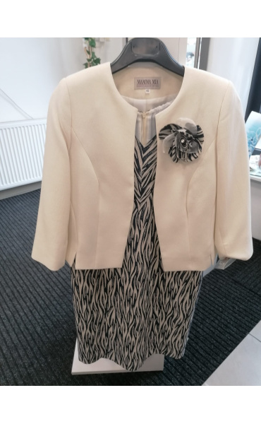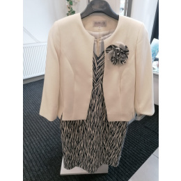 Velice elegantní společenské šaty s krátkým rukávem a  kabátkem určené pro významné rodinné a společenské události. Šaty jsou příjemné a částečně pružné , velice dobře se poddají.