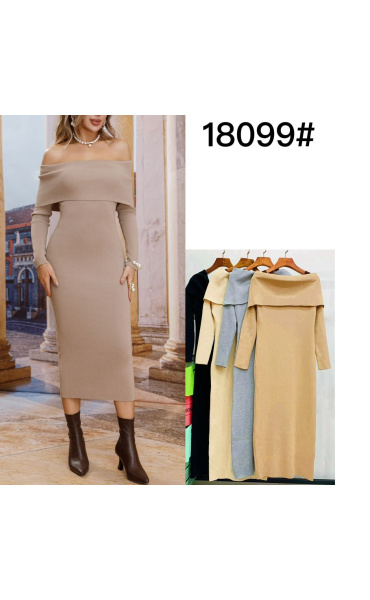 Žebrované šaty v midi délce s dl. rukávem, možno stažení přes ramena. Dovoz Itálie.