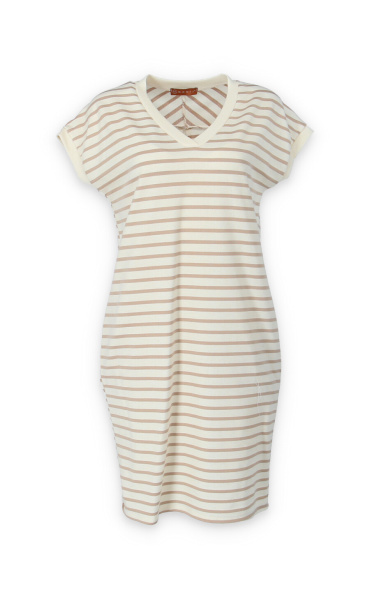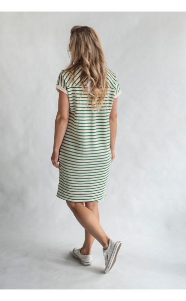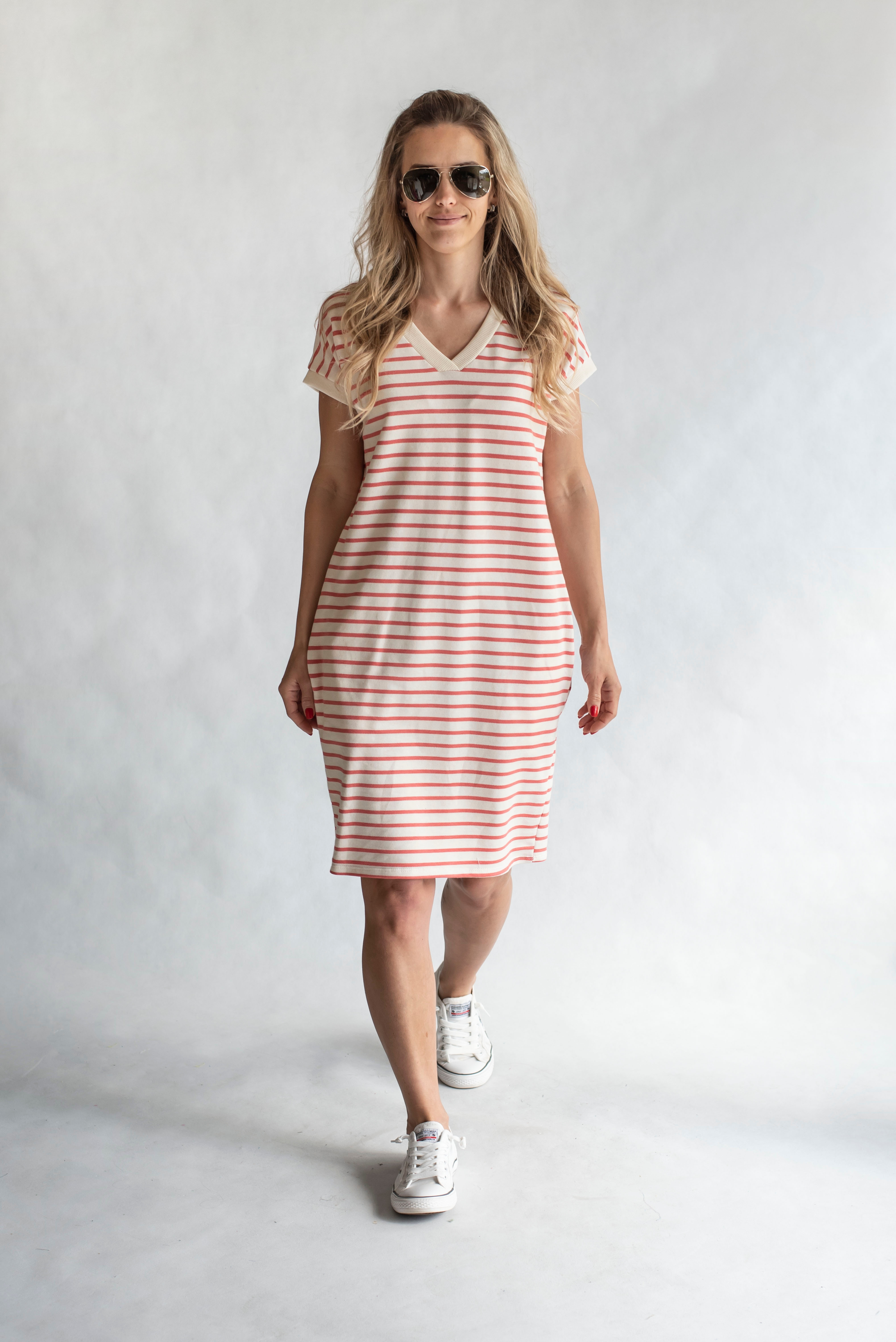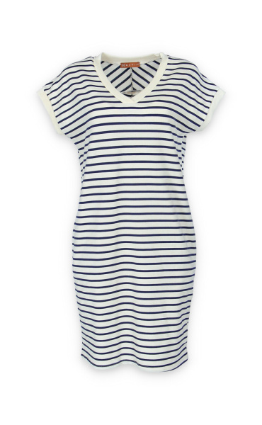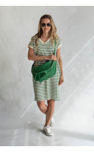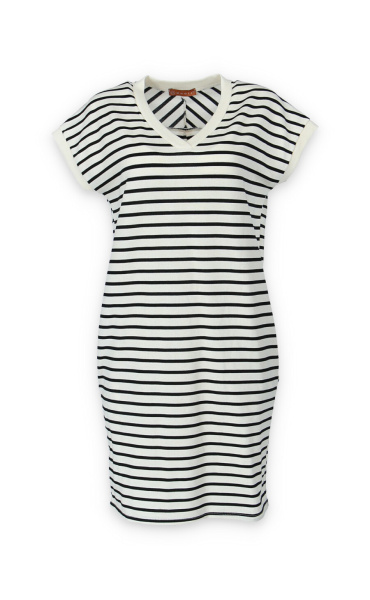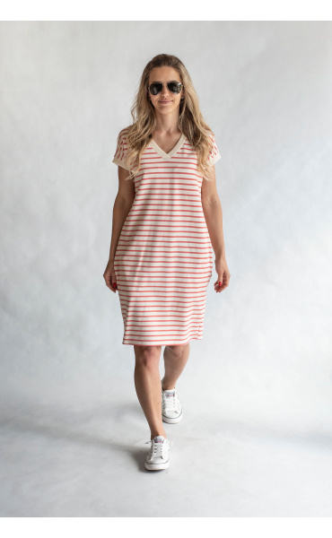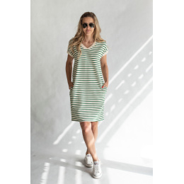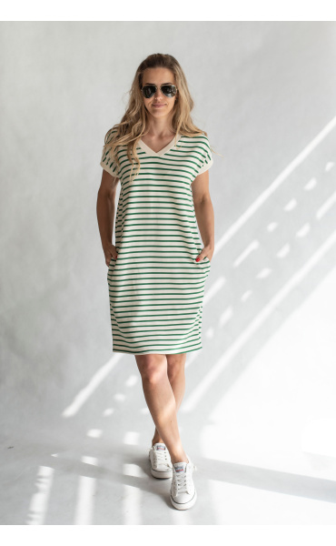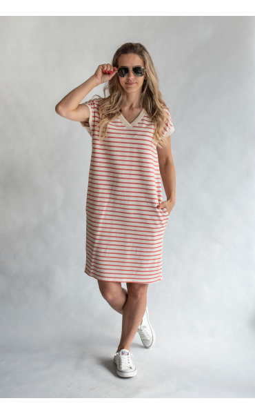 Dámské trendy šaty s proužkem, výstřihem do "V", všité kapsy, Italské značky Mooij