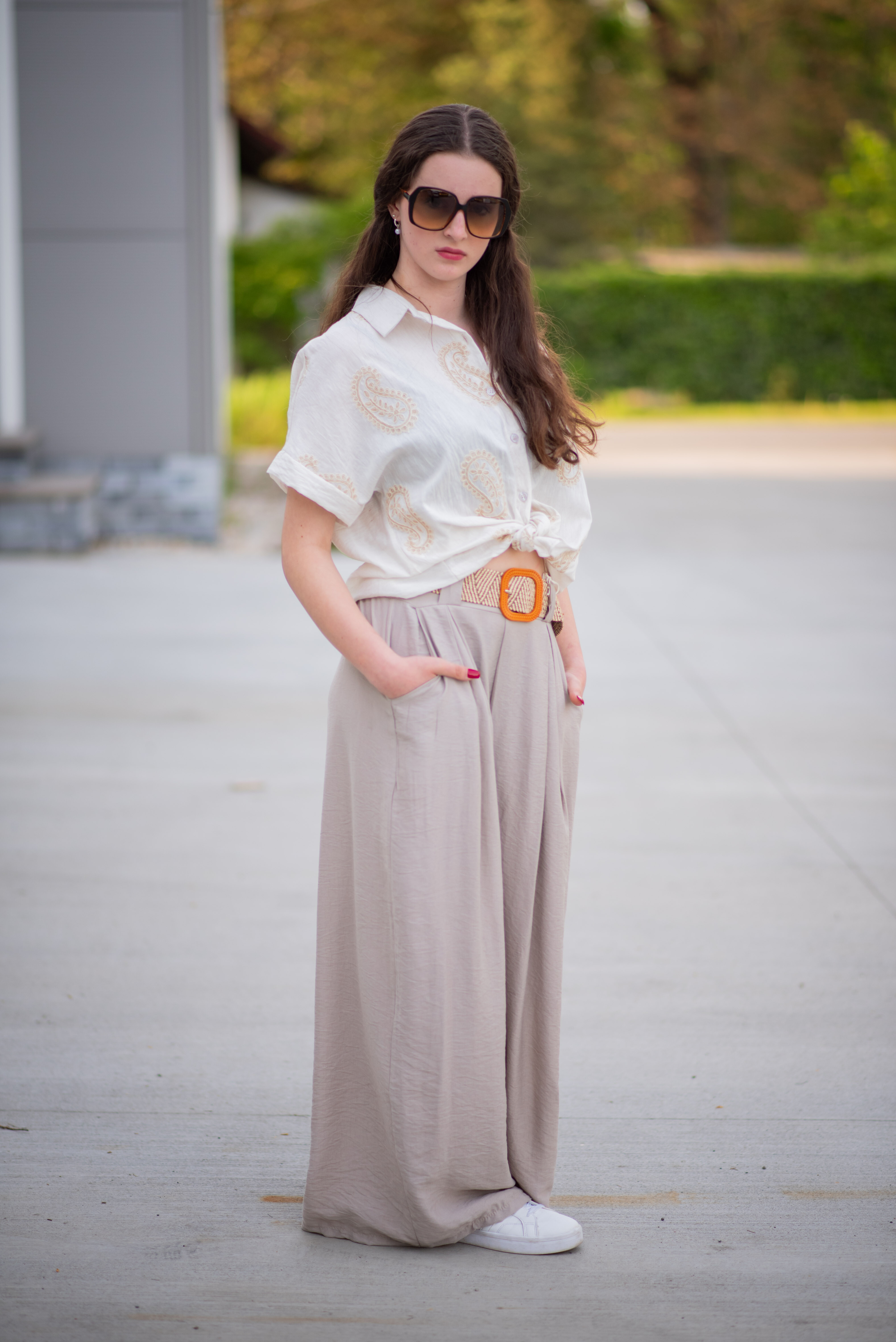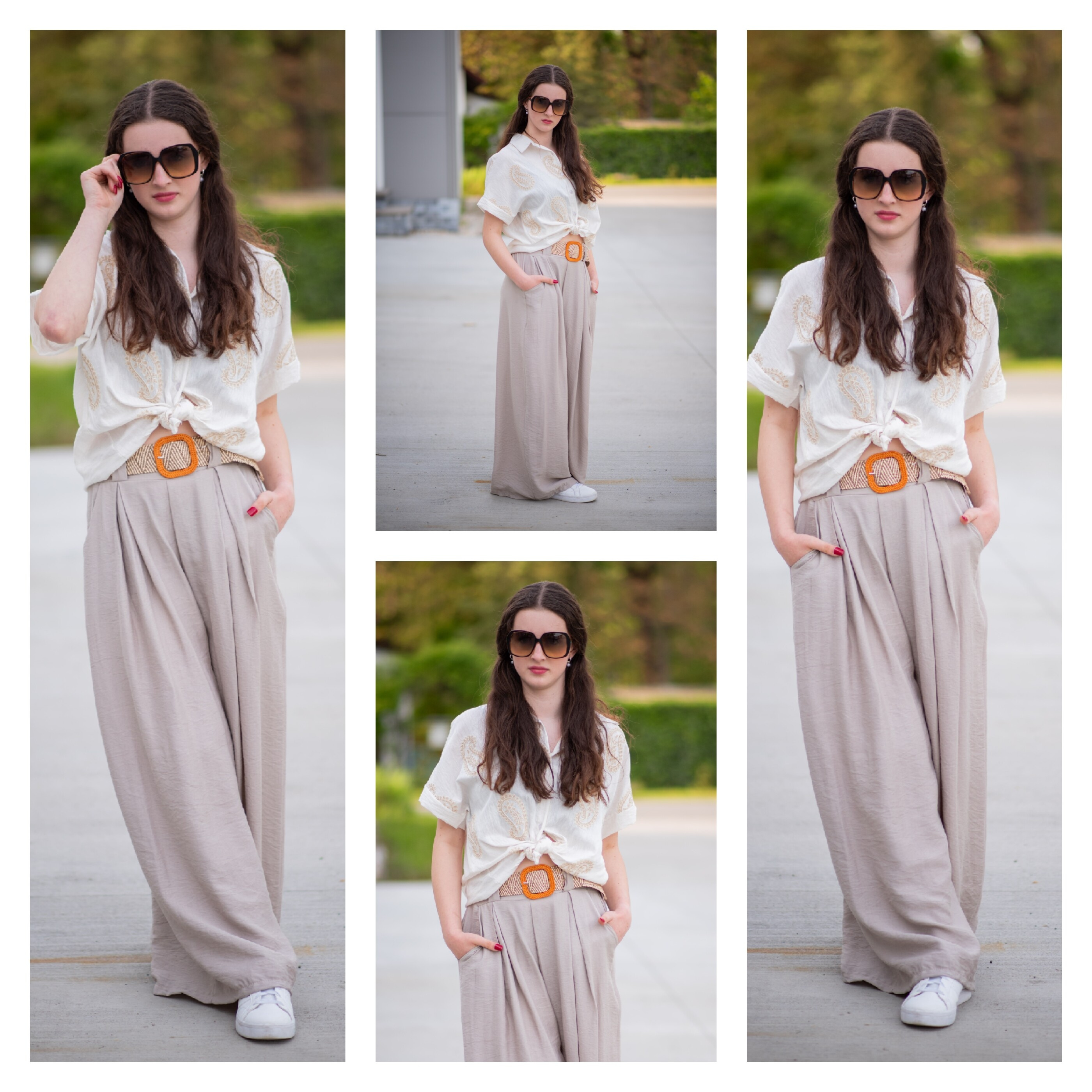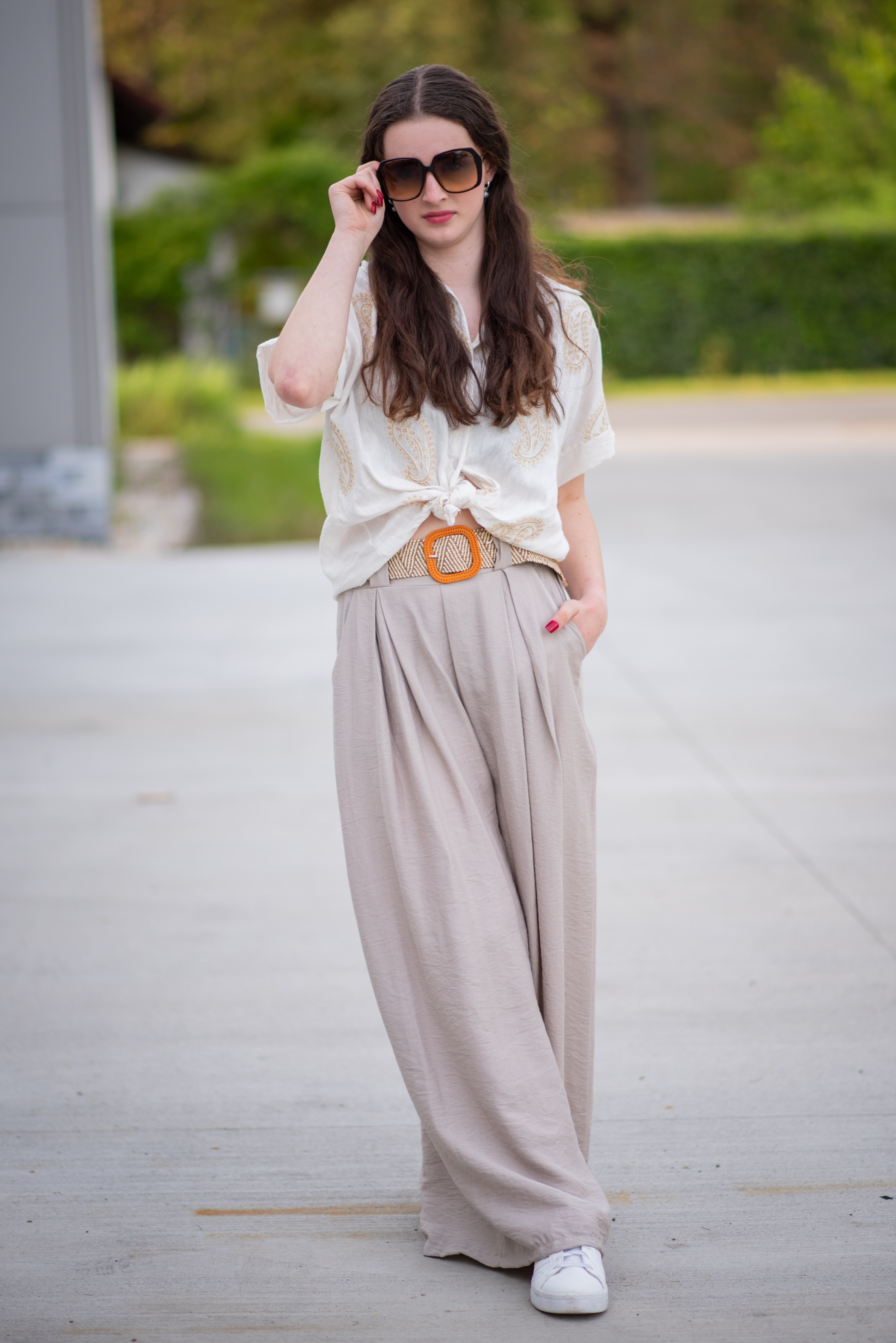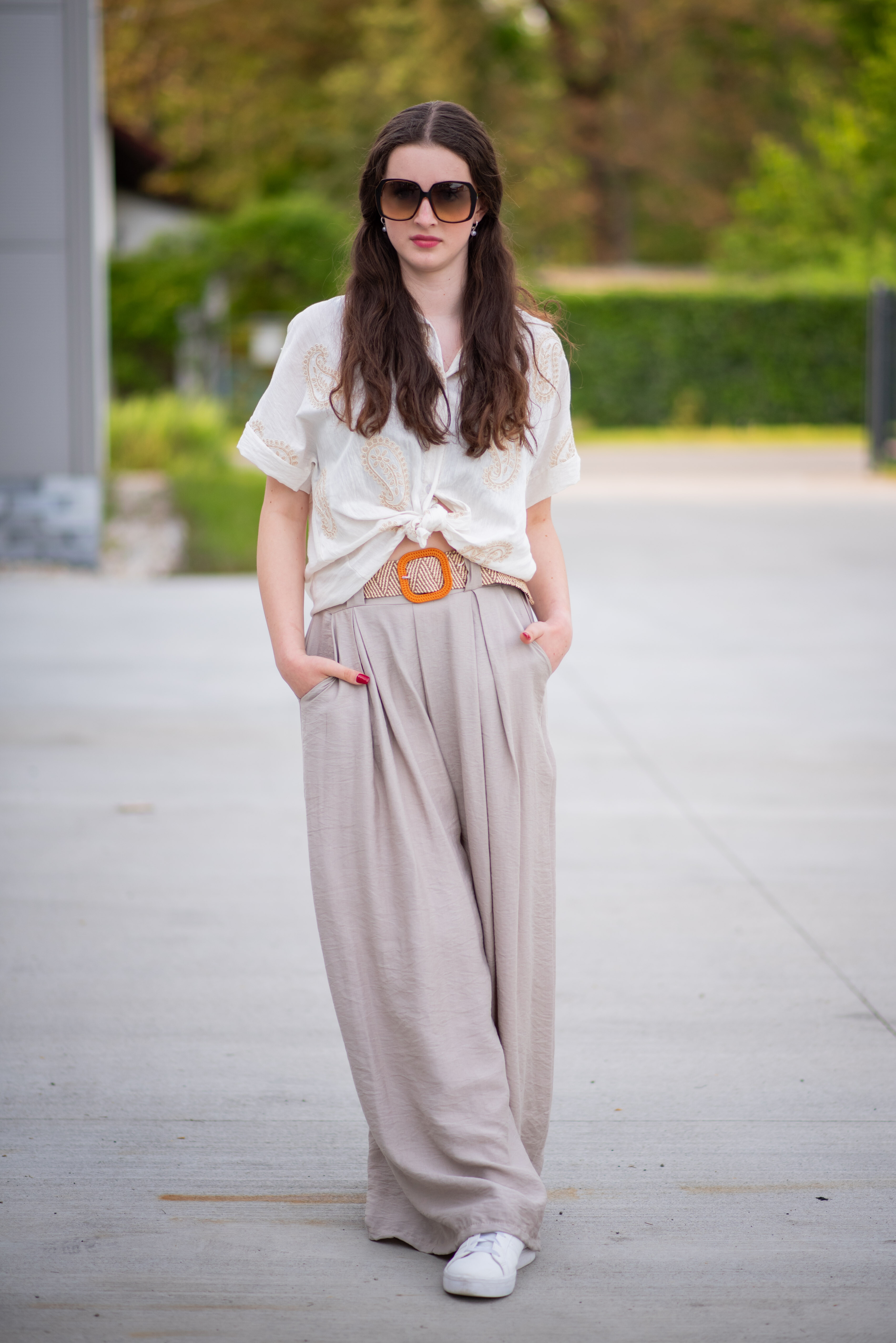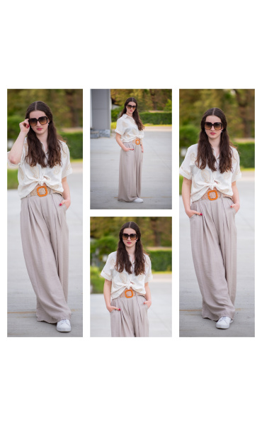 Široké kalhoty s páskem 24503