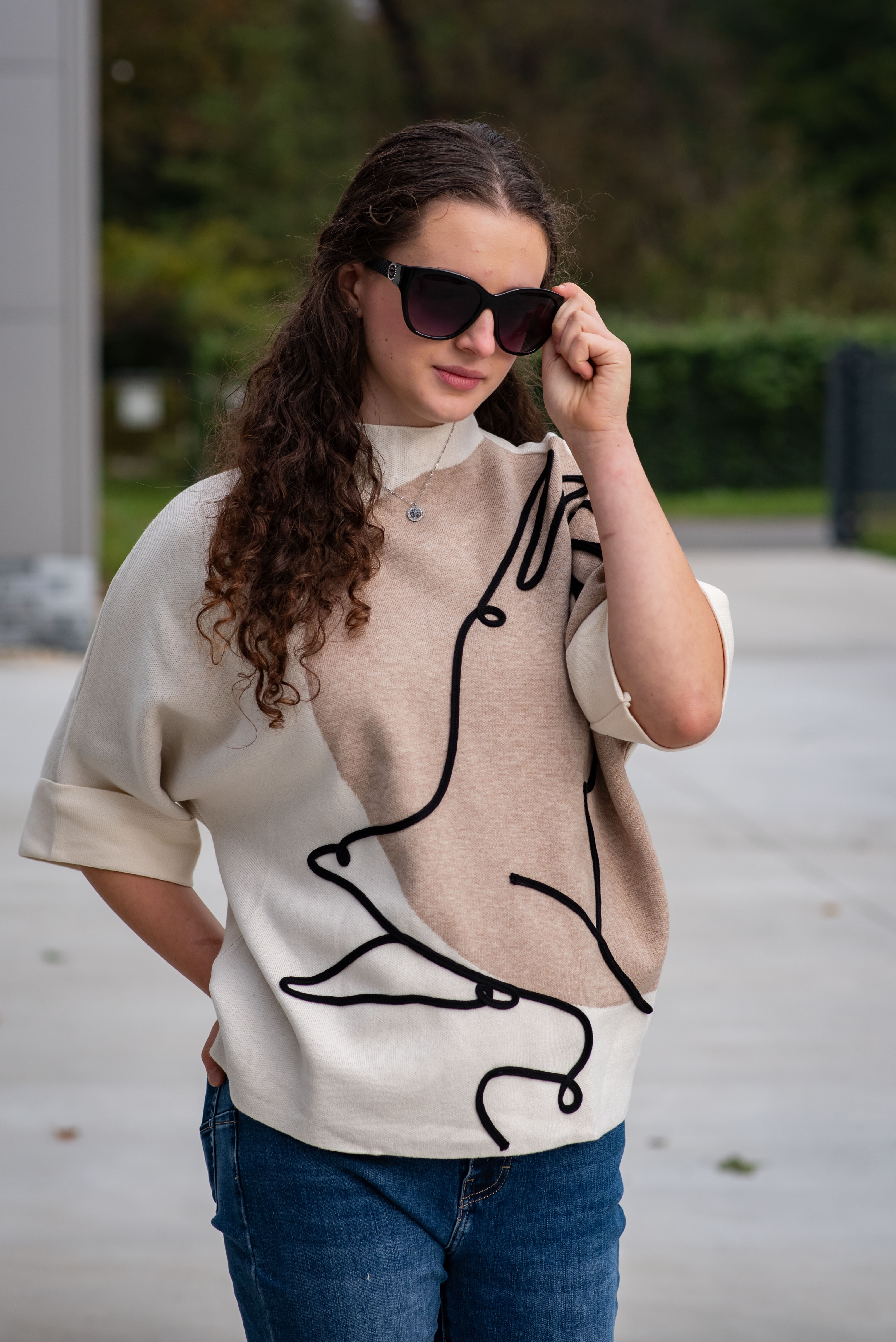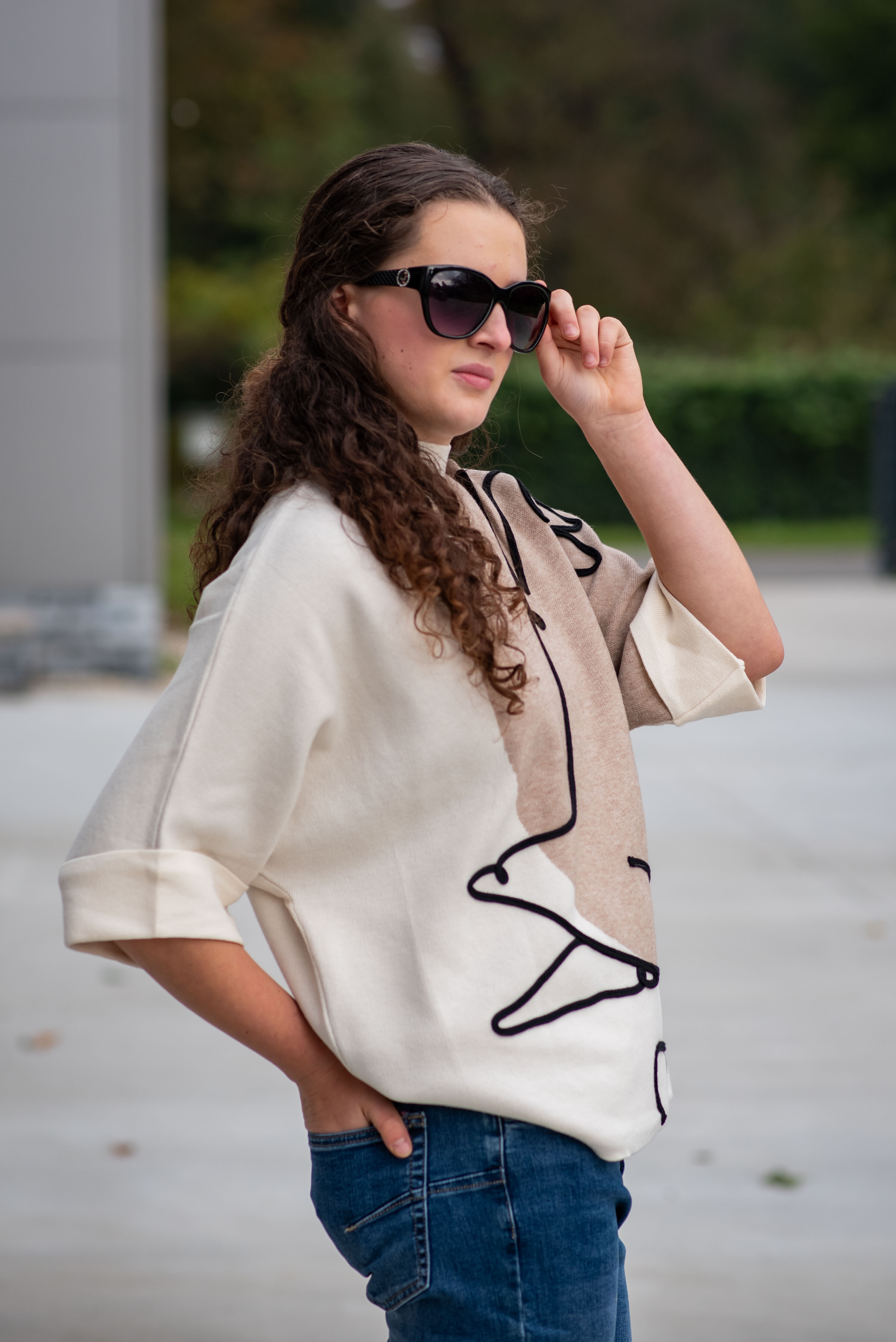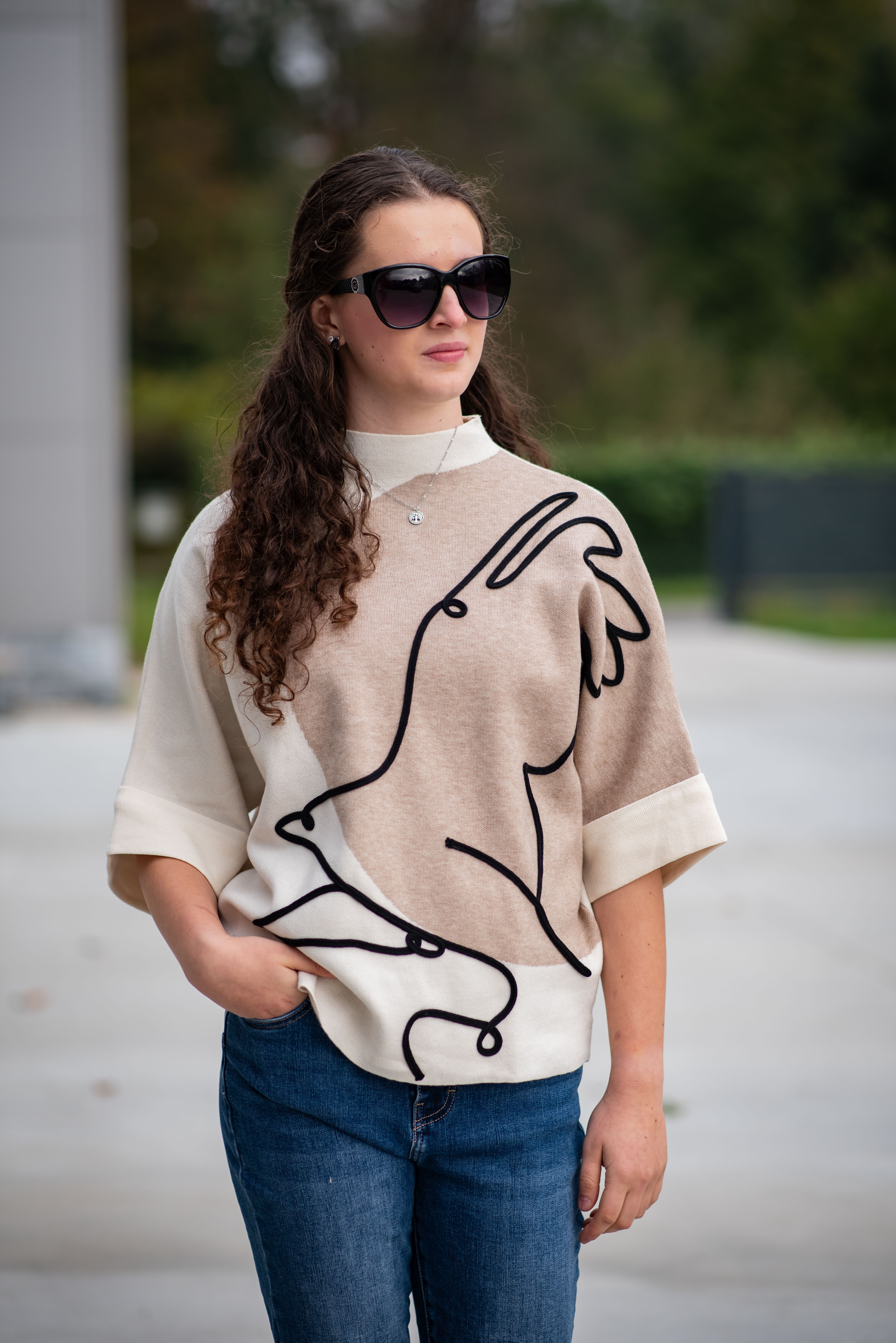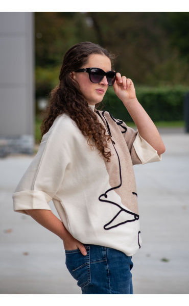 Jedná se o velice stylový kousek módního střihu, který je navíc barevně kombinován s aplikací výšivky ptáka.