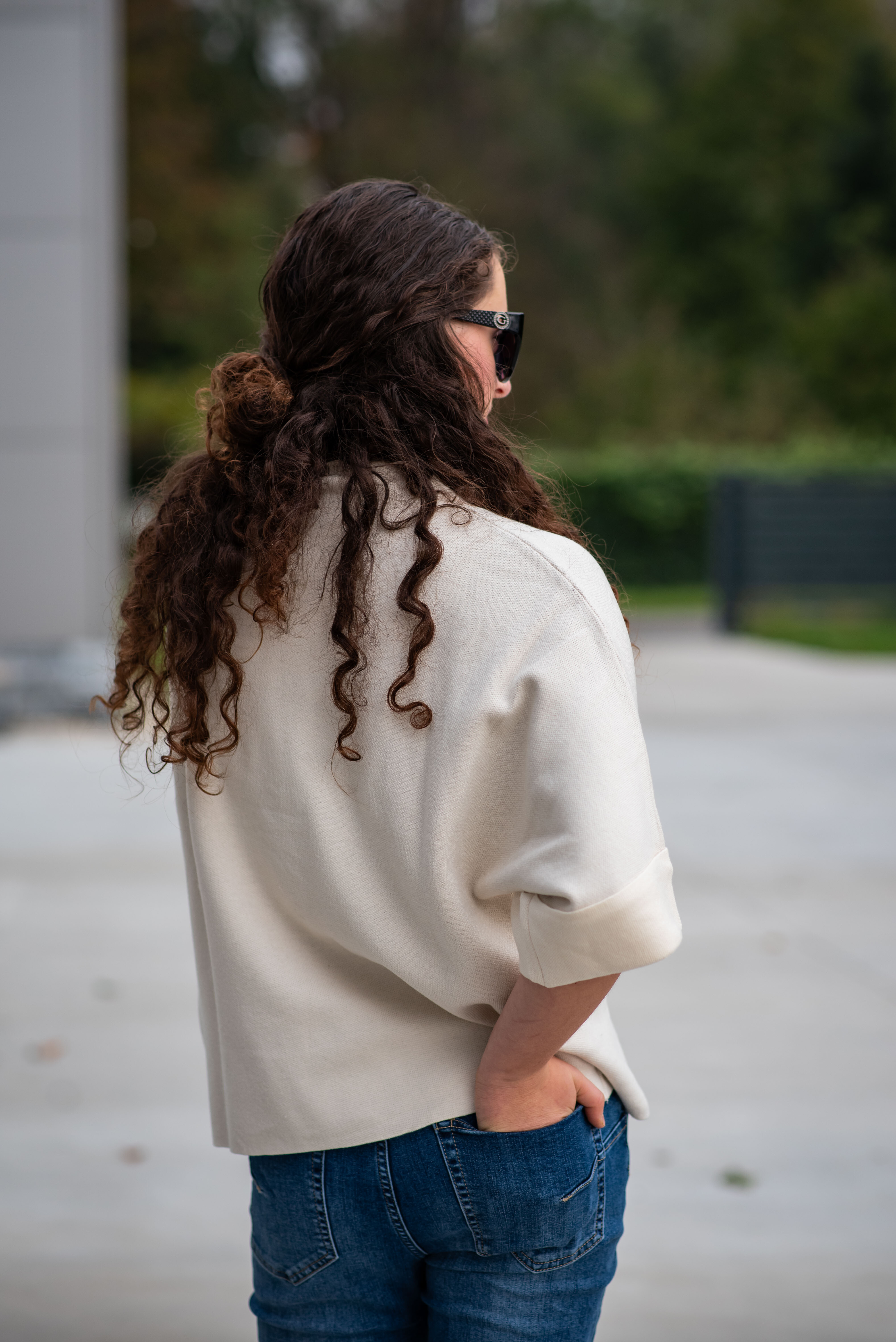 Stojáček z úpletového materiálu a s 3/4 rukávem.