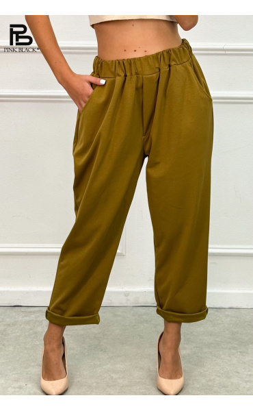 Stylové kalhoty volnějšího střihu, kalhoty jsou v pase do gumy.