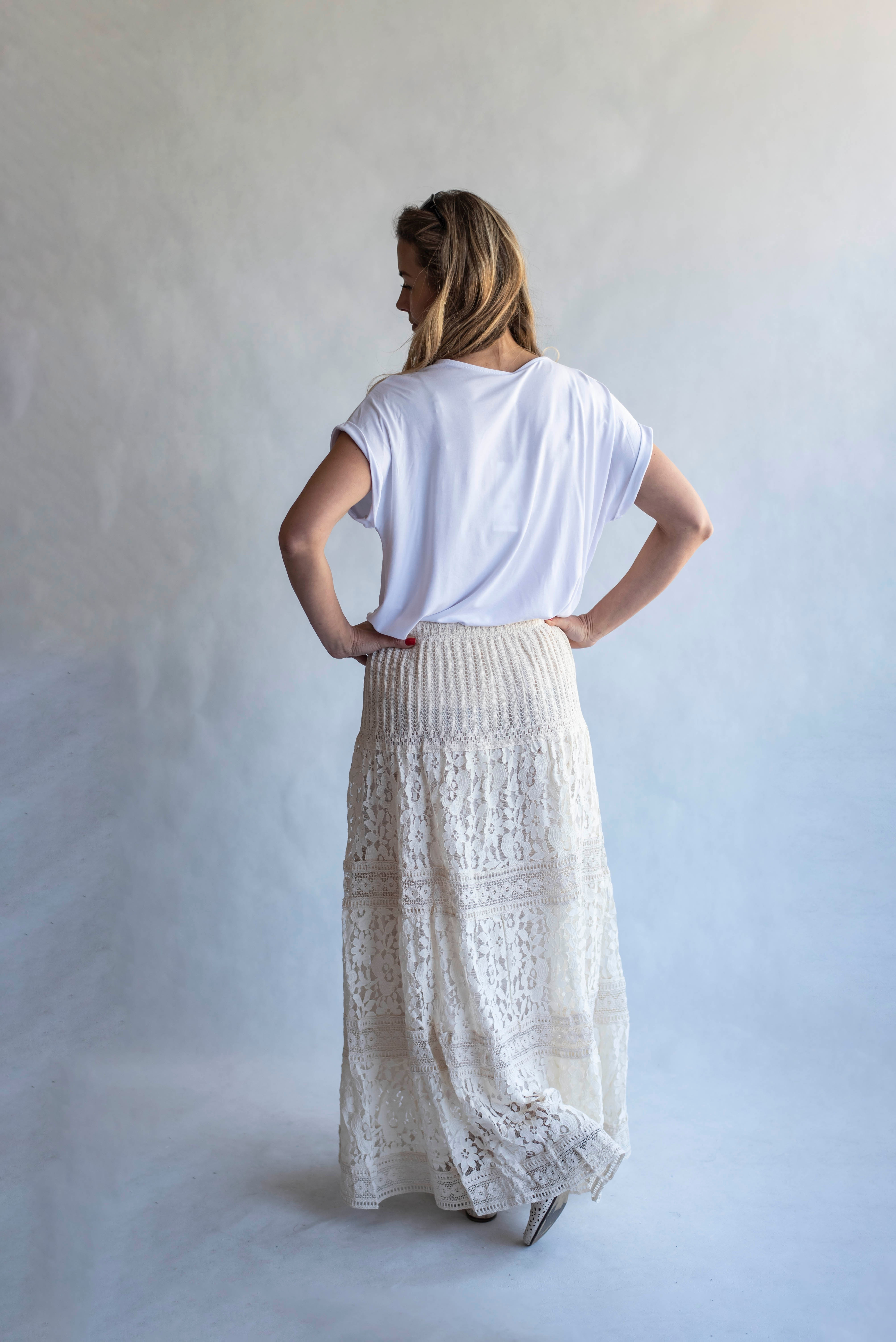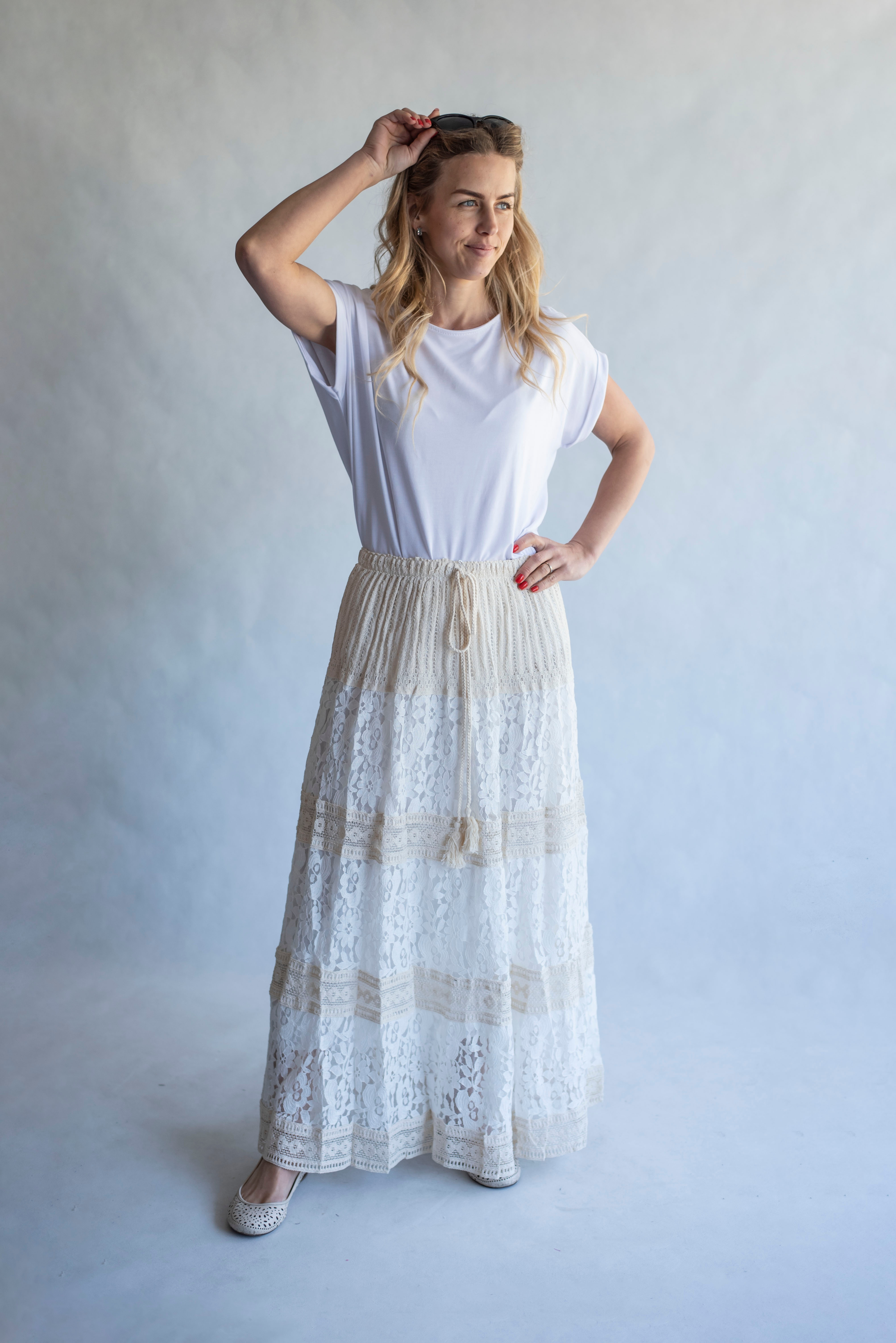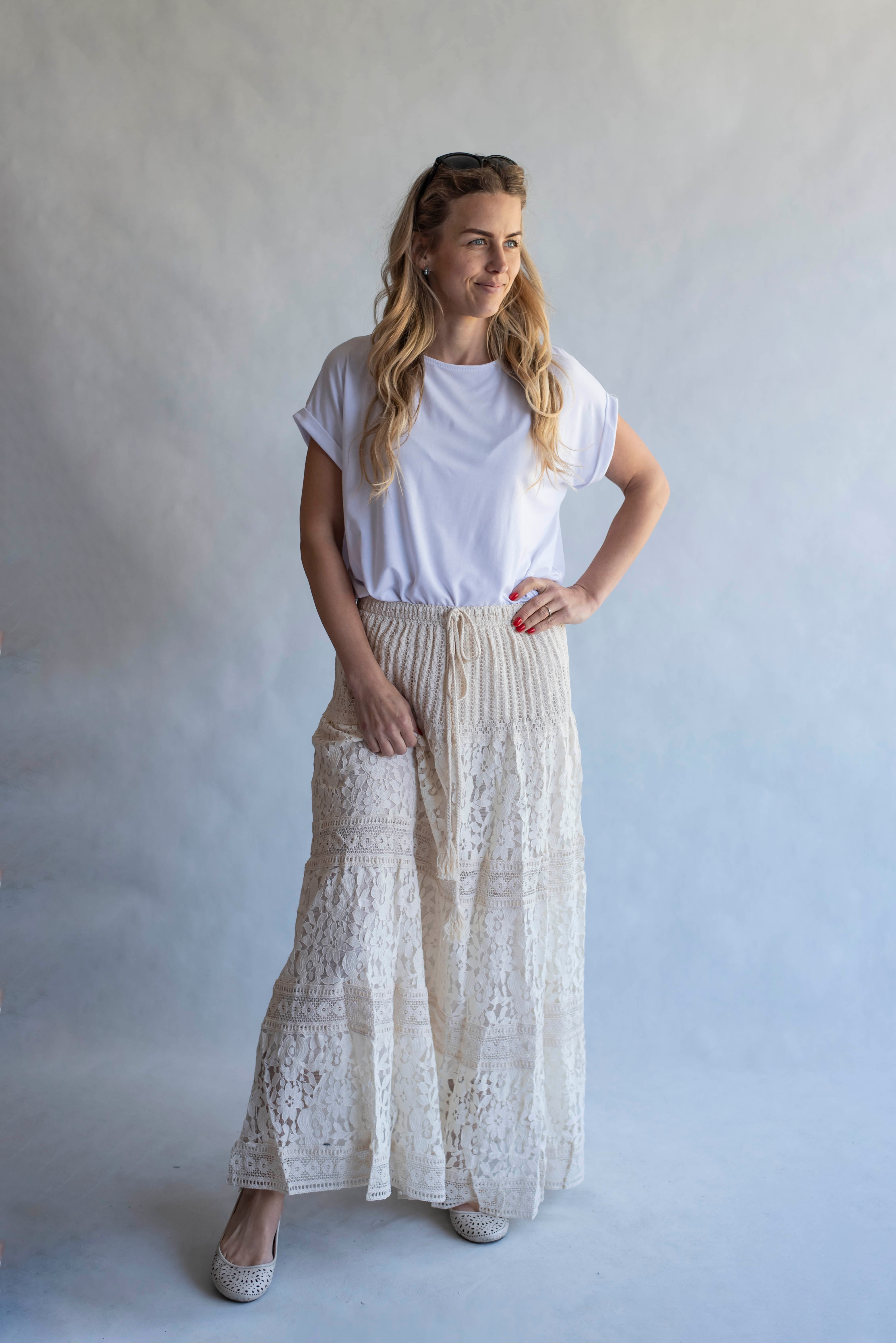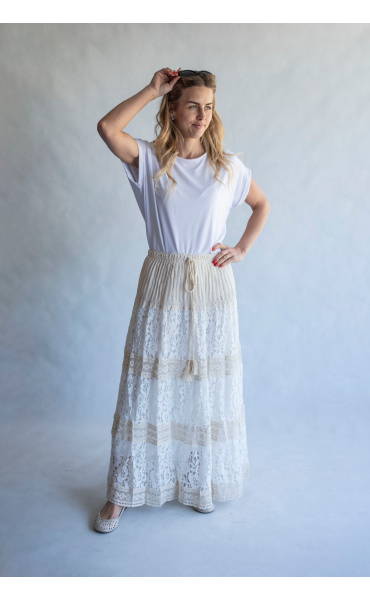 Dámská dlouhá sukně s elastickým pasem a šňůrkou .