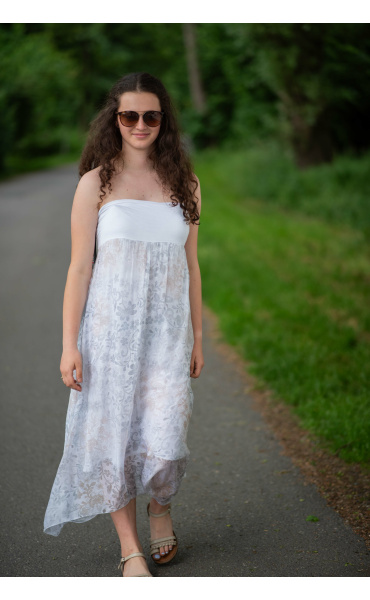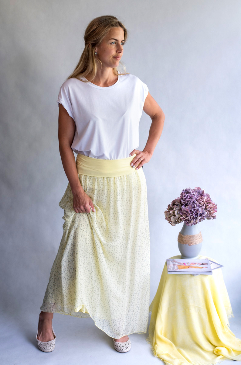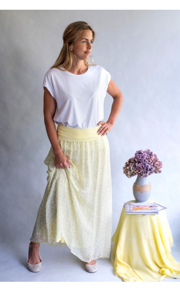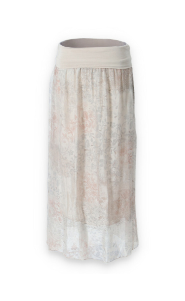 Elegantní dlouhá, hedvábná sukně s elastickým pasem, může se nosit i jako šaty .Vyrobeno v Itálii .