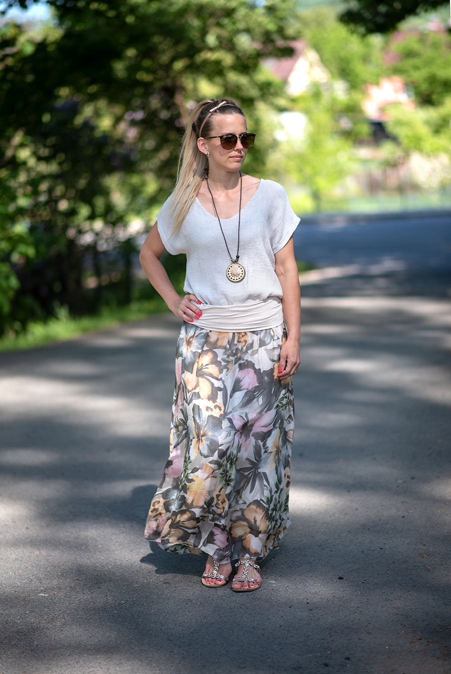 Sukně dlouhá hedvábí květ 3035S
