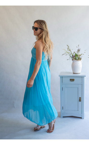 ŠATY DLOUHÉ HEDVÁBÍ v pase na gumu, šaty mají poutka, tedy možnost doplnit nějakým páskem nebo páske