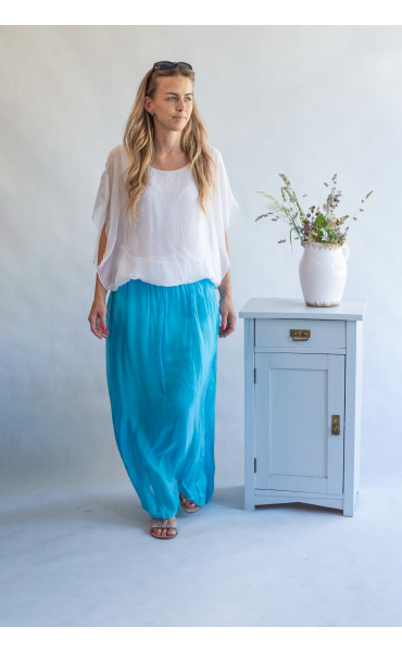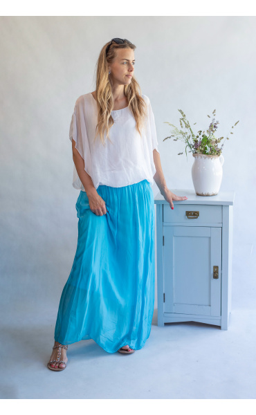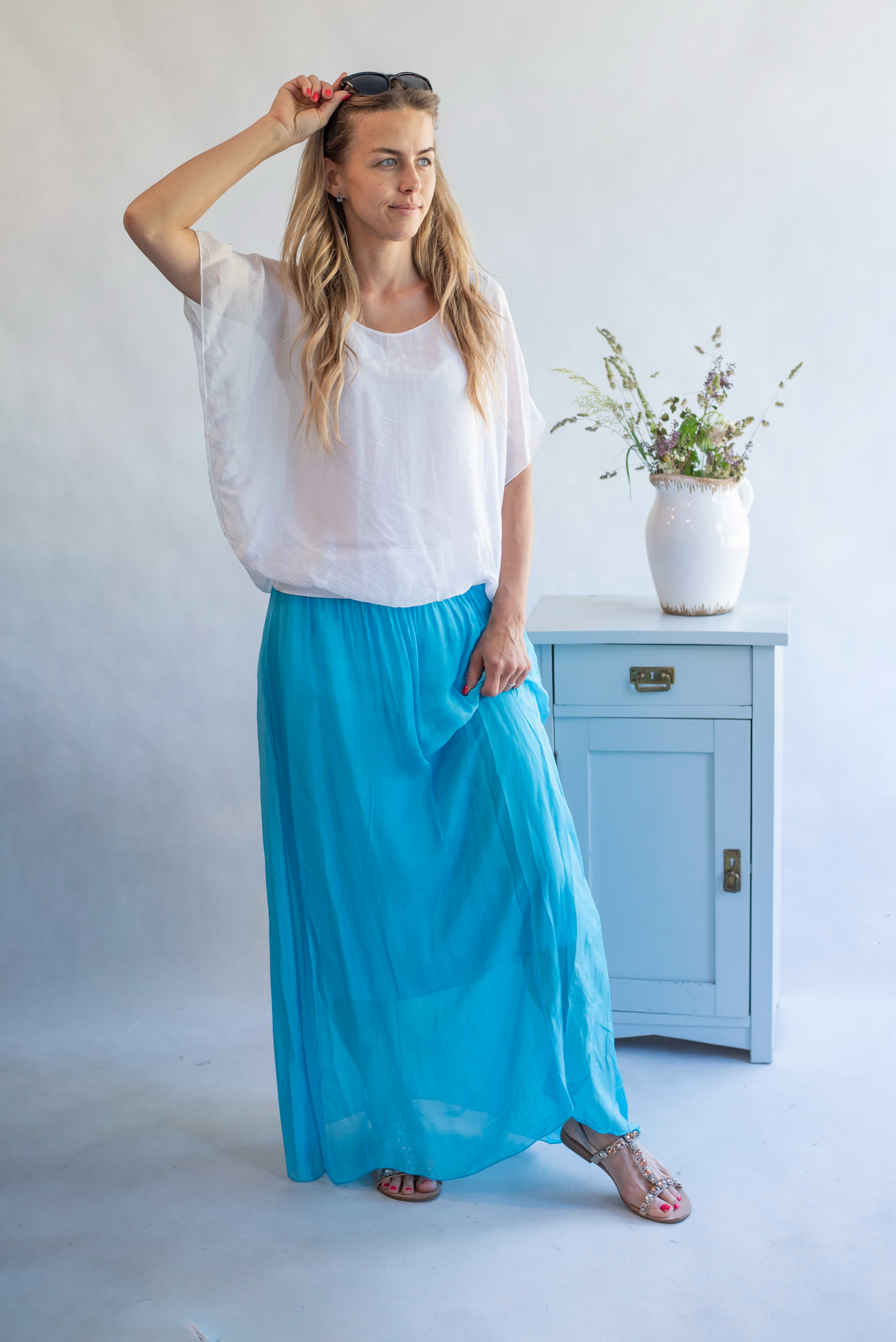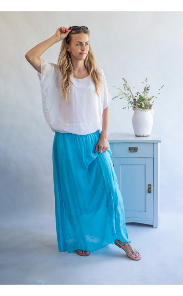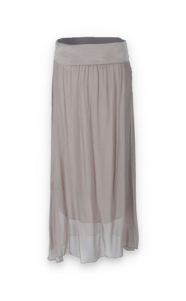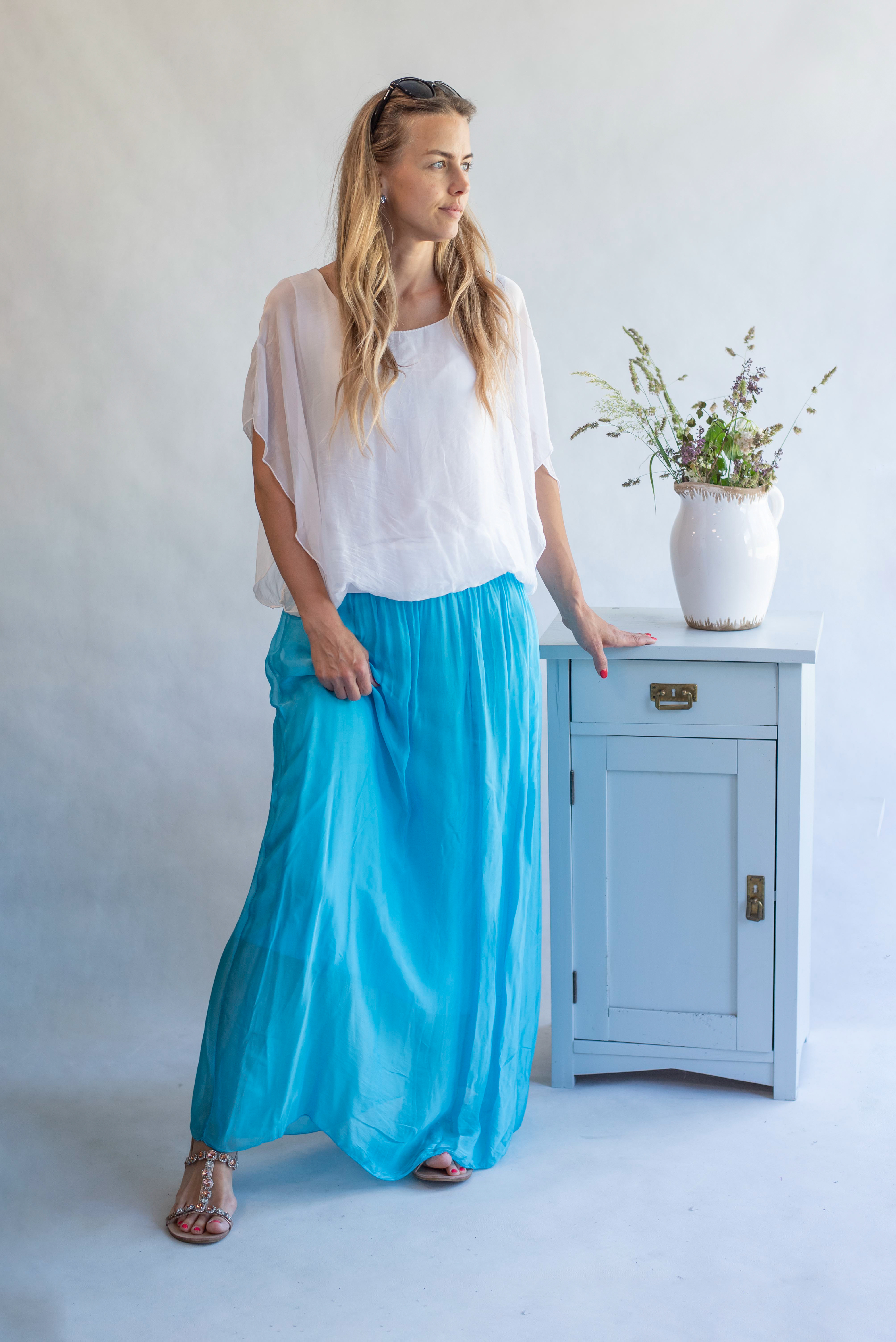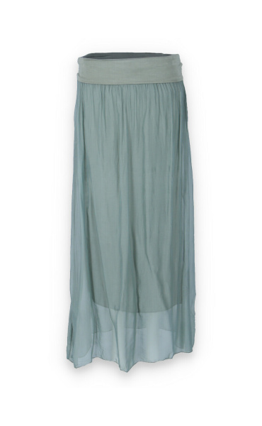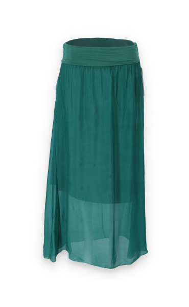 Elegantní dlouhá, hedvábná sukně s elastickým pasem, může se nosit i jako šaty .Vyrobeno v Itálii .